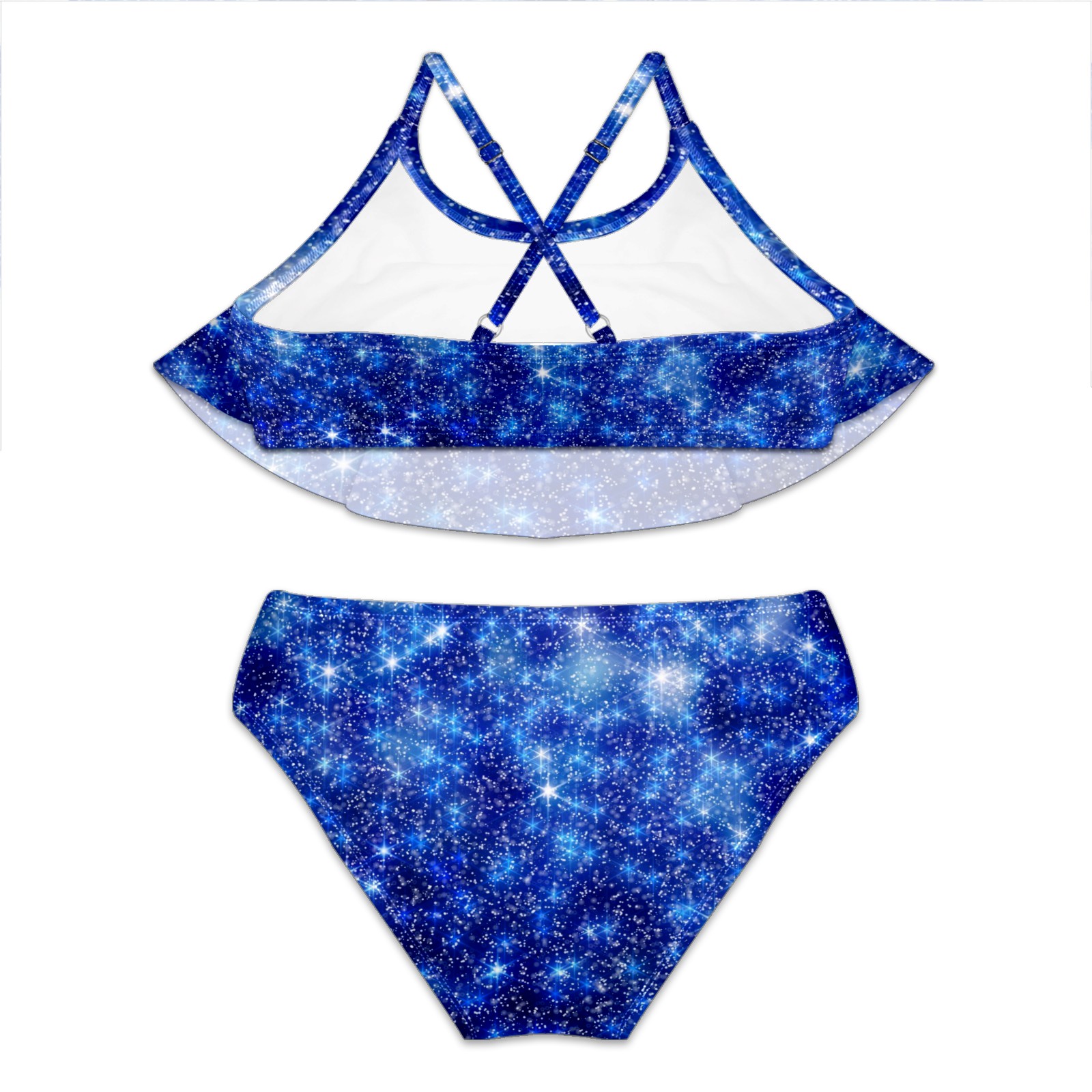Swimsuits for Girls Two Pieces Bathing Suit Quick Dry Swimwear Blue Shine Starry Sky Stars Pattern S