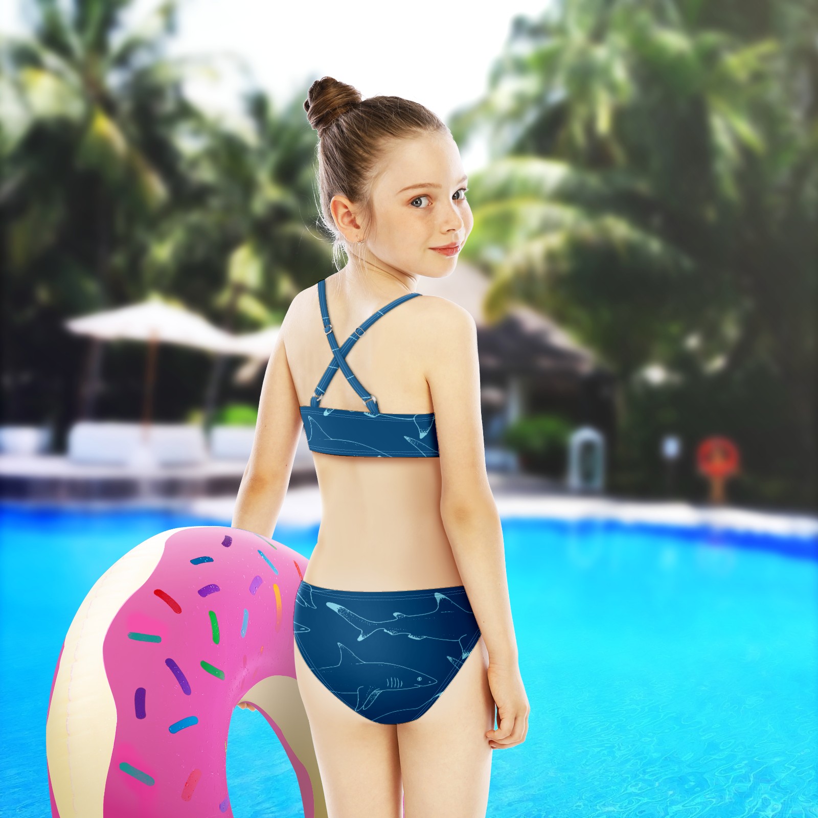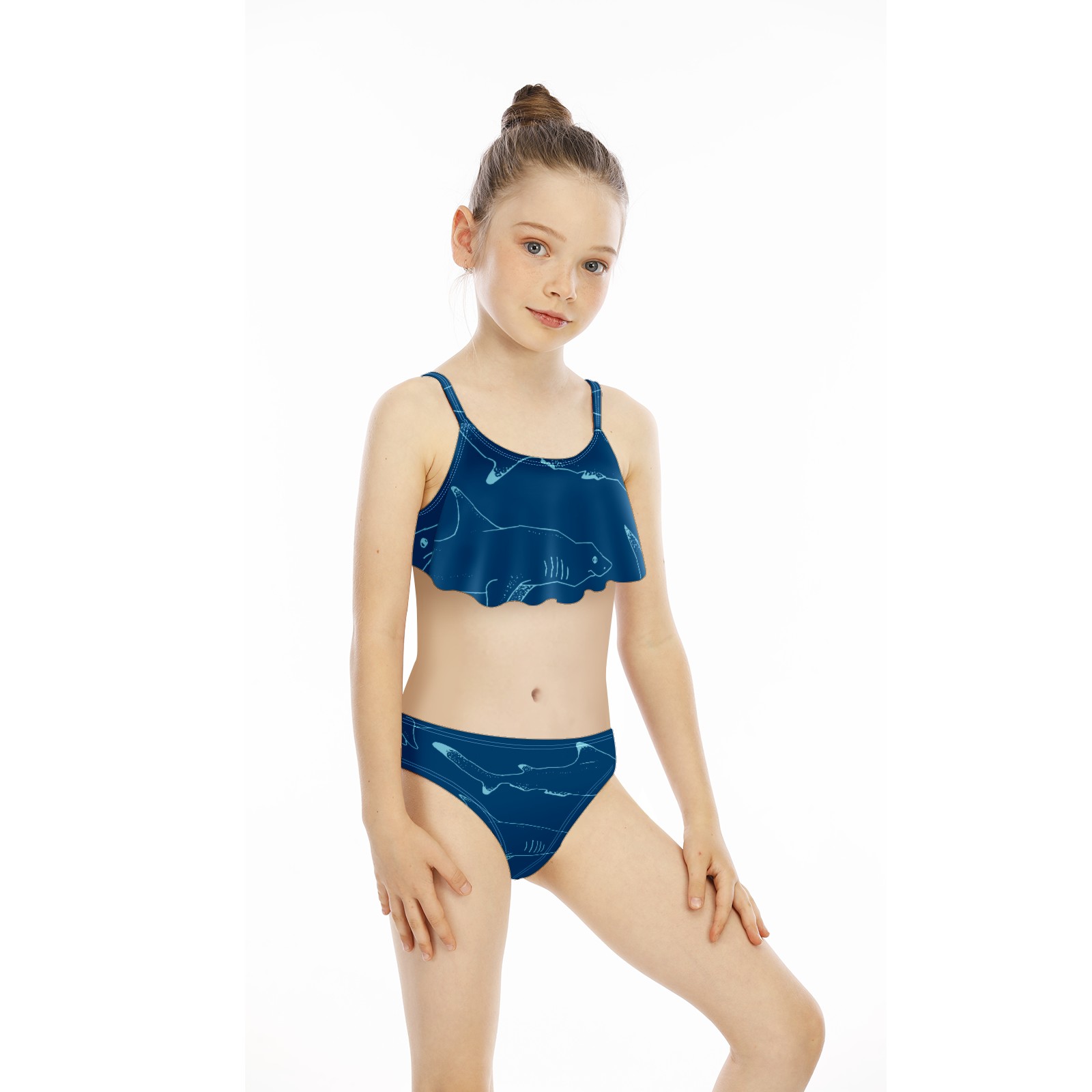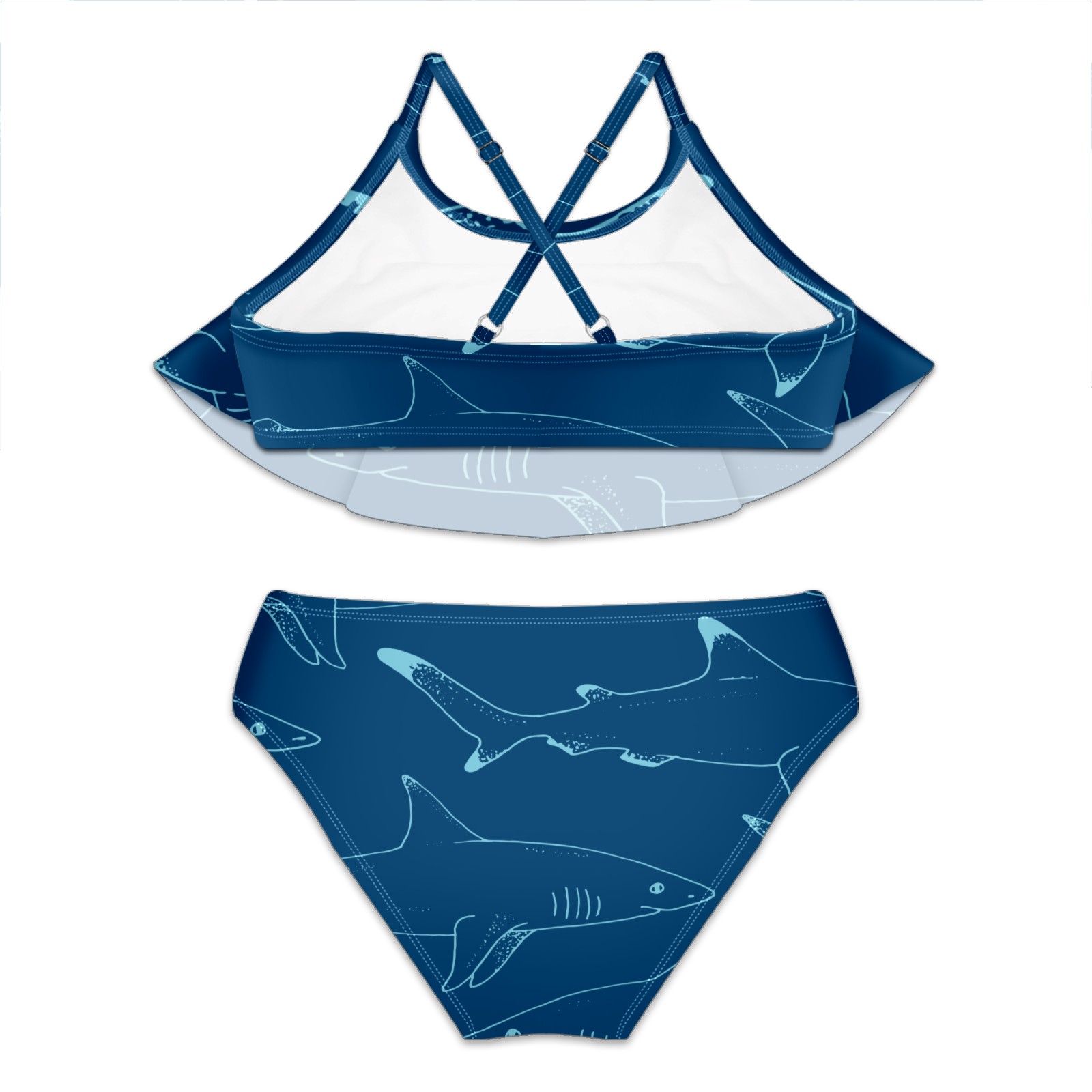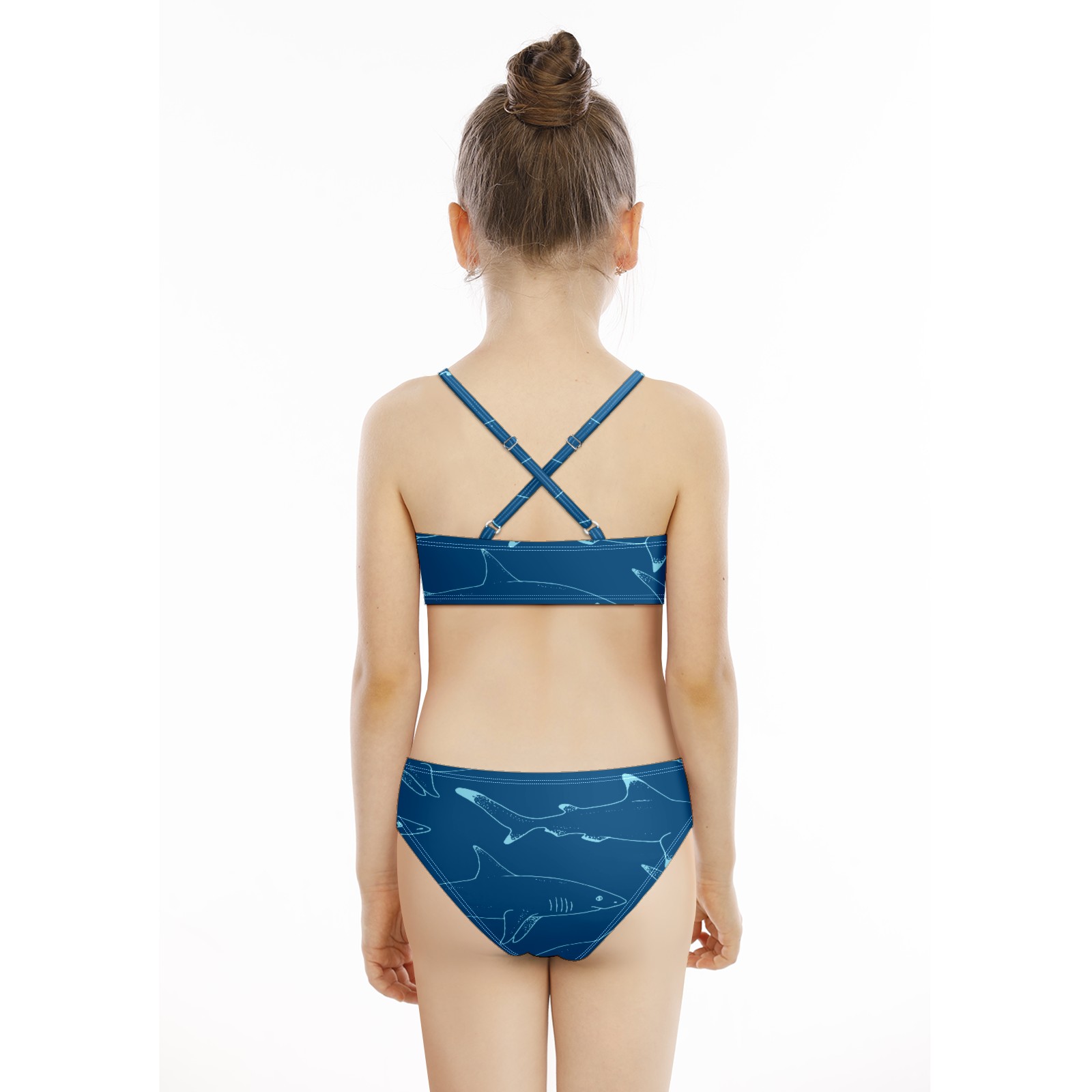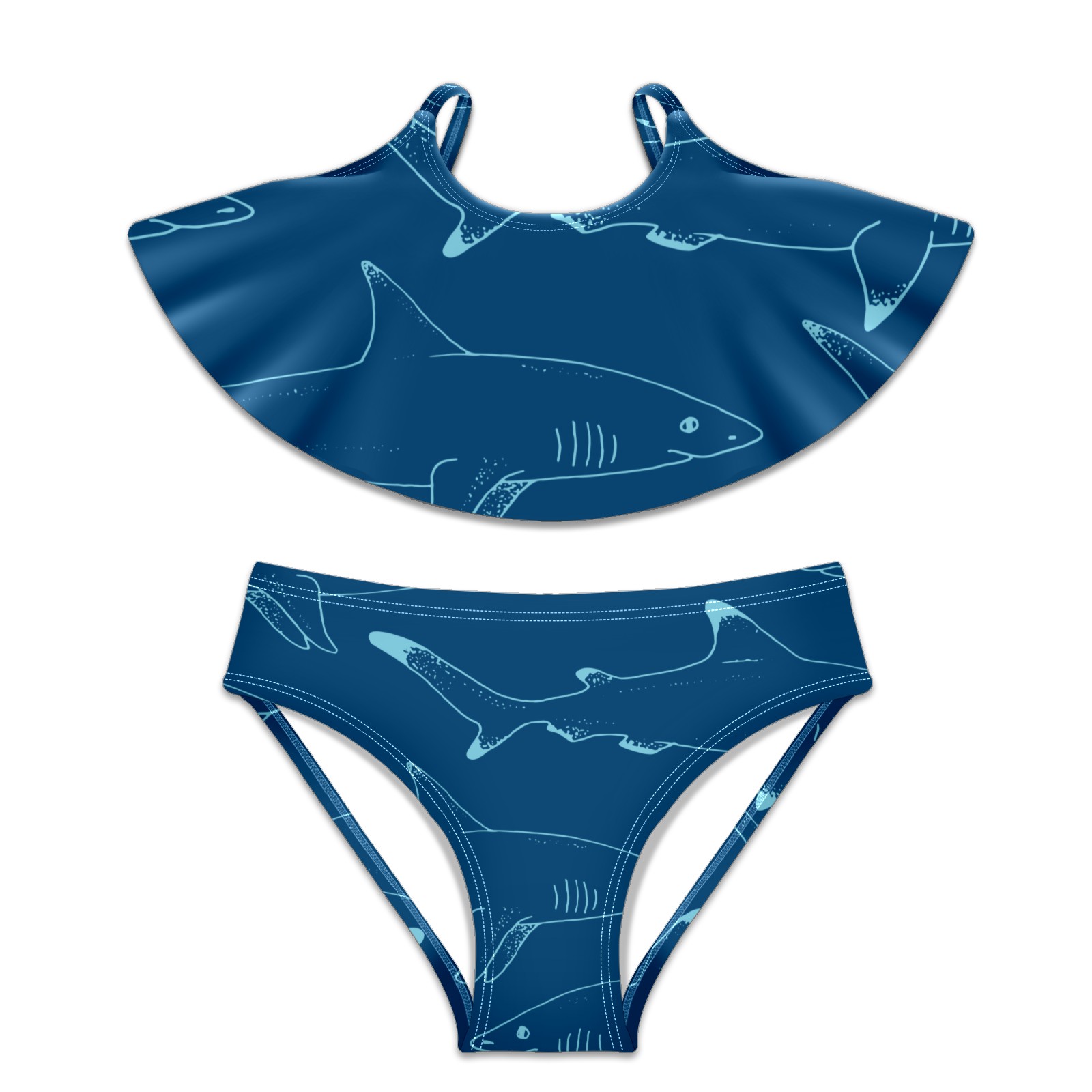 Swimsuits for Girls Two Pieces Bathing Suit Quick Dry Swimwear Blue Shark Sea Fish S