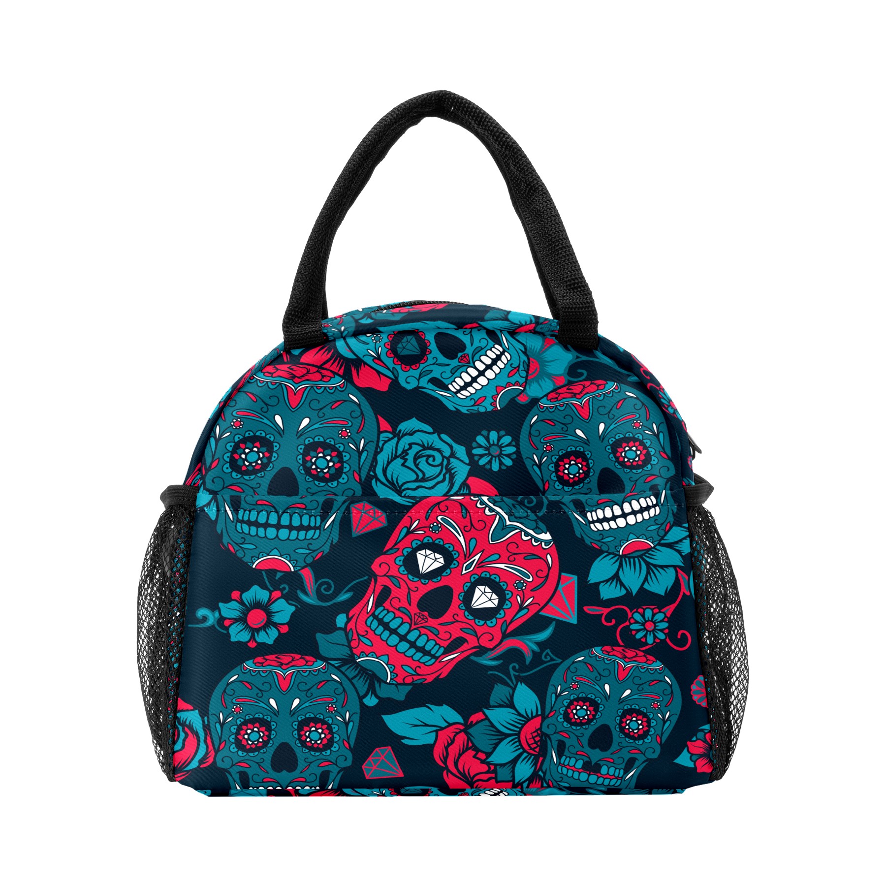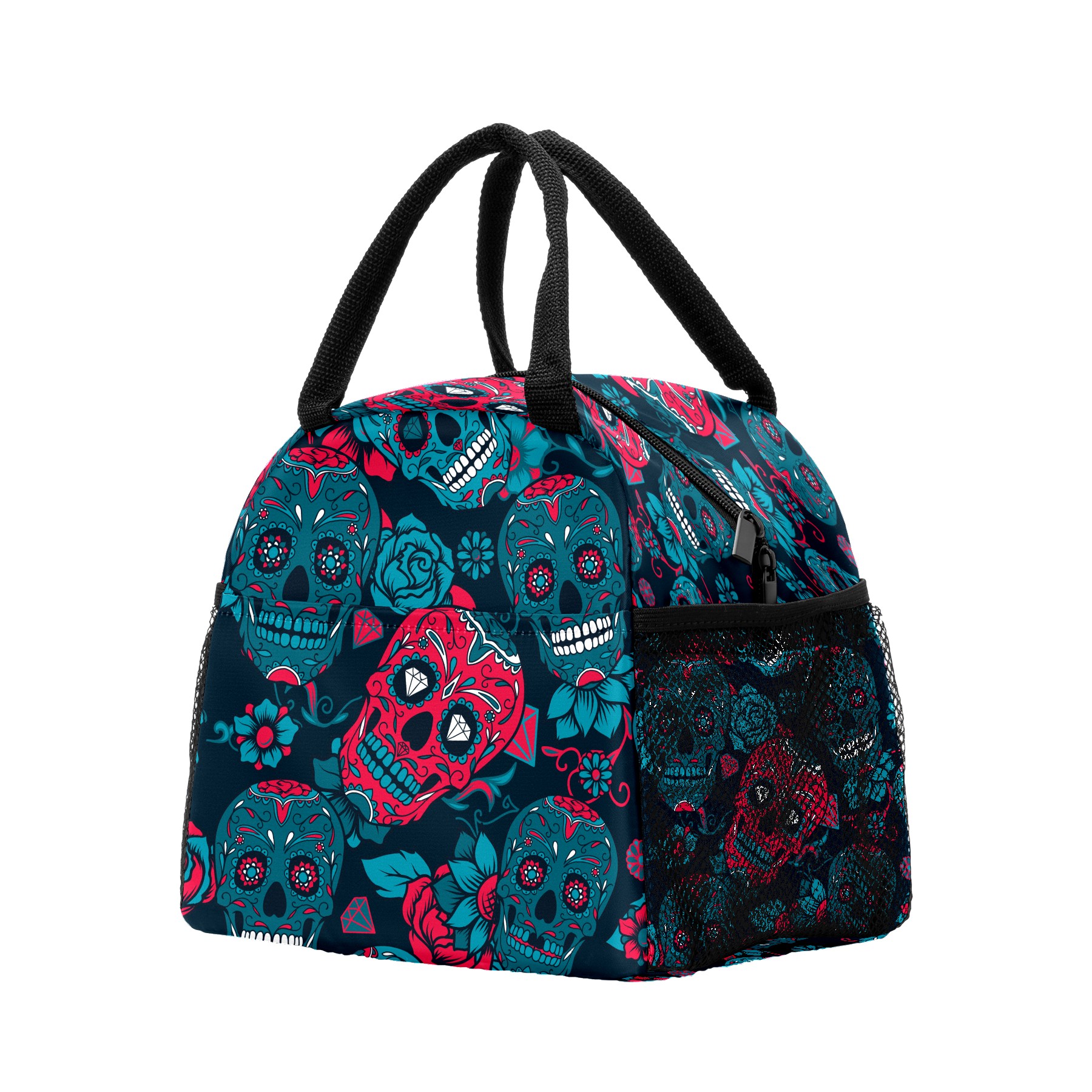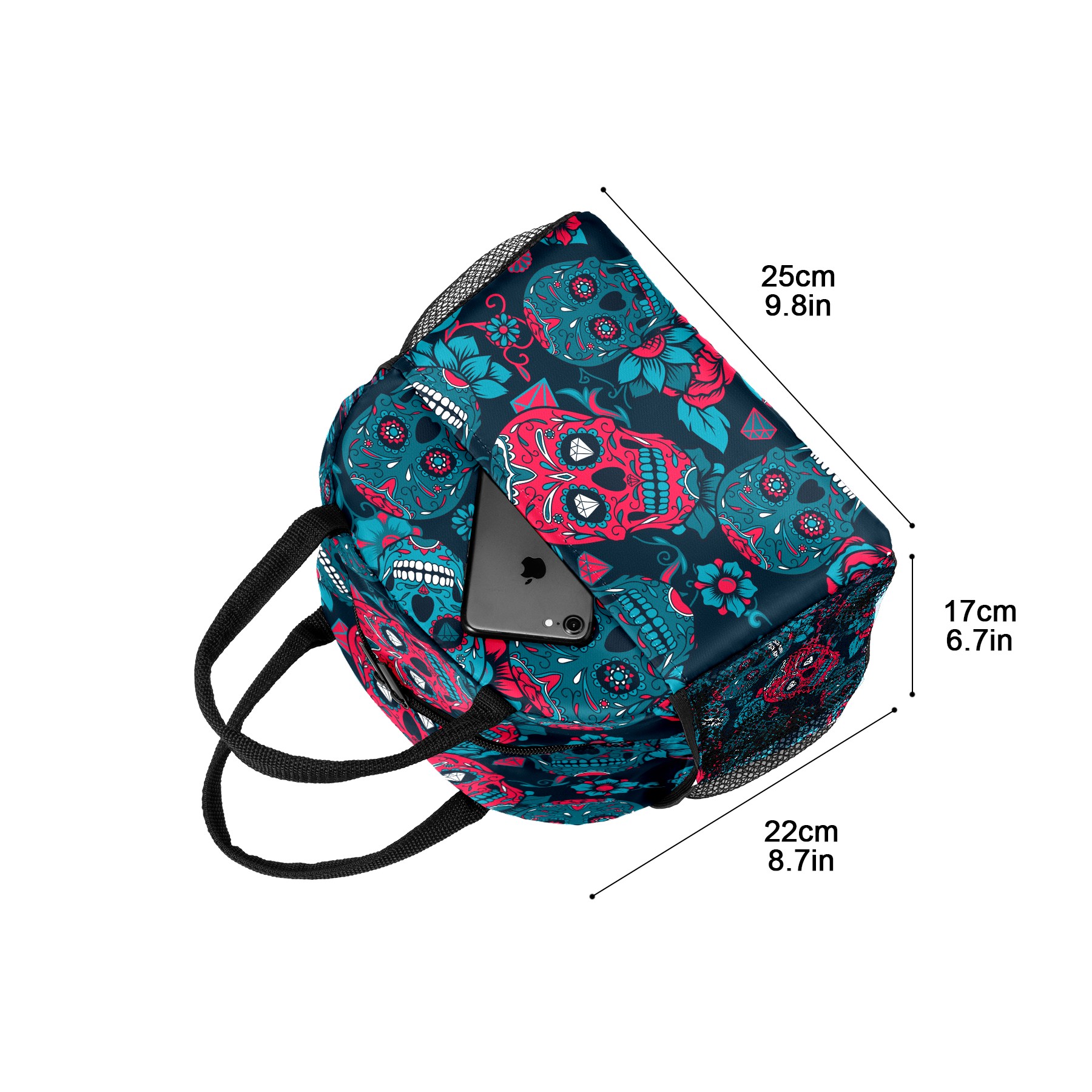 Lunch Bag for Women Men, Day Of The Day Sugar Skull Rose Insulated Reusable Lunch Box Thermal Cooler Tote Bag for Work Picnic Hiking Travel Beach