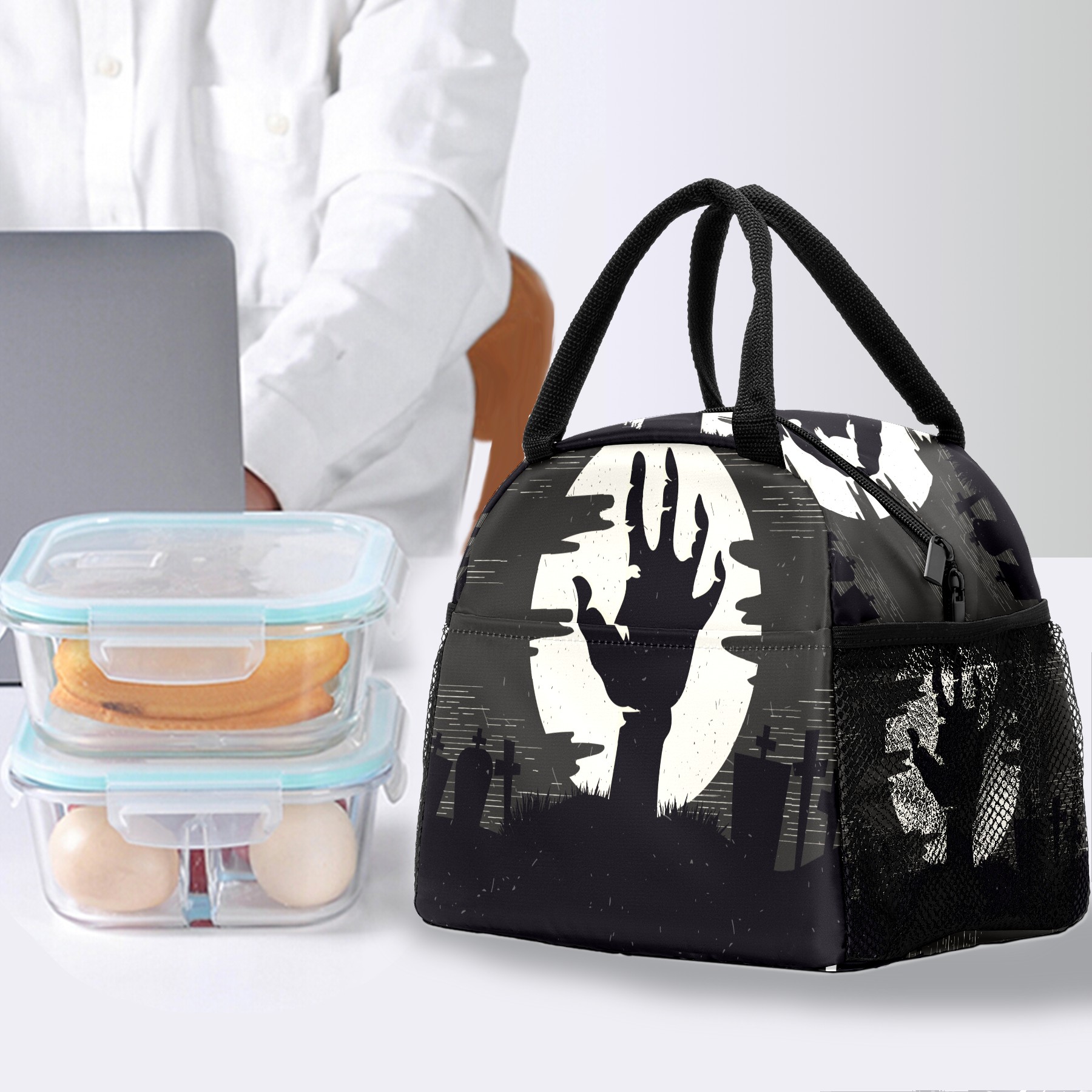 Lunch Bag for Women Men, Halloween Zombie Hand Insulated Reusable Lunch Box Thermal Cooler Tote Bag for Work Picnic Hiking Travel Beach