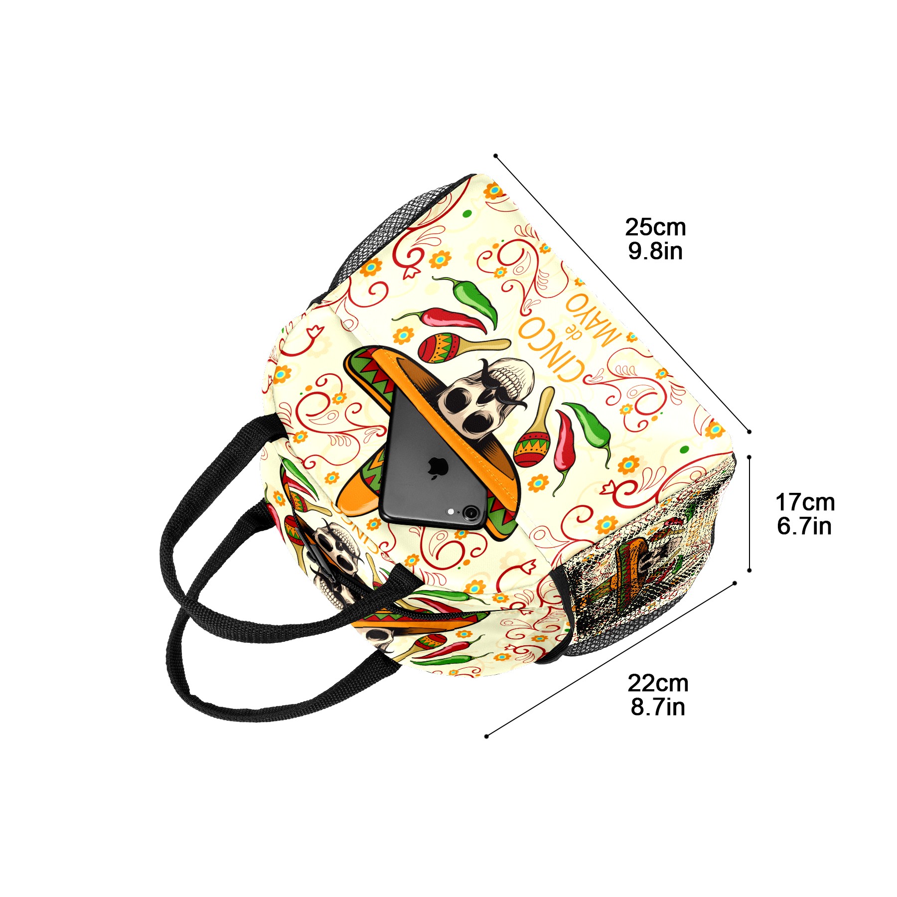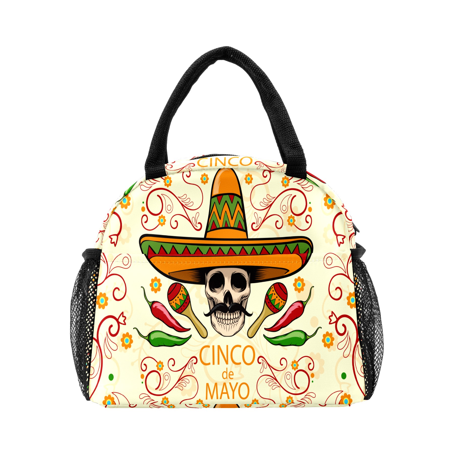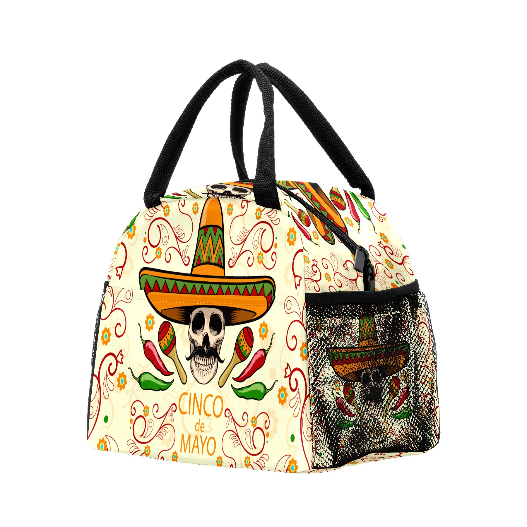 Lunch Bag for Women Men, Day Of The Dead Sugar Skull Insulated Reusable Lunch Box Thermal Cooler Tote Bag for Work Picnic Hiking Travel Beach