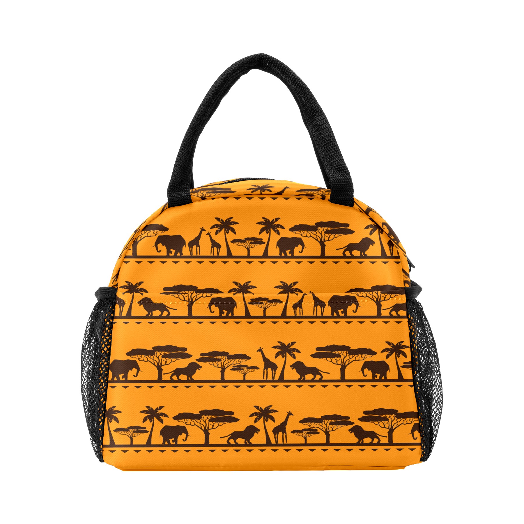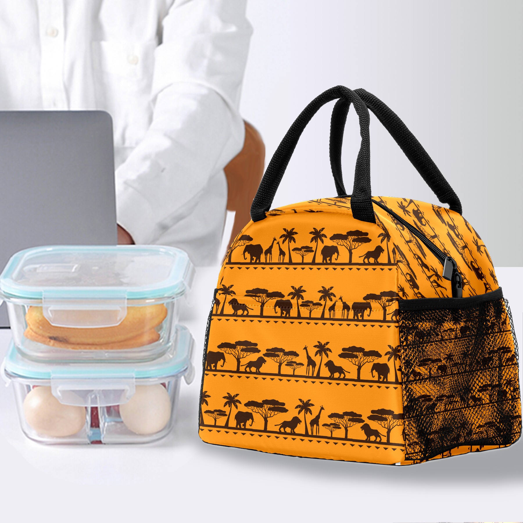 Lunch Bag for Women Men, Africa Ethnic Wild Animal Print Insulated Reusable Lunch Box Thermal Cooler Tote Bag for Work Picnic Hiking Travel Beach