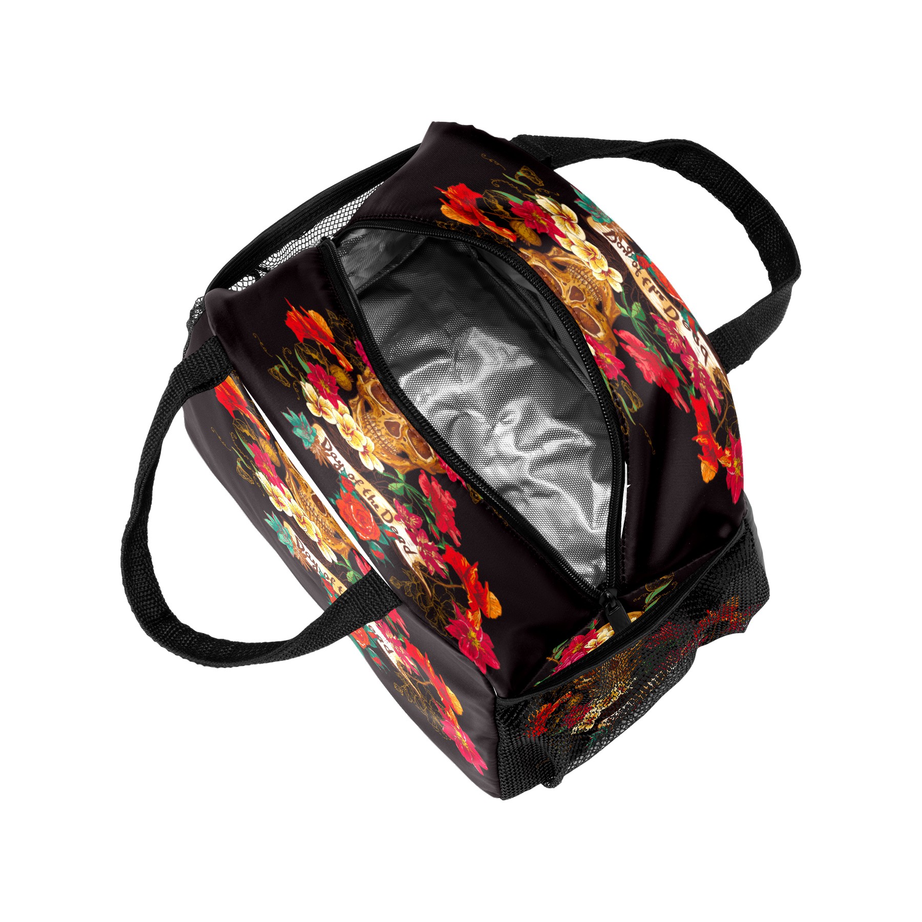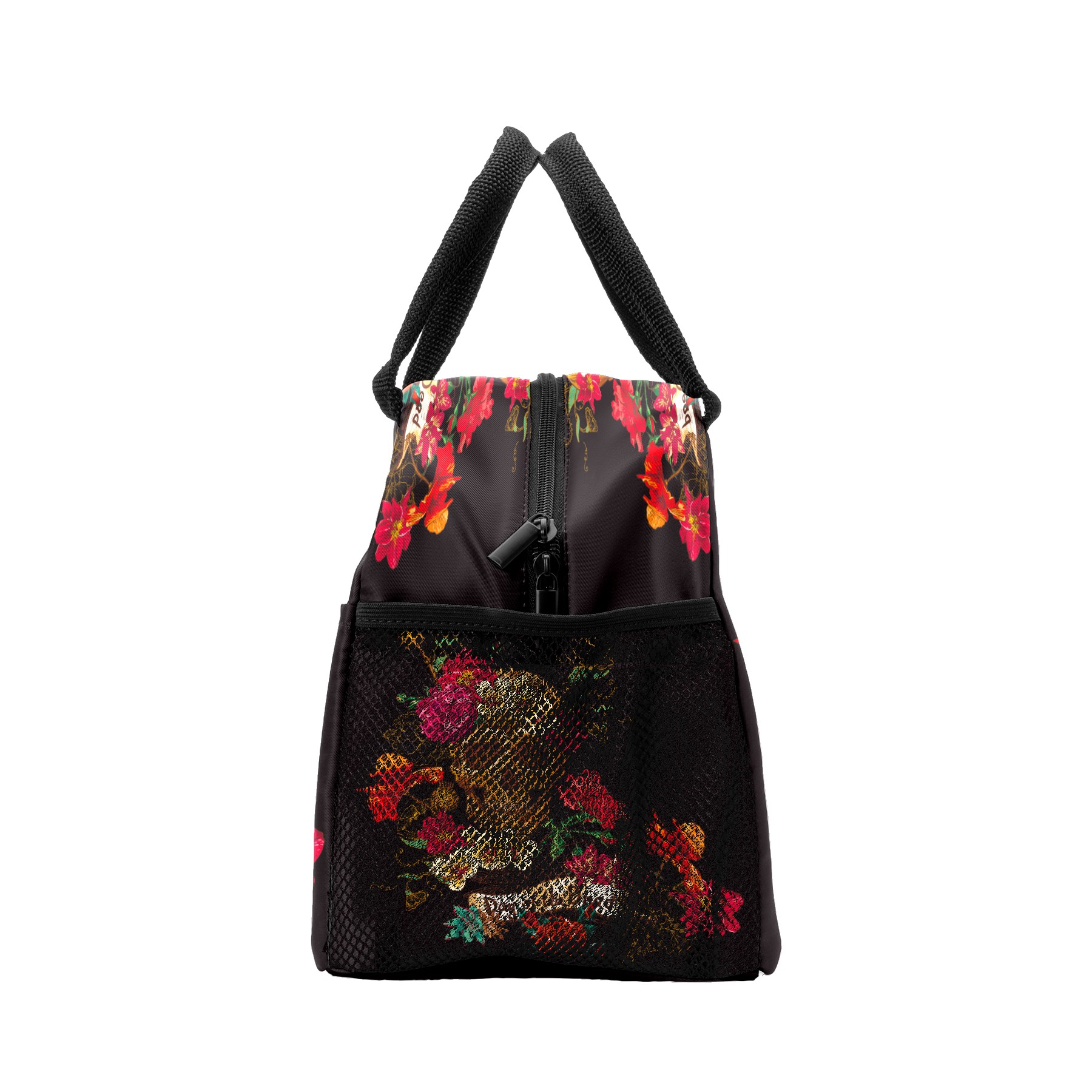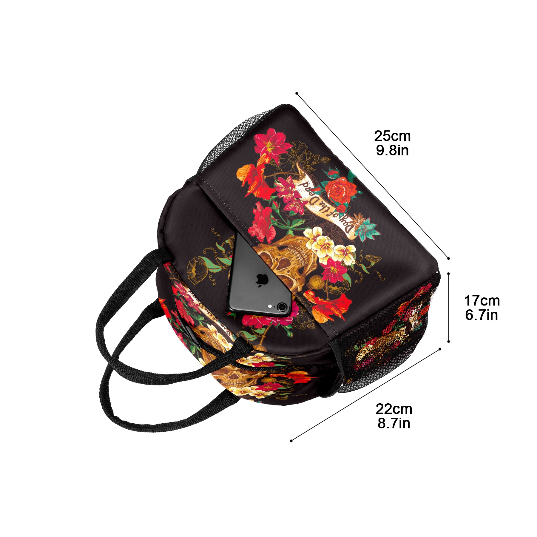 Lunch Bag for Women Men, Day Of The Dead Sugar Skull Flower Insulated Reusable Lunch Box Thermal Cooler Tote Bag for Work Picnic Hiking Travel Beach
