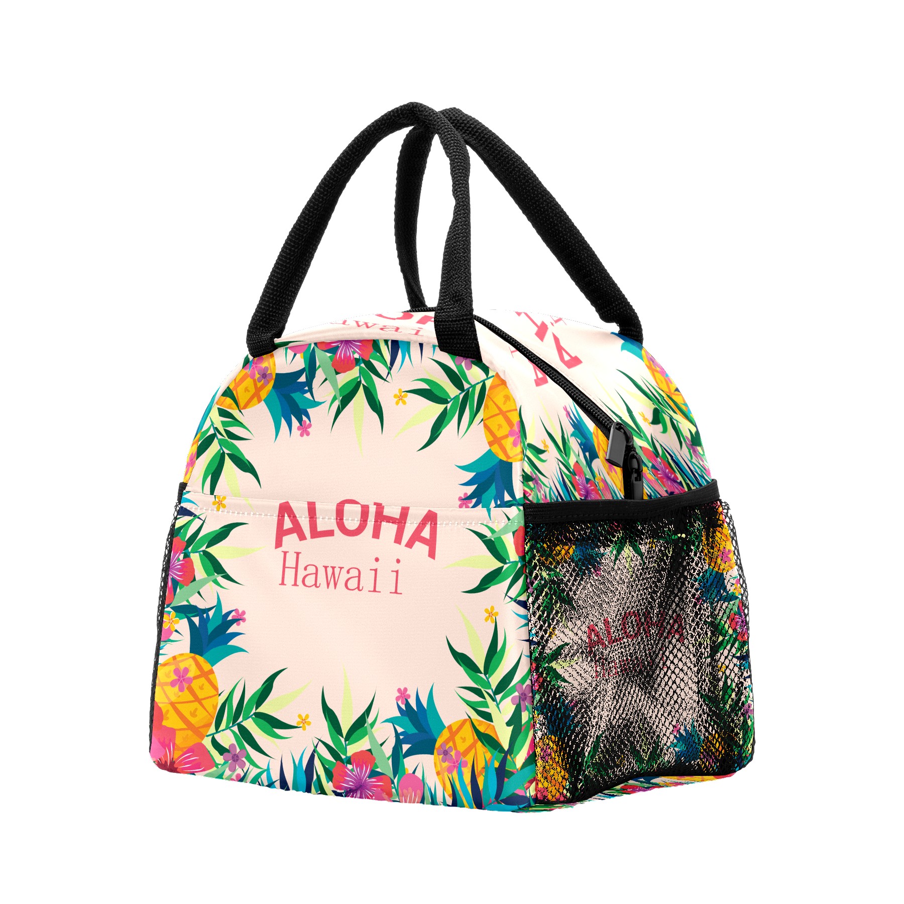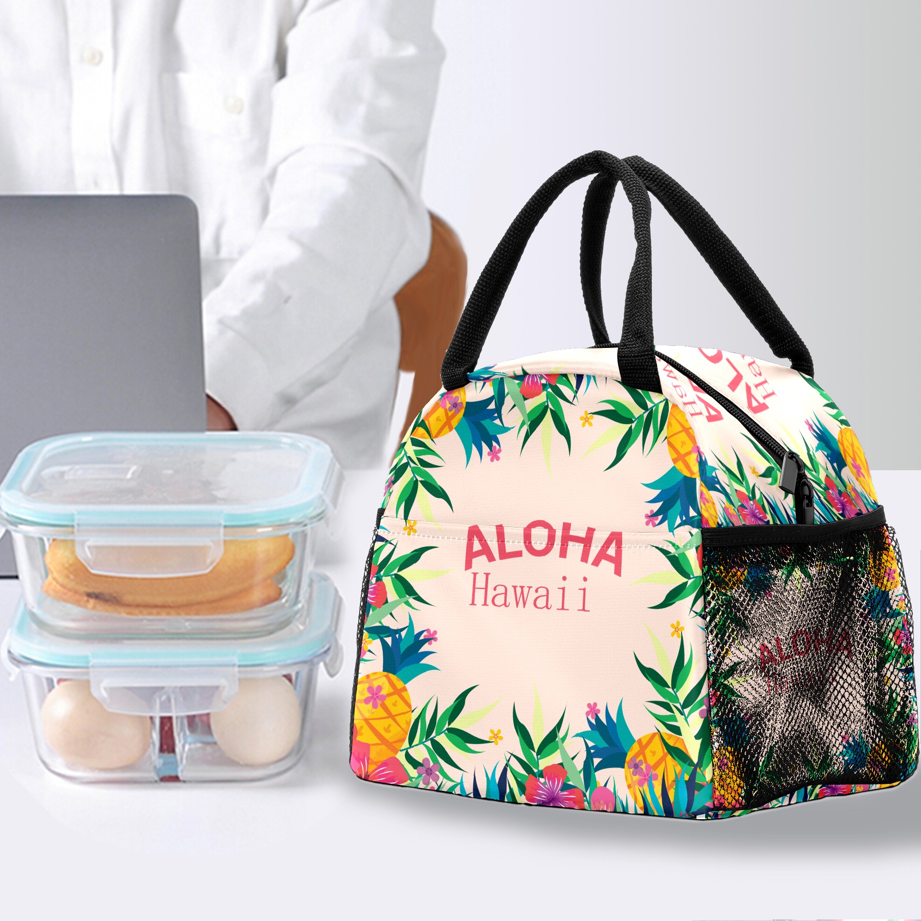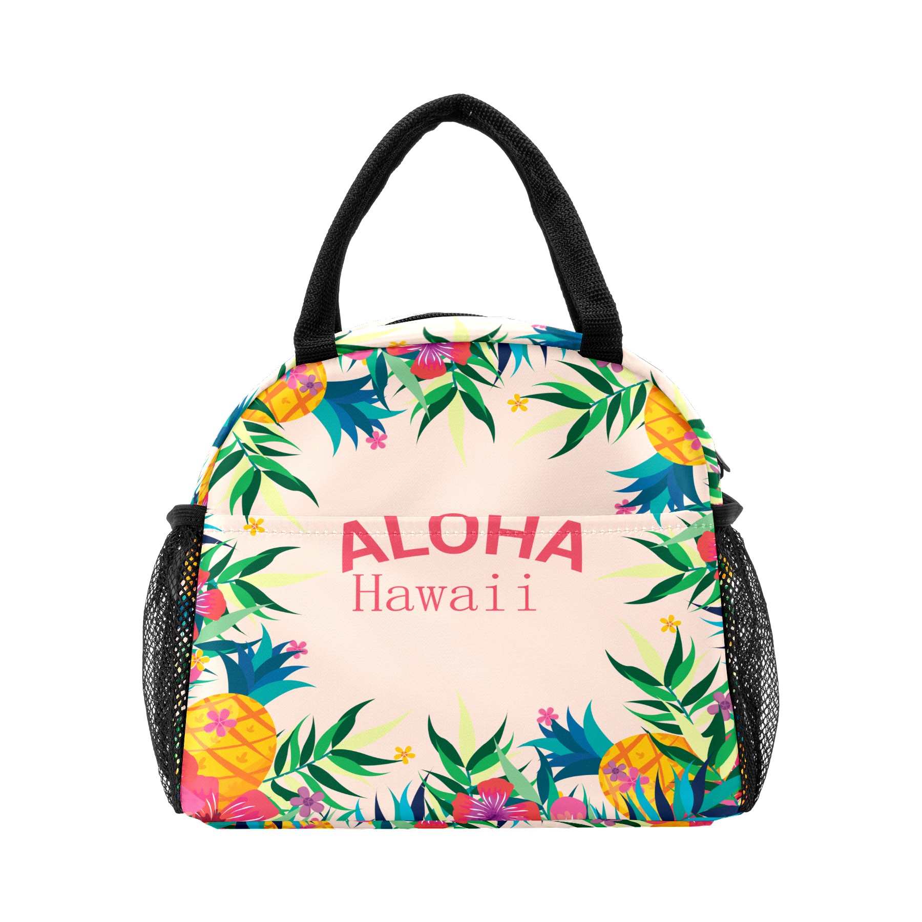 Lunch Bag for Women Men, Colorful Tropical Aloha Floral Print Insulated Reusable Lunch Box Thermal Cooler Tote Bag for Work Picnic Hiking Travel Beach