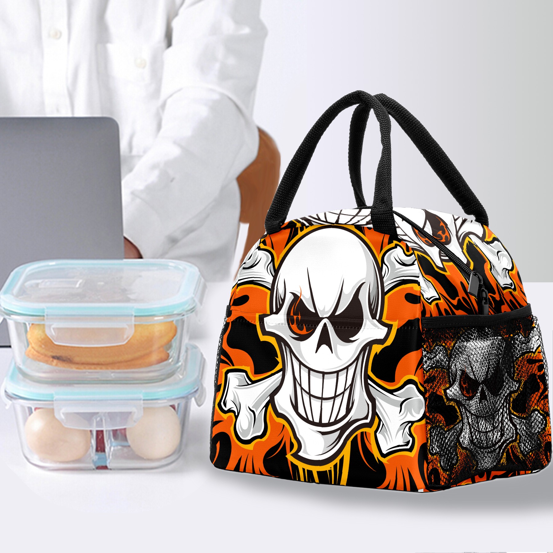 Lunch Bag for Women Men, Cool Skull Skeleton Pirates Insulated Reusable Lunch Box Thermal Cooler Tote Bag for Work Picnic Hiking Travel Beach