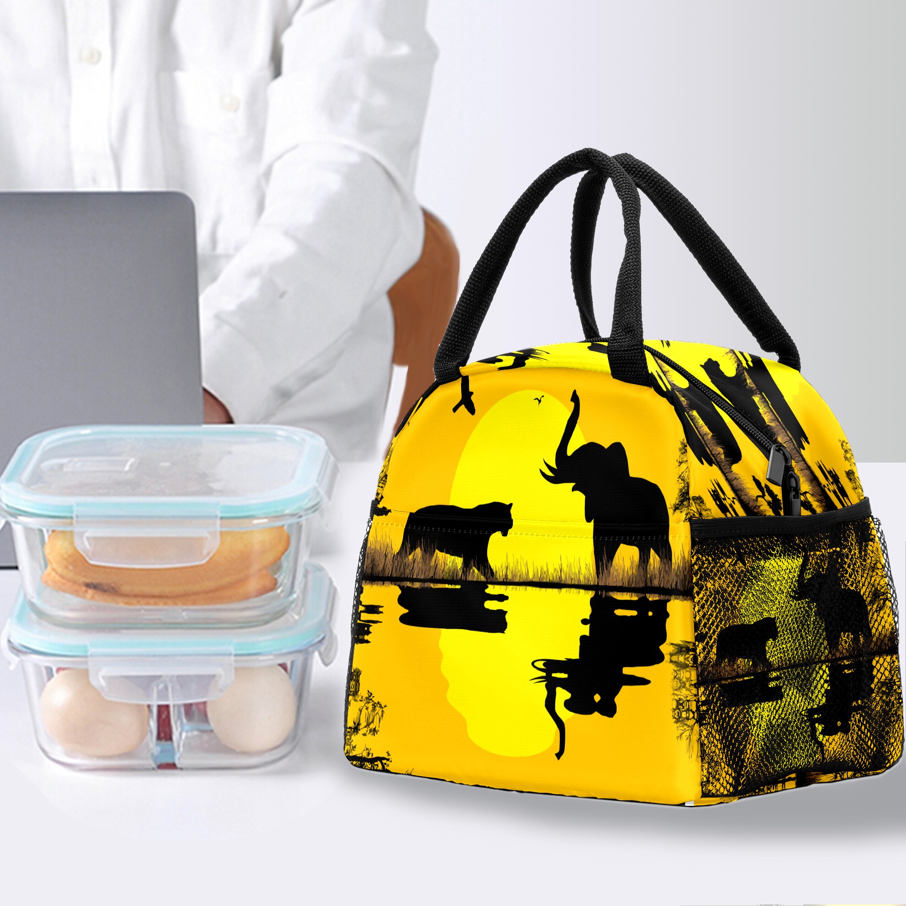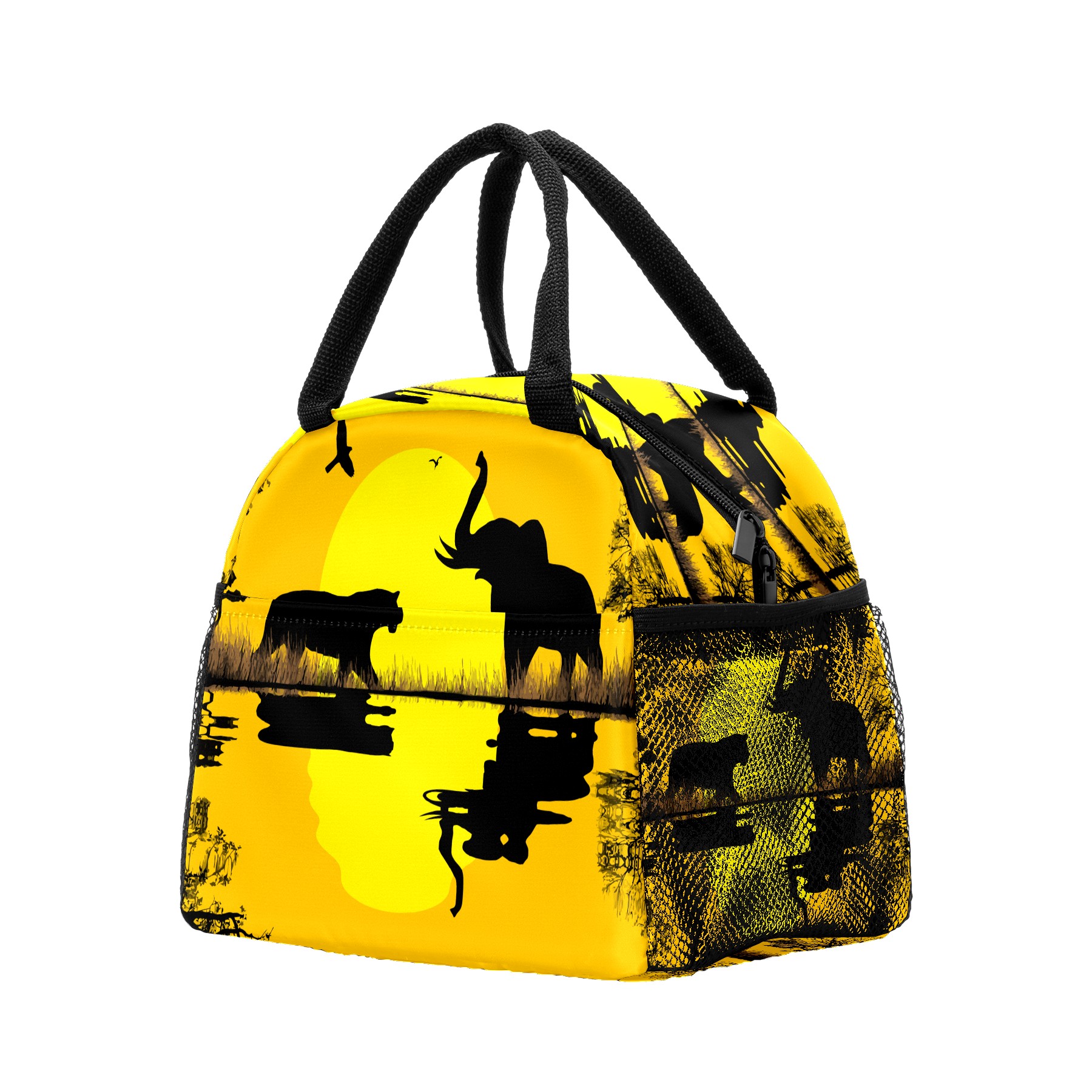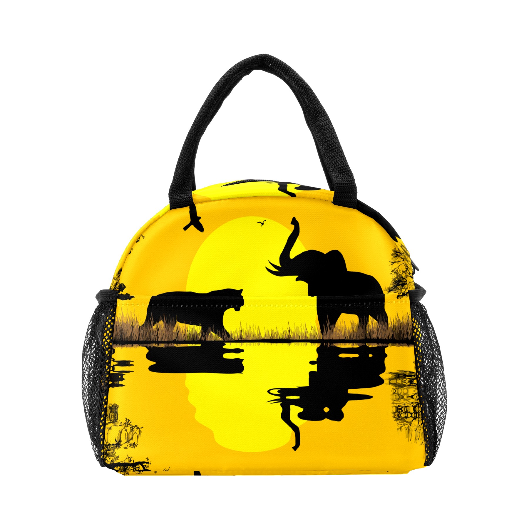 Lunch Bag for Women Men, African Sunset Elephant Wild Animal Insulated Reusable Lunch Box Thermal Cooler Tote Bag for Work Picnic Hiking Travel Beach
