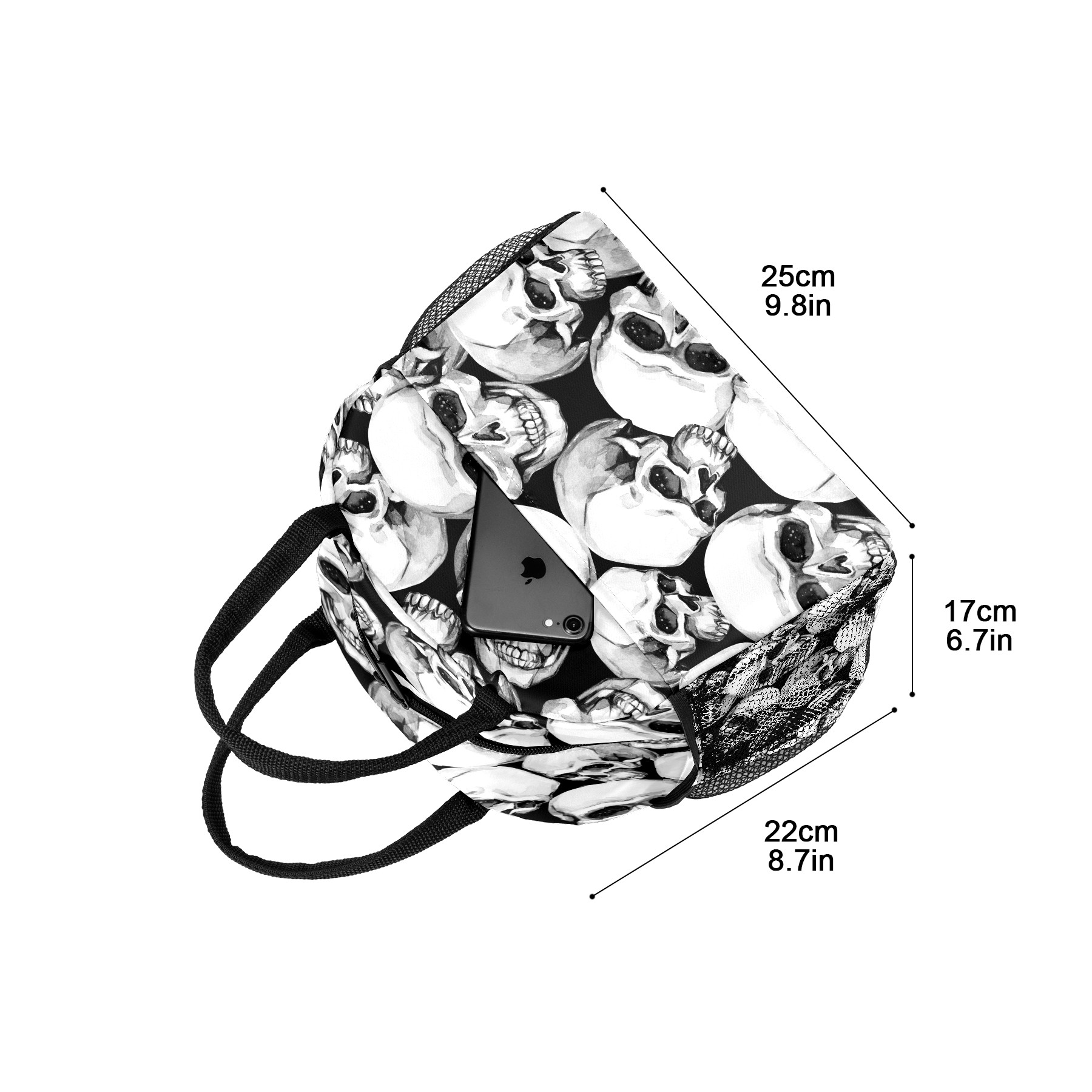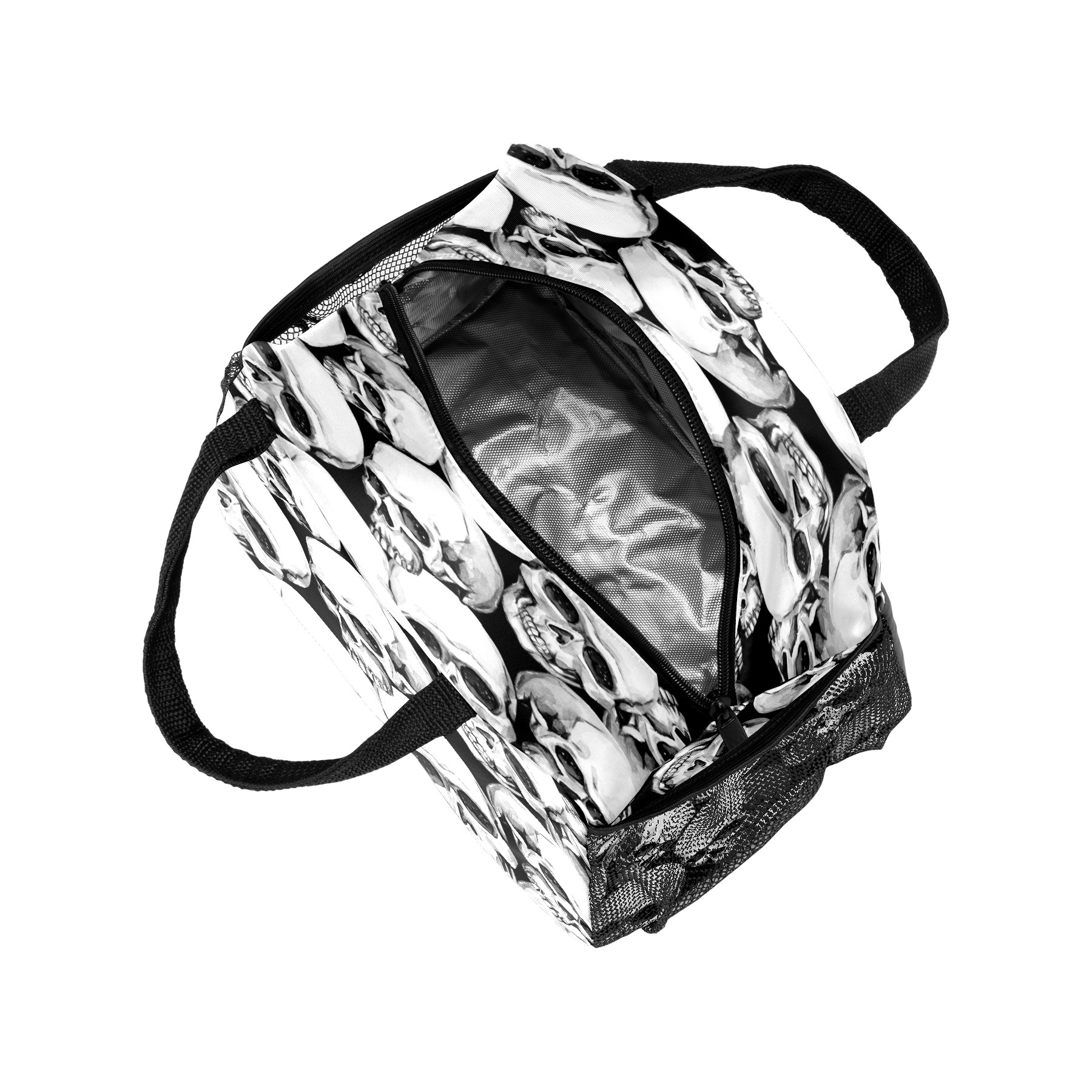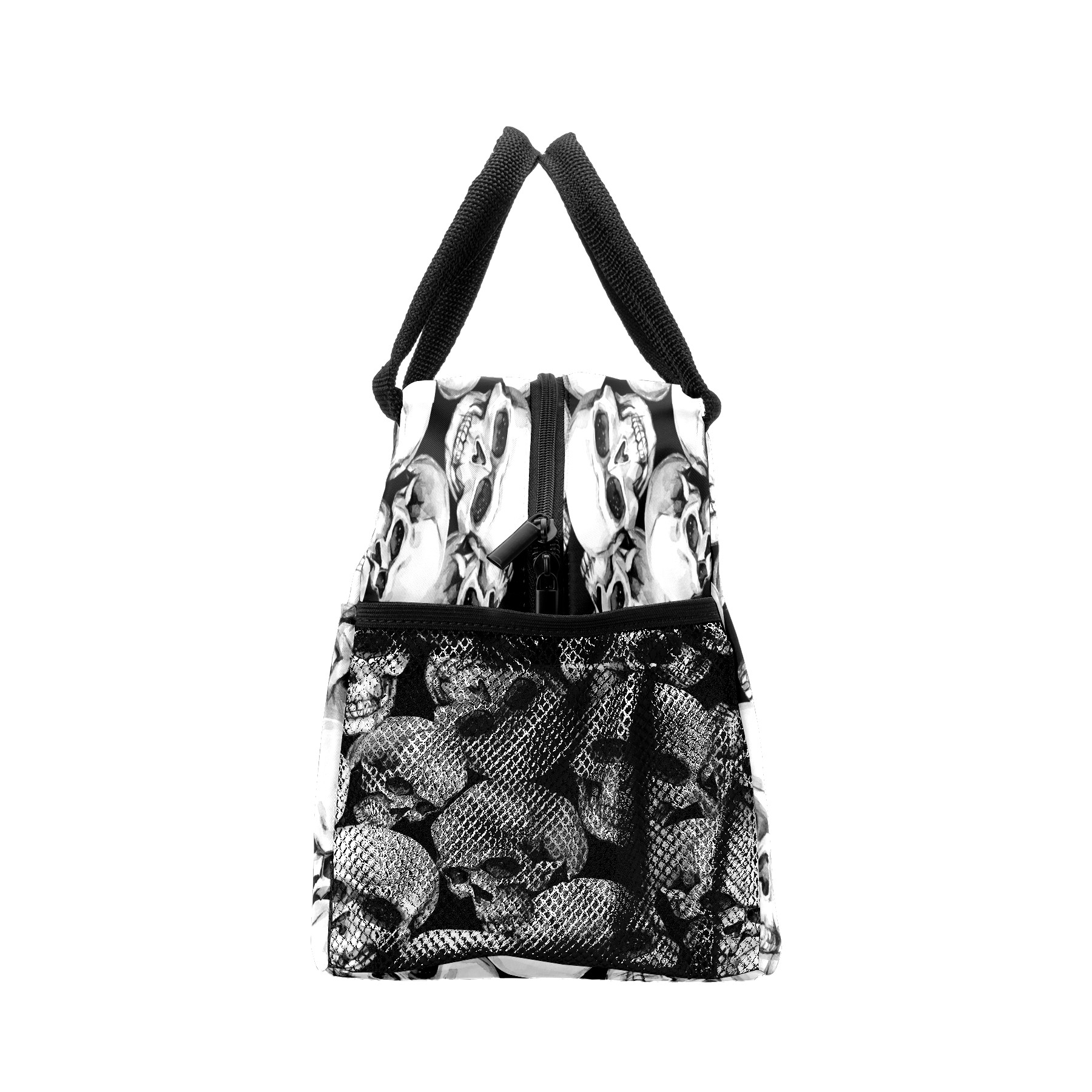 Lunch Bag for Women Men, Black White Skull Pattern Insulated Reusable Lunch Box Thermal Cooler Tote Bag for Work Picnic Hiking Travel Beach