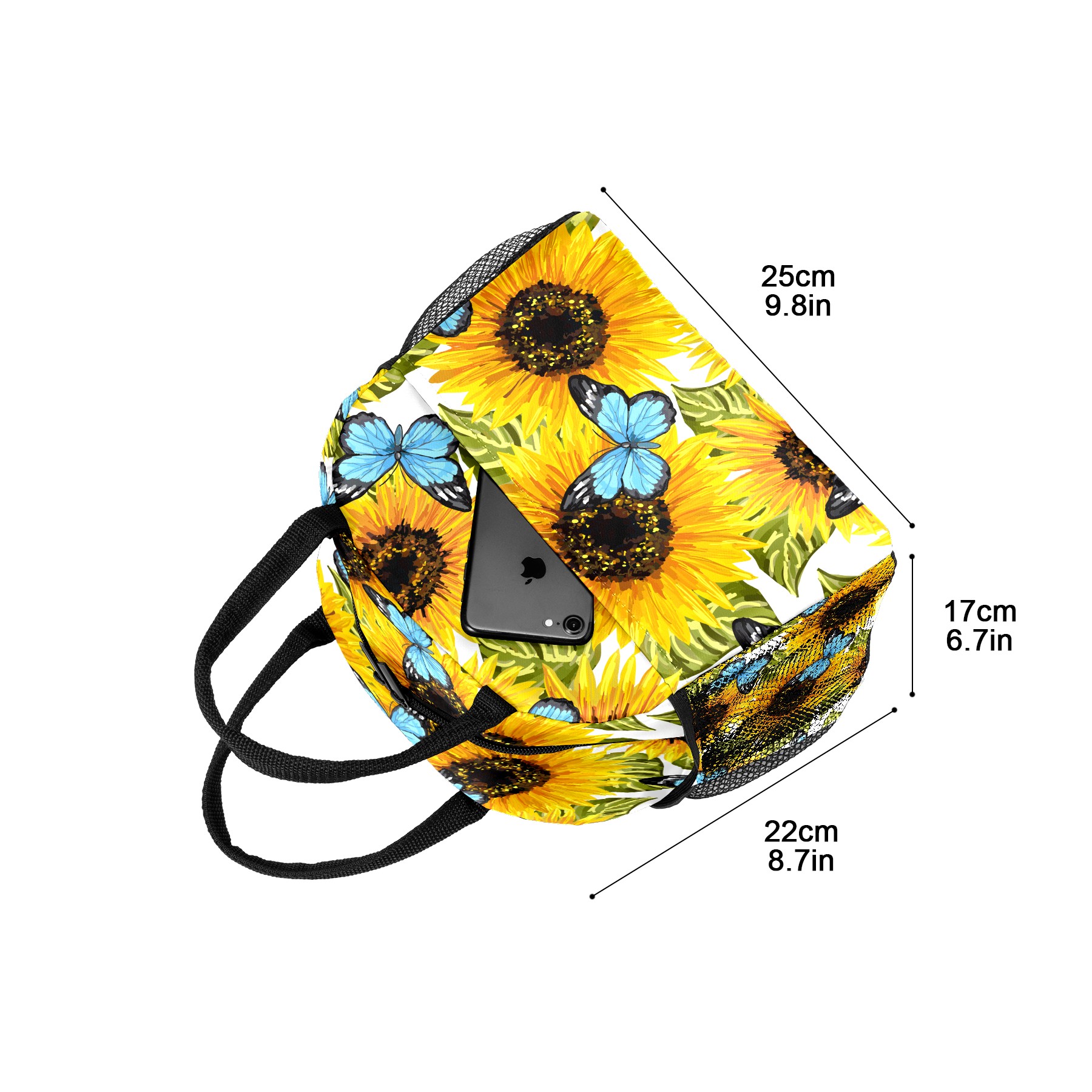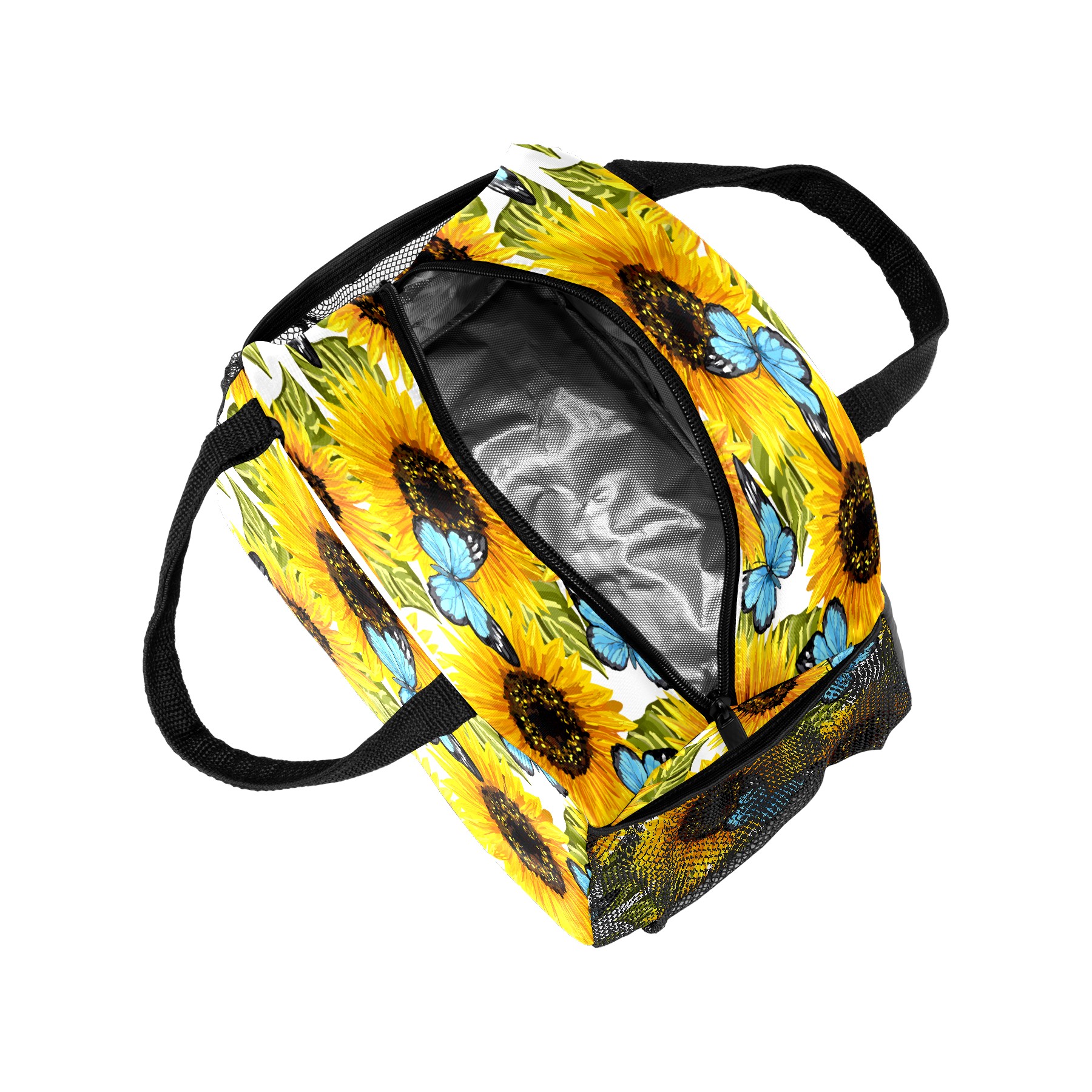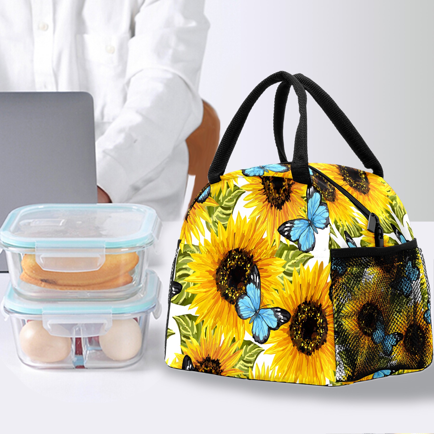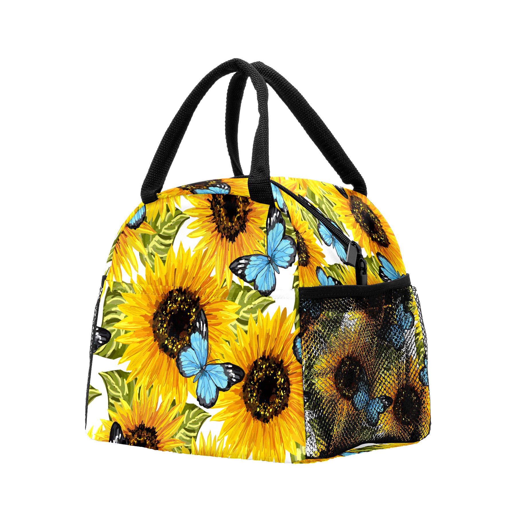 Lunch Bag for Women Men, Sunflower Butterfly Oil Painting Insulated Reusable Lunch Box Thermal Cooler Tote Bag for Work Picnic Hiking Travel Beach