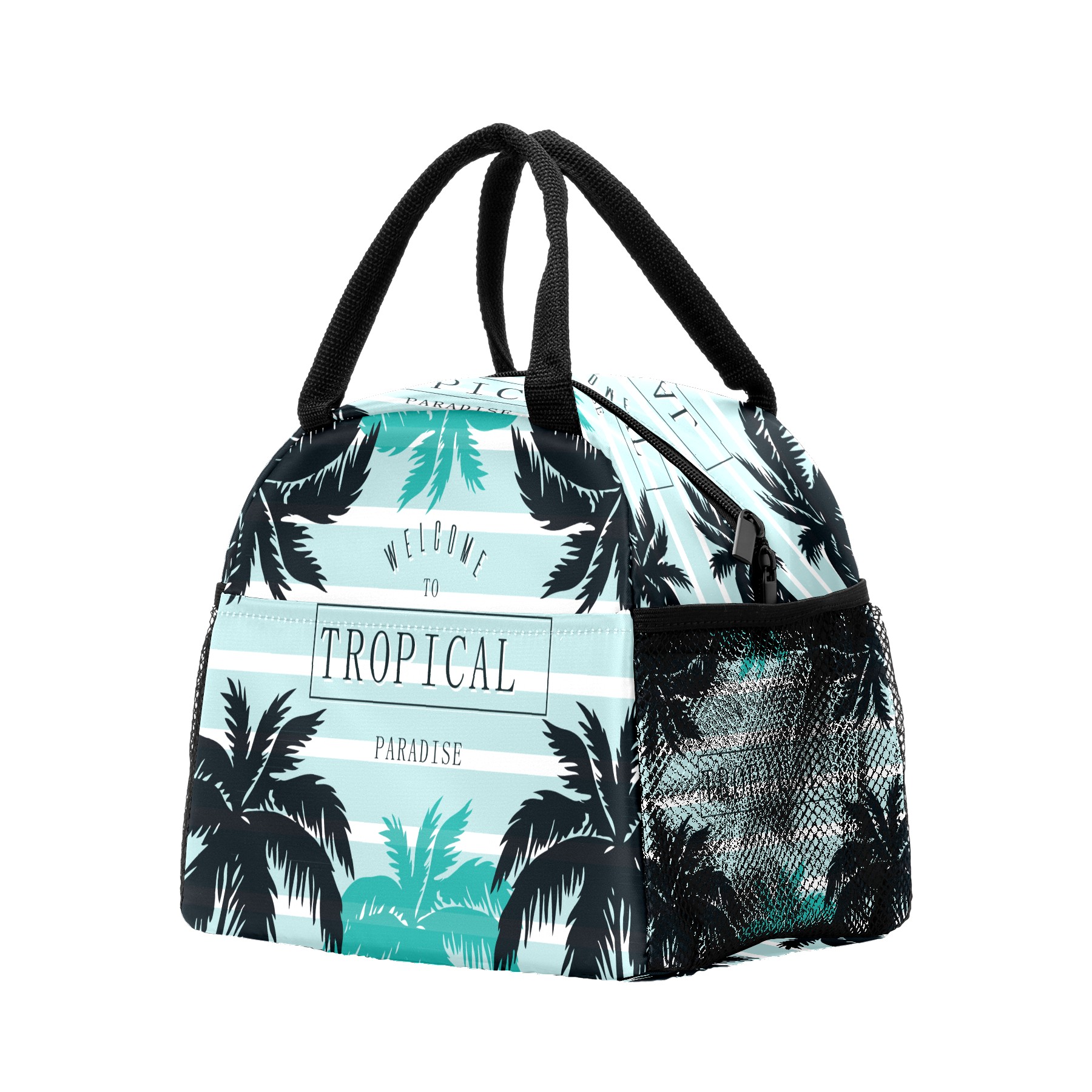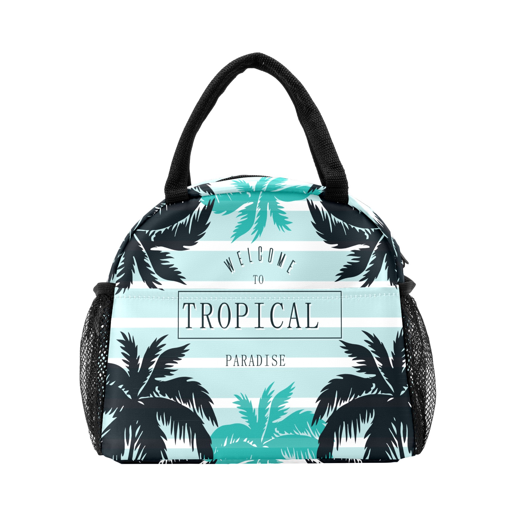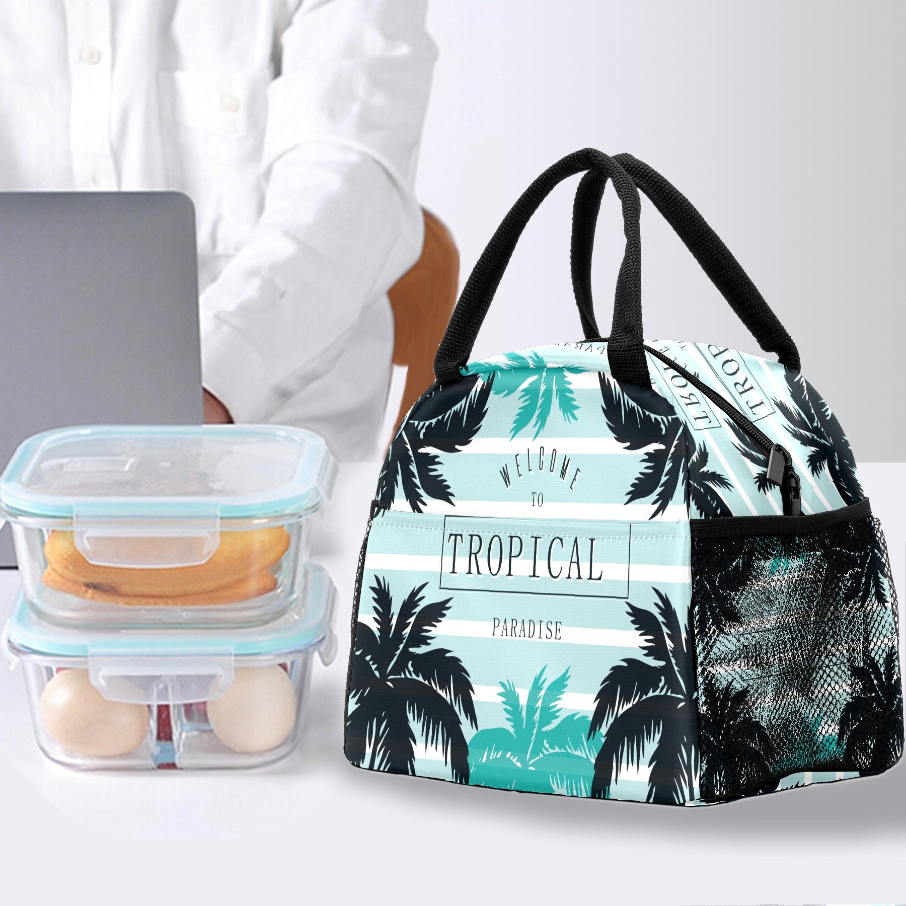 Lunch Bag for Women Men, Tropical Palm Print Insulated Reusable Lunch Box Thermal Cooler Tote Bag for Work Picnic Hiking Travel Beach