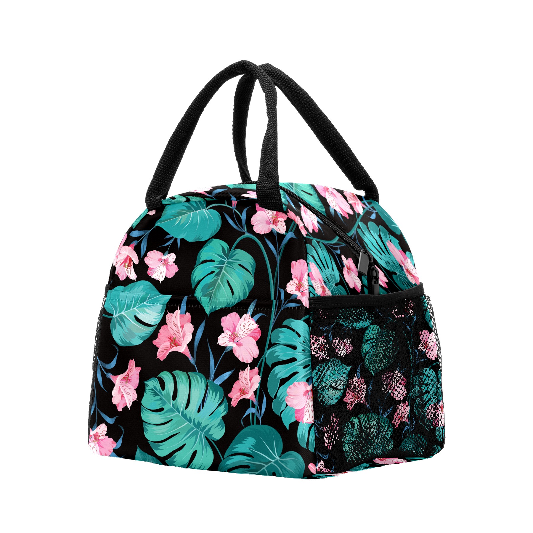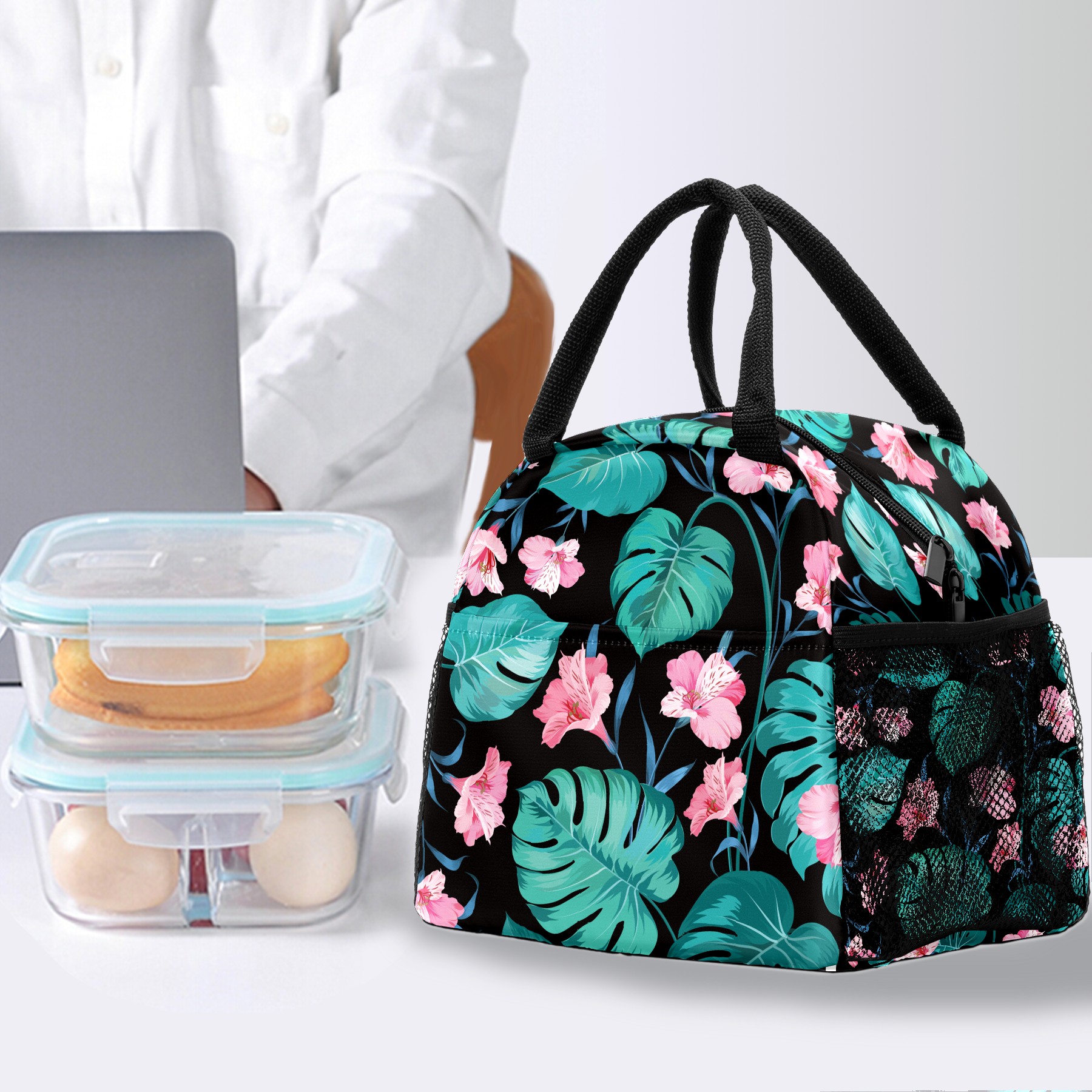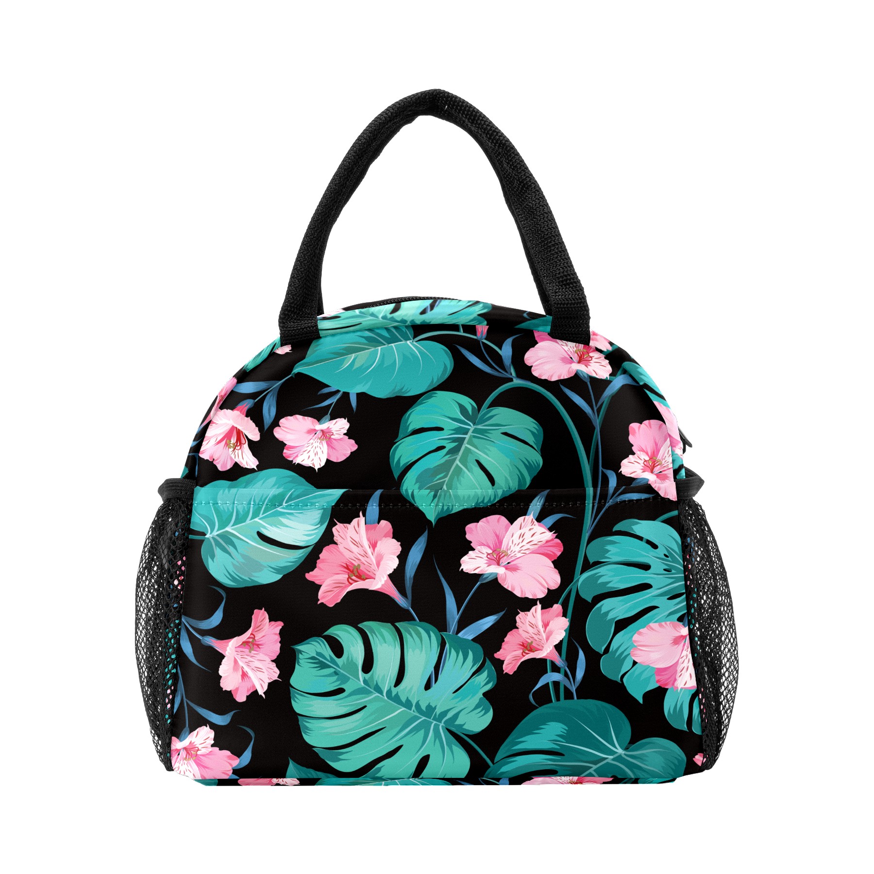 Lunch Bag for Women Men, Summer Tropical Floral Palm Print Insulated Reusable Lunch Box Thermal Cooler Tote Bag for Work Picnic Hiking Travel Beach