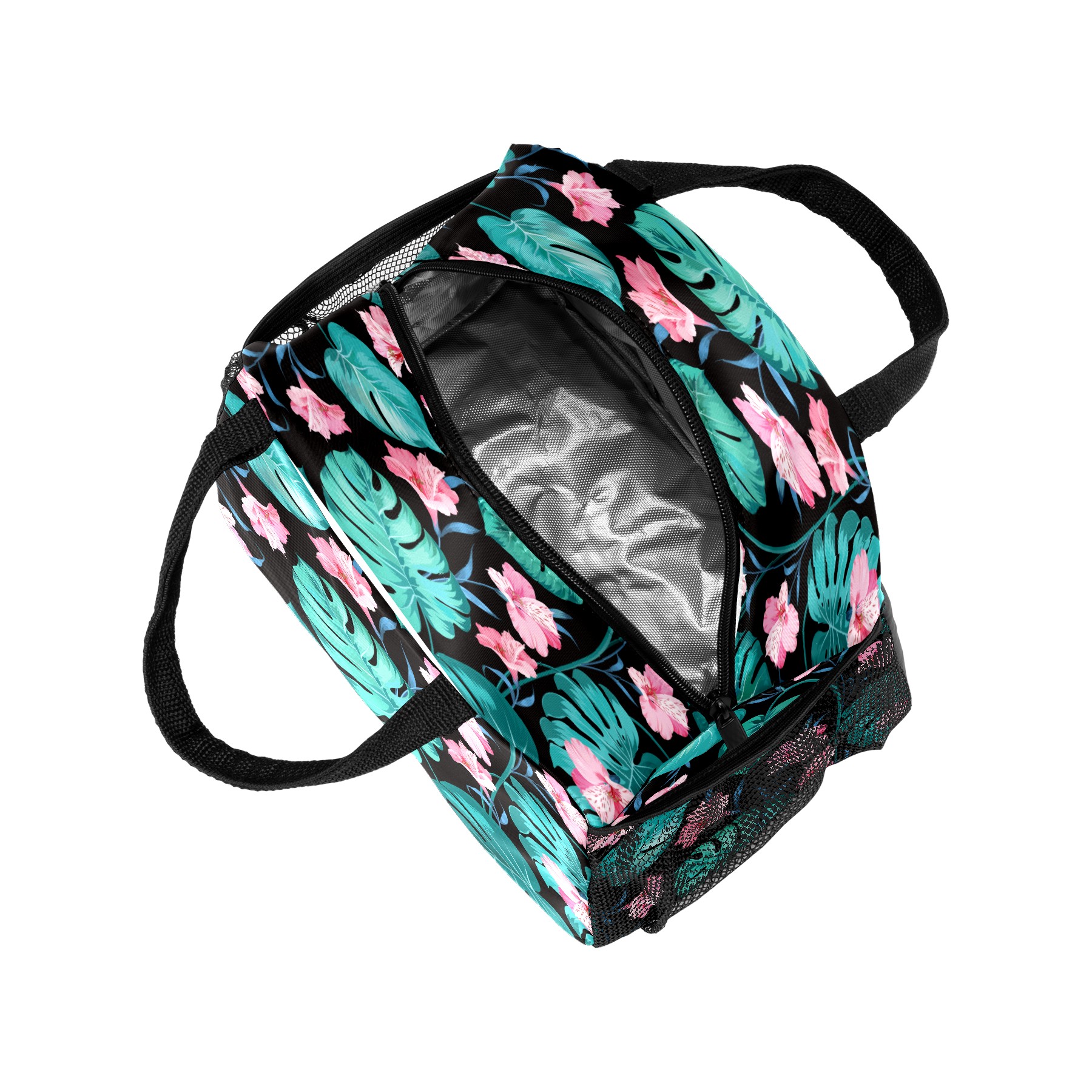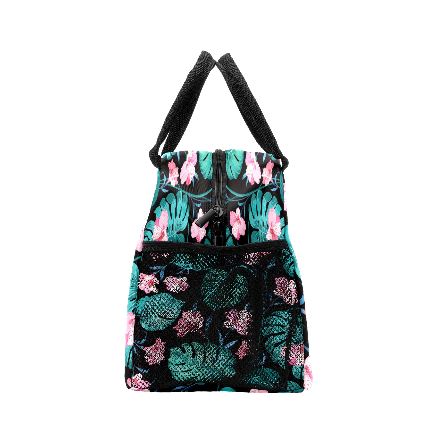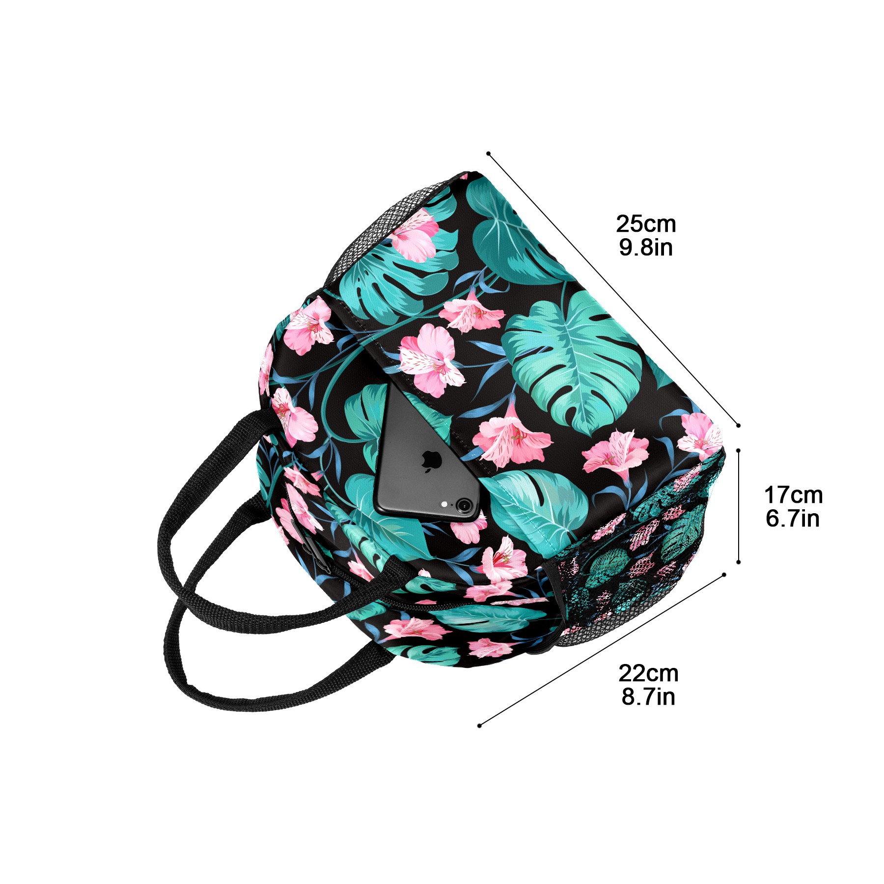 Lunch Bag for Women Men, Summer Tropical Floral Palm Print Insulated Reusable Lunch Box Thermal Cooler Tote Bag for Work Picnic Hiking Travel Beach