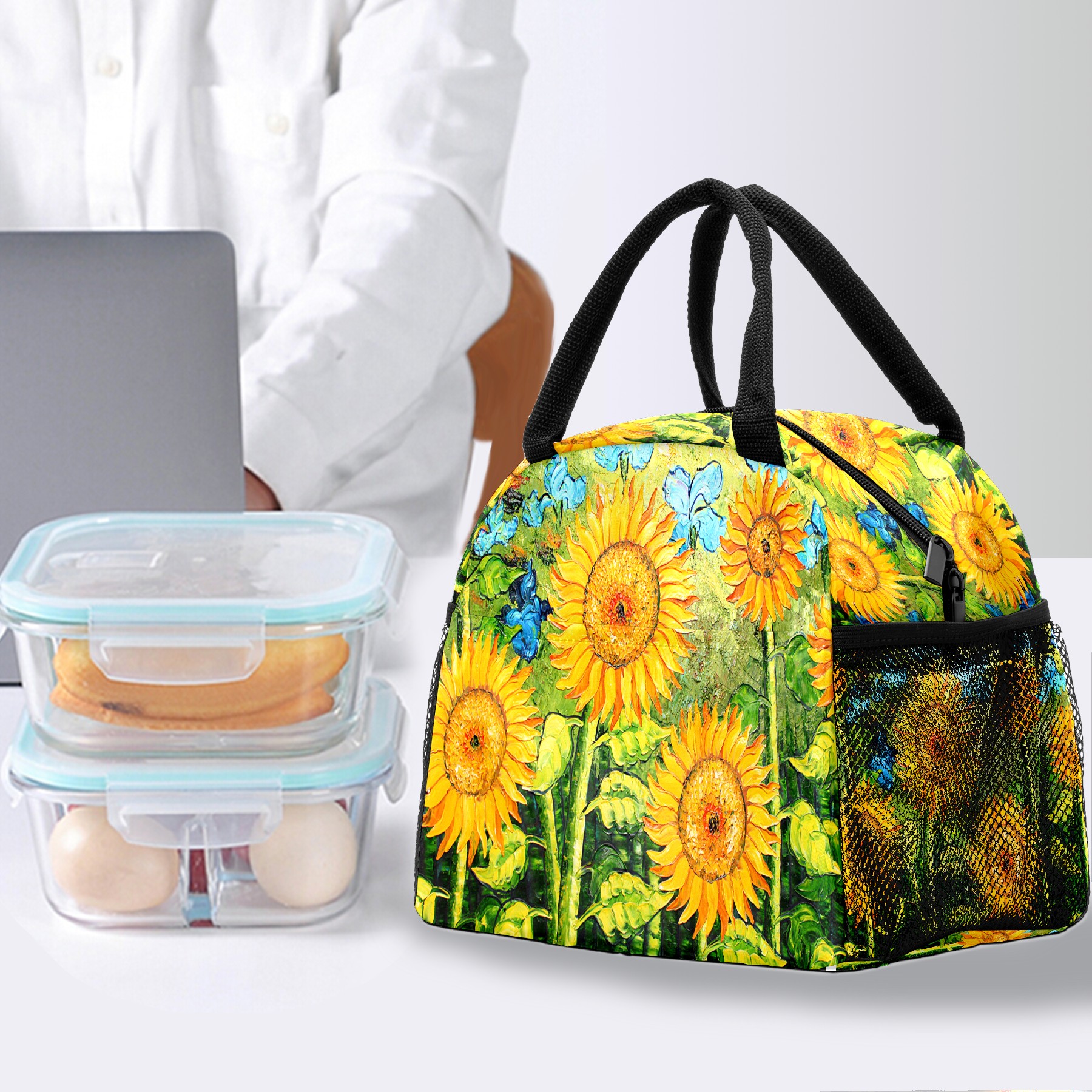Lunch Bag for Women Men, Oil Painting Sunflowers Insulated Reusable Lunch Box Thermal Cooler Tote Bag for Work Picnic Hiking Travel Beach