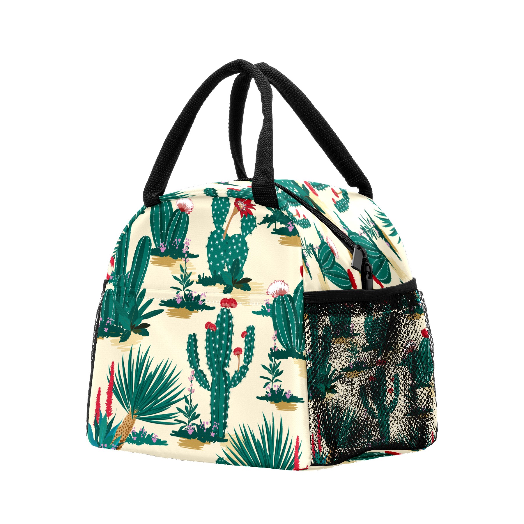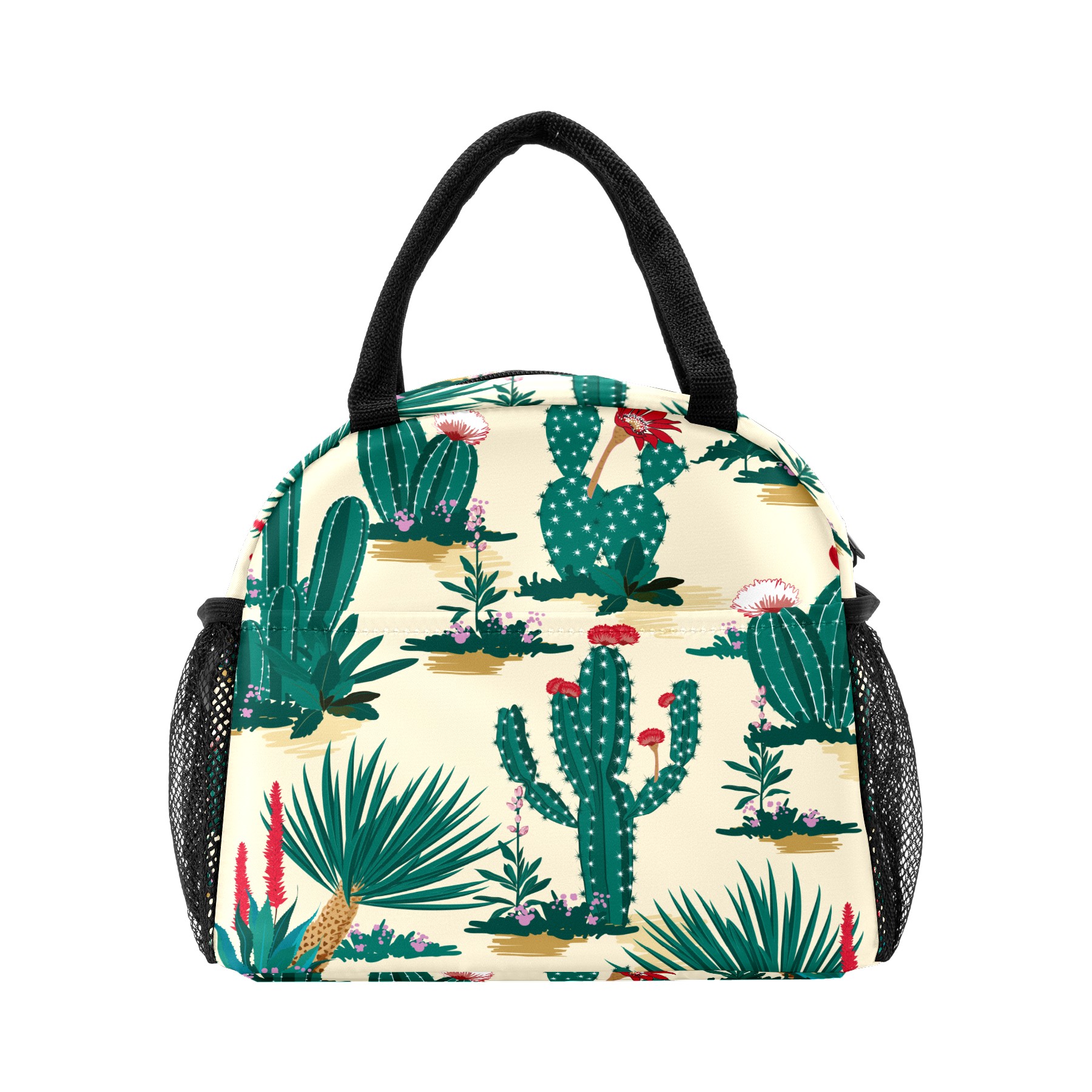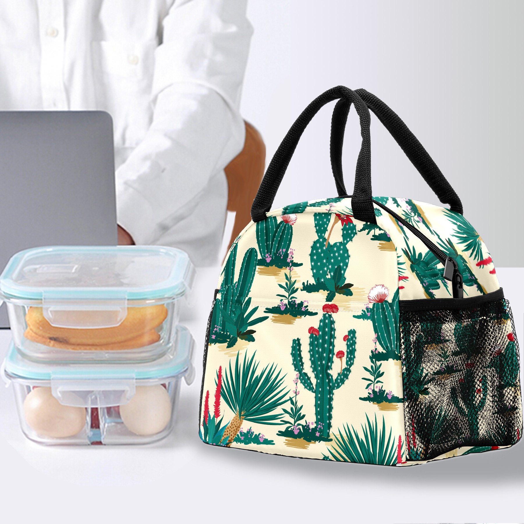 Lunch Bag for Women Men, Retro Cactus Cacti Plants Floral Insulated Reusable Lunch Box Thermal Cooler Tote Bag for Work Picnic Hiking Travel Beach