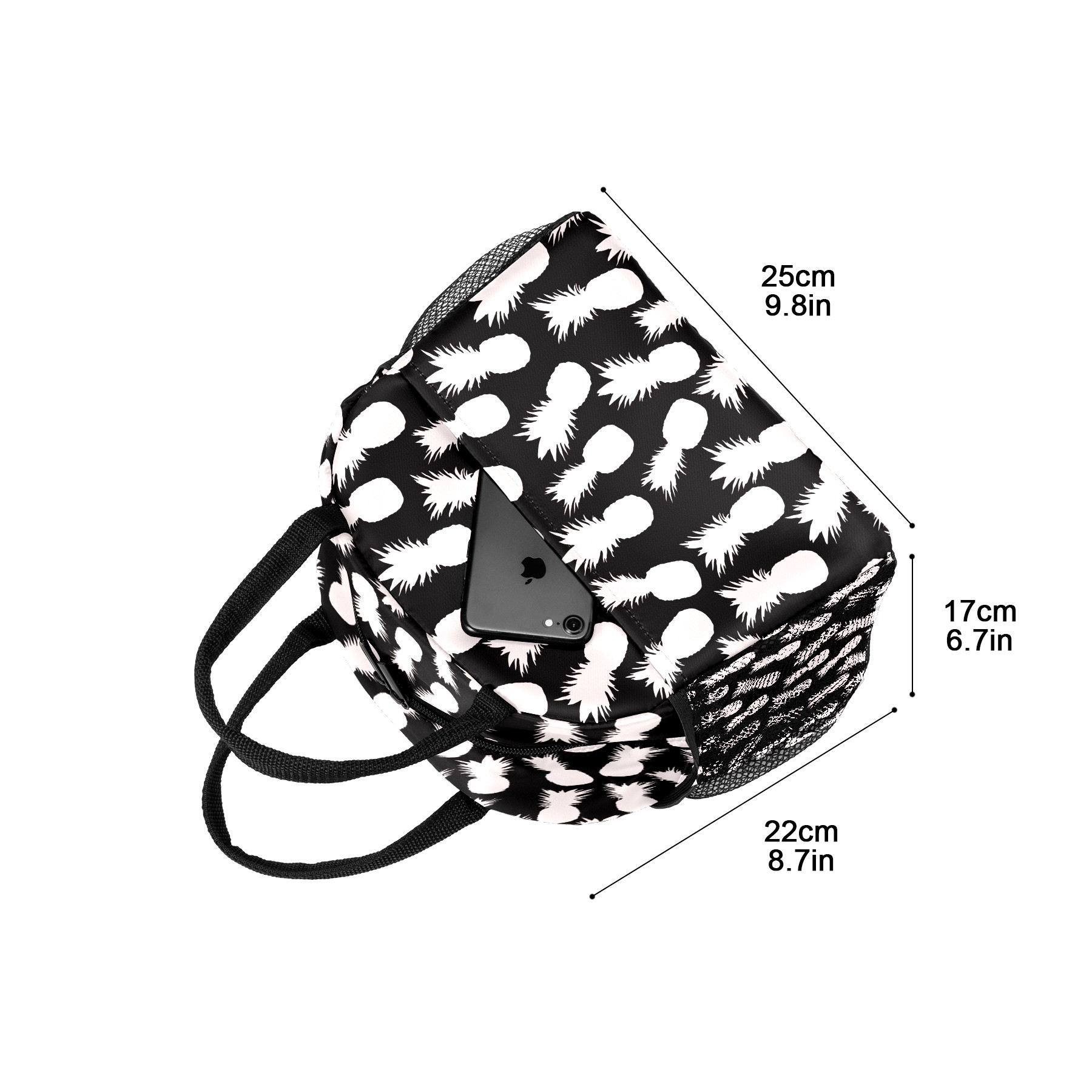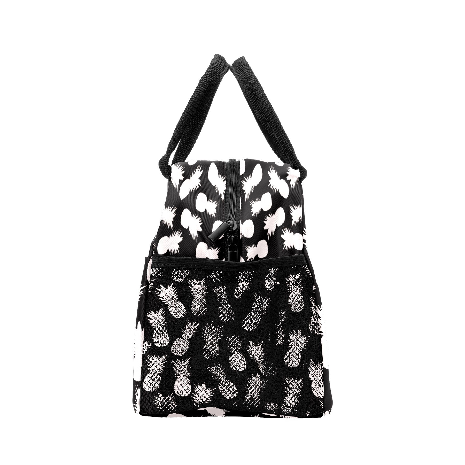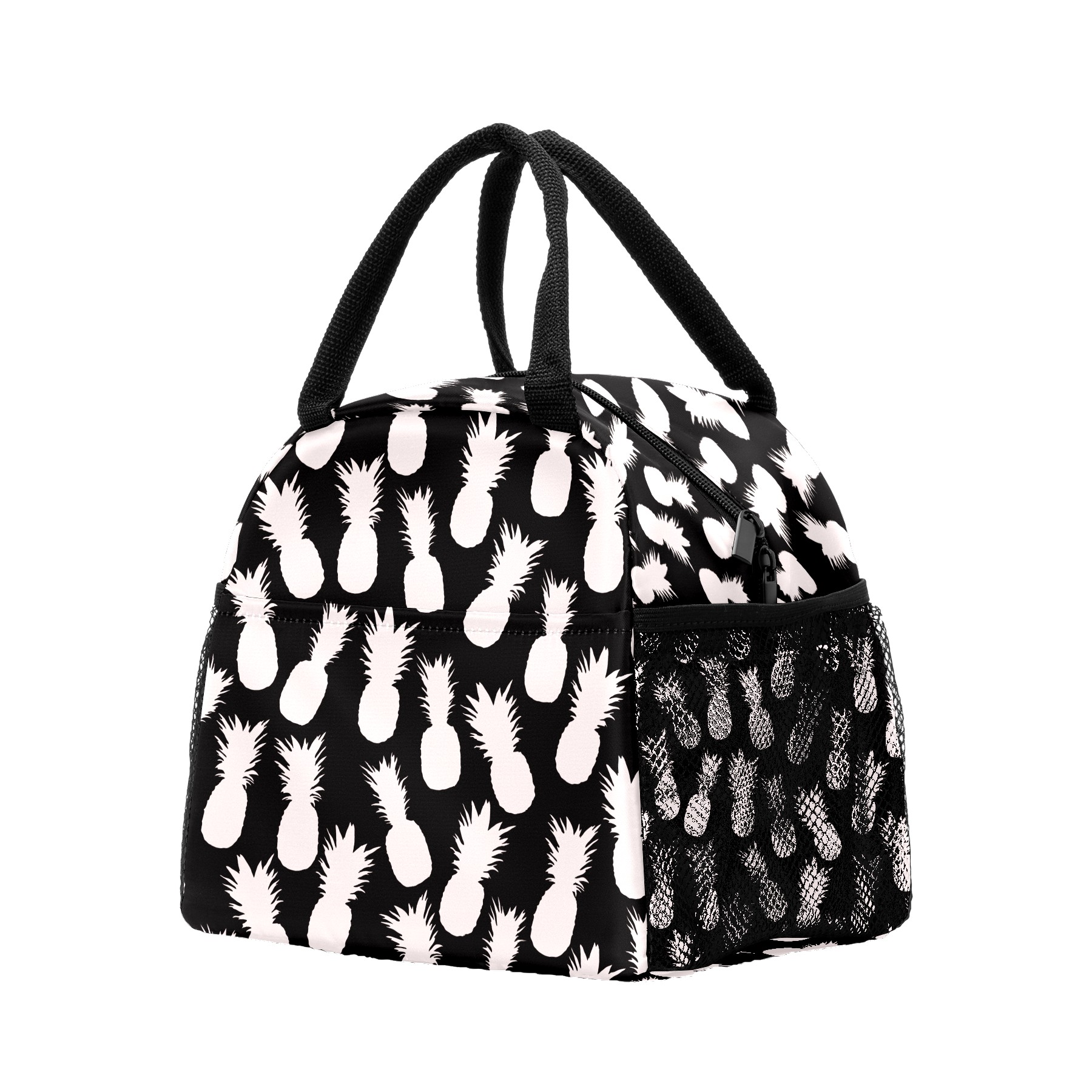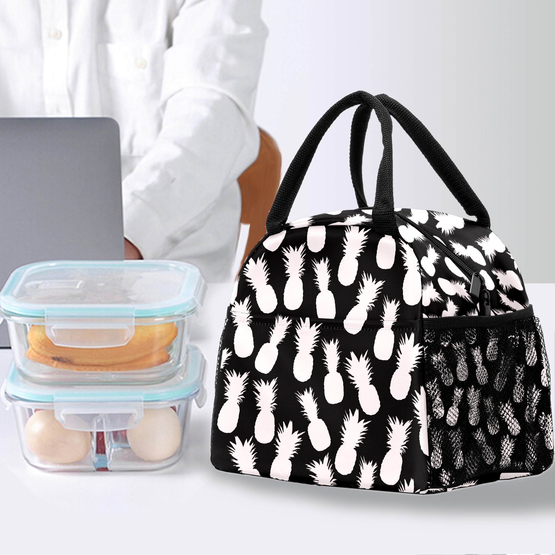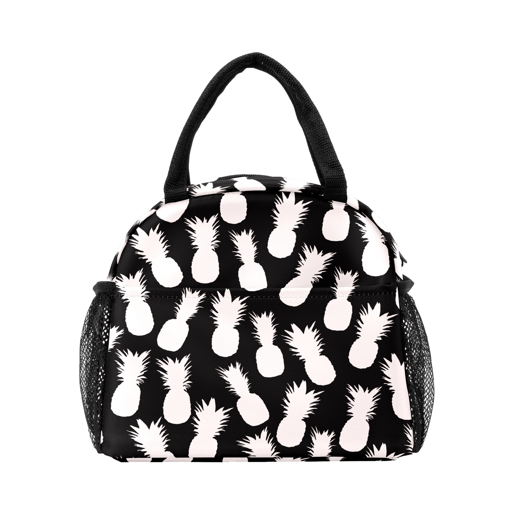 Lunch Bag for Women Men, Pineapple Black White Pattern Insulated Reusable Lunch Box Thermal Cooler Tote Bag for Work Picnic Hiking Travel Beach