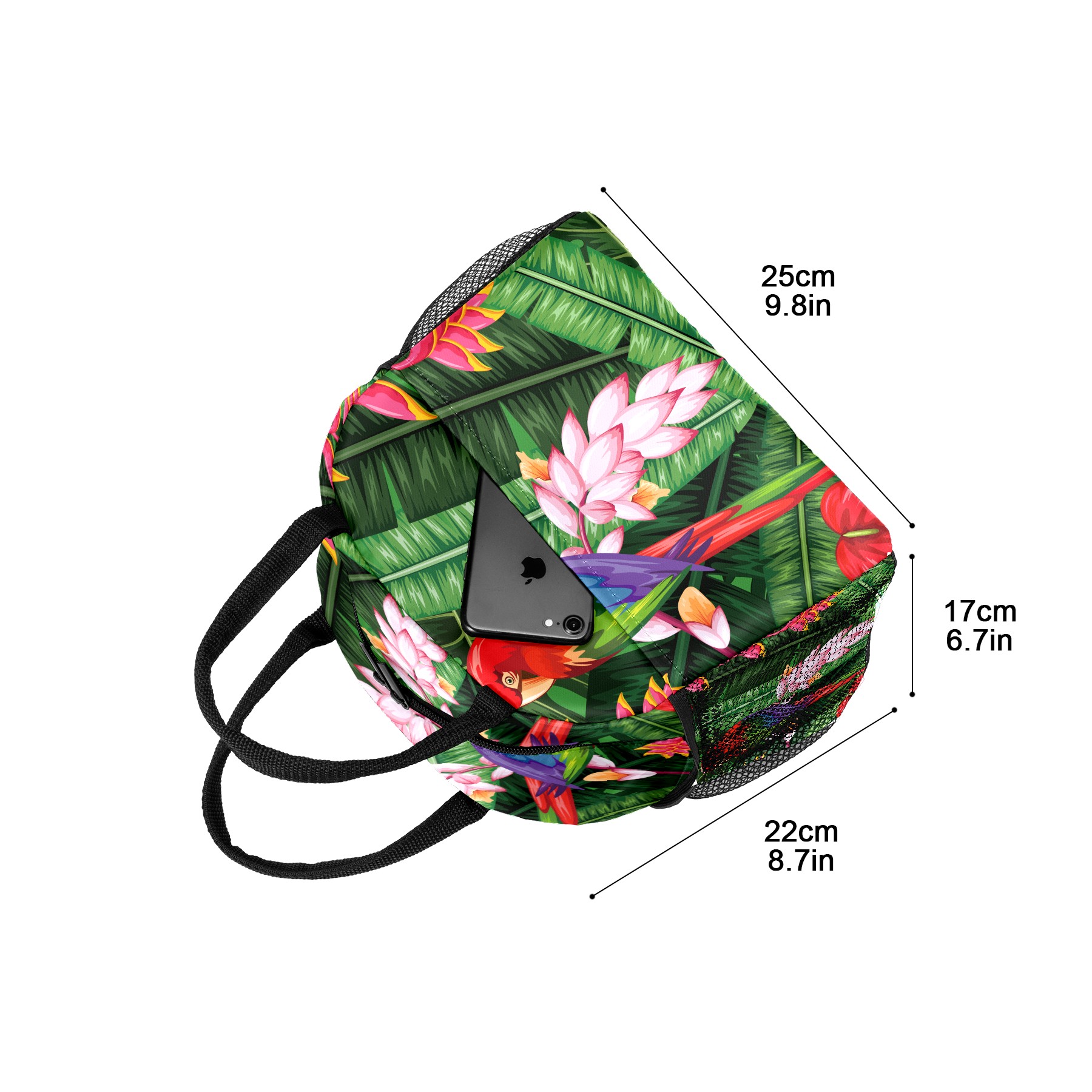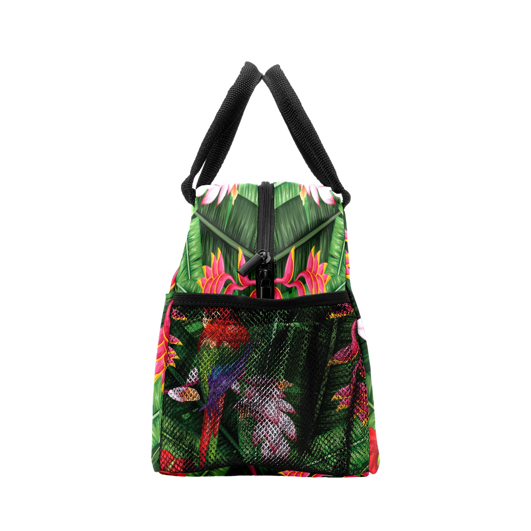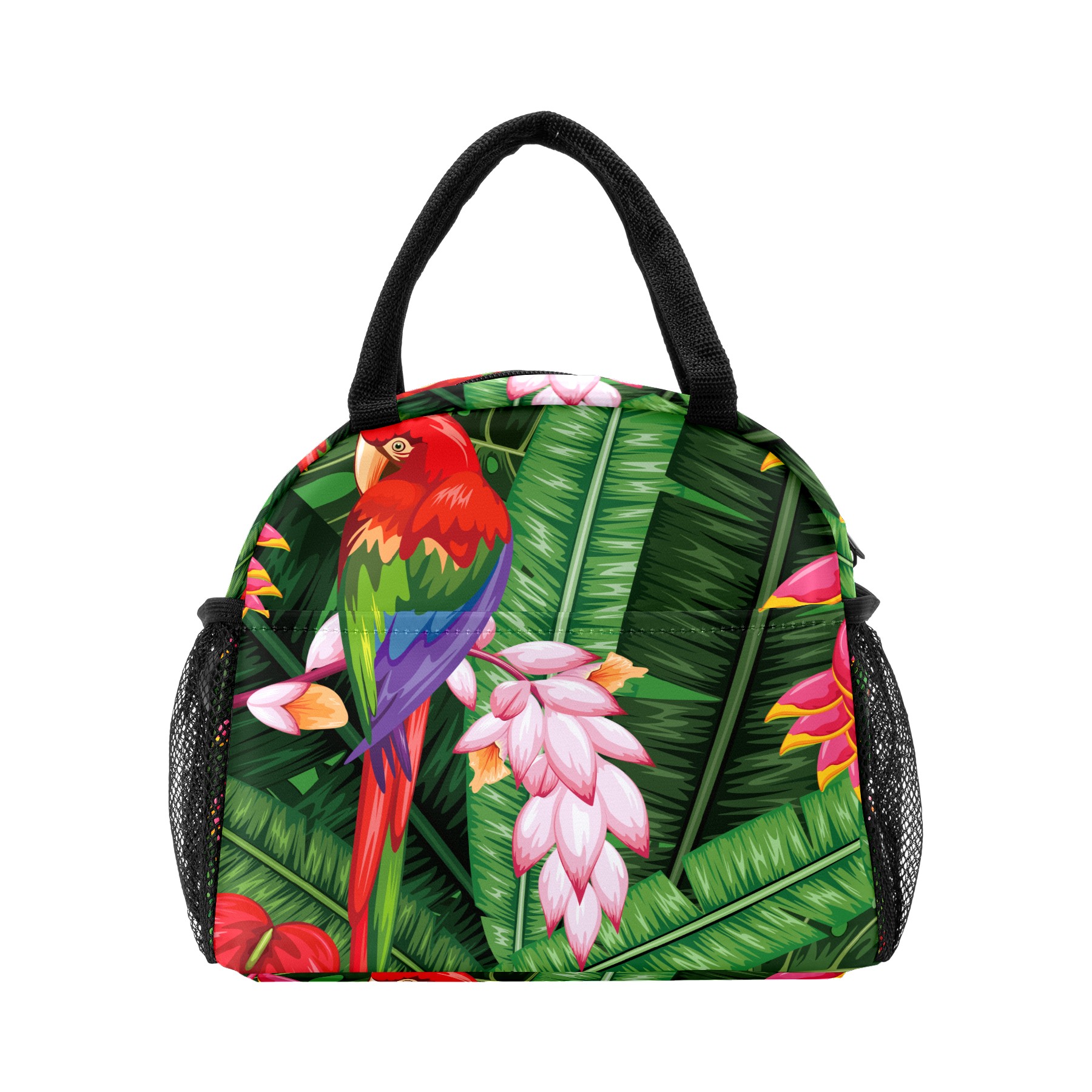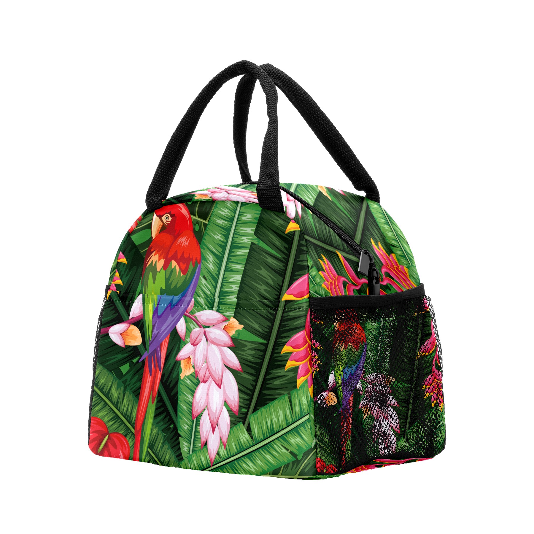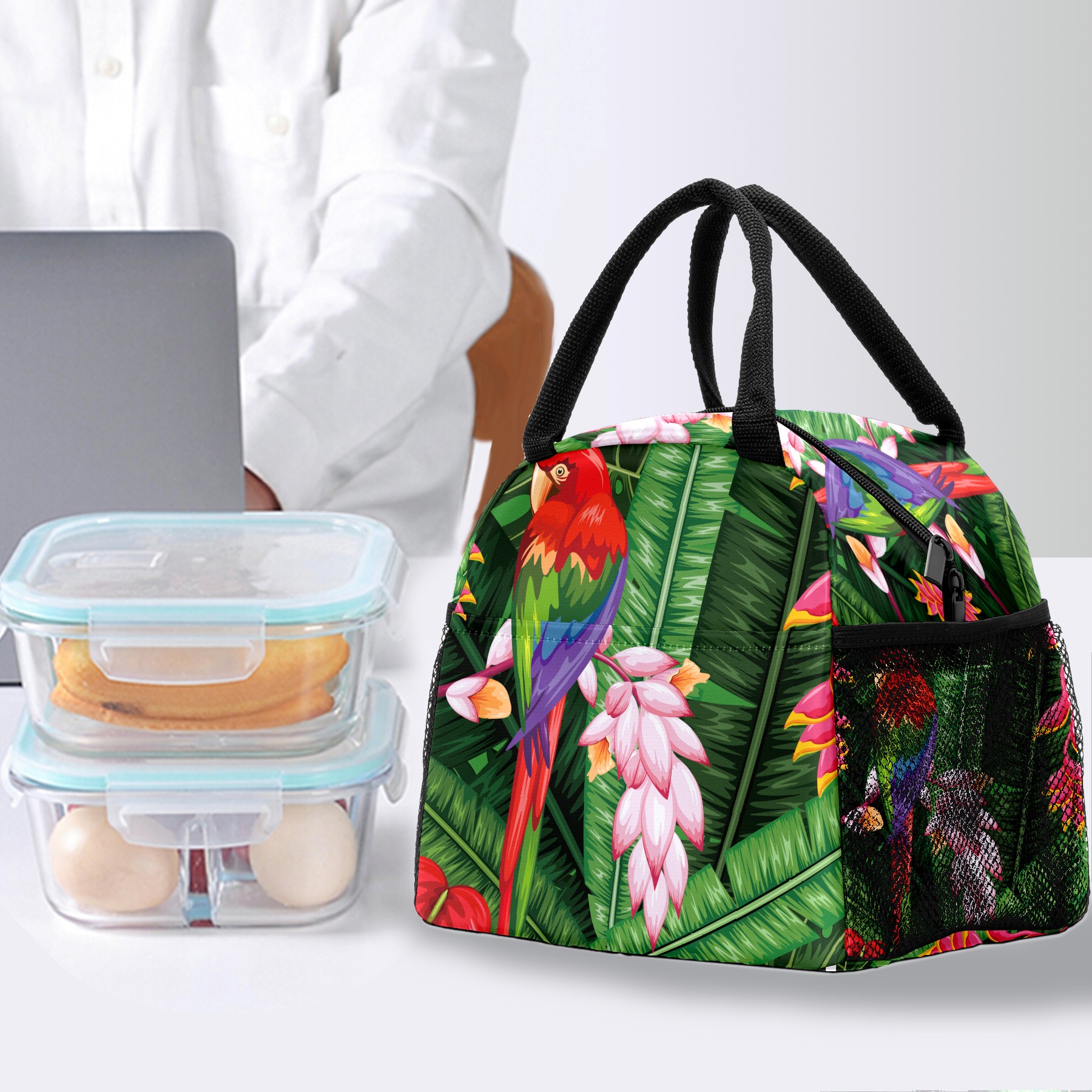 Lunch Bag for Women Men, Hello Spring Parrot Jungle Print Insulated Reusable Lunch Box Thermal Cooler Tote Bag for Work Picnic Hiking Travel Beach