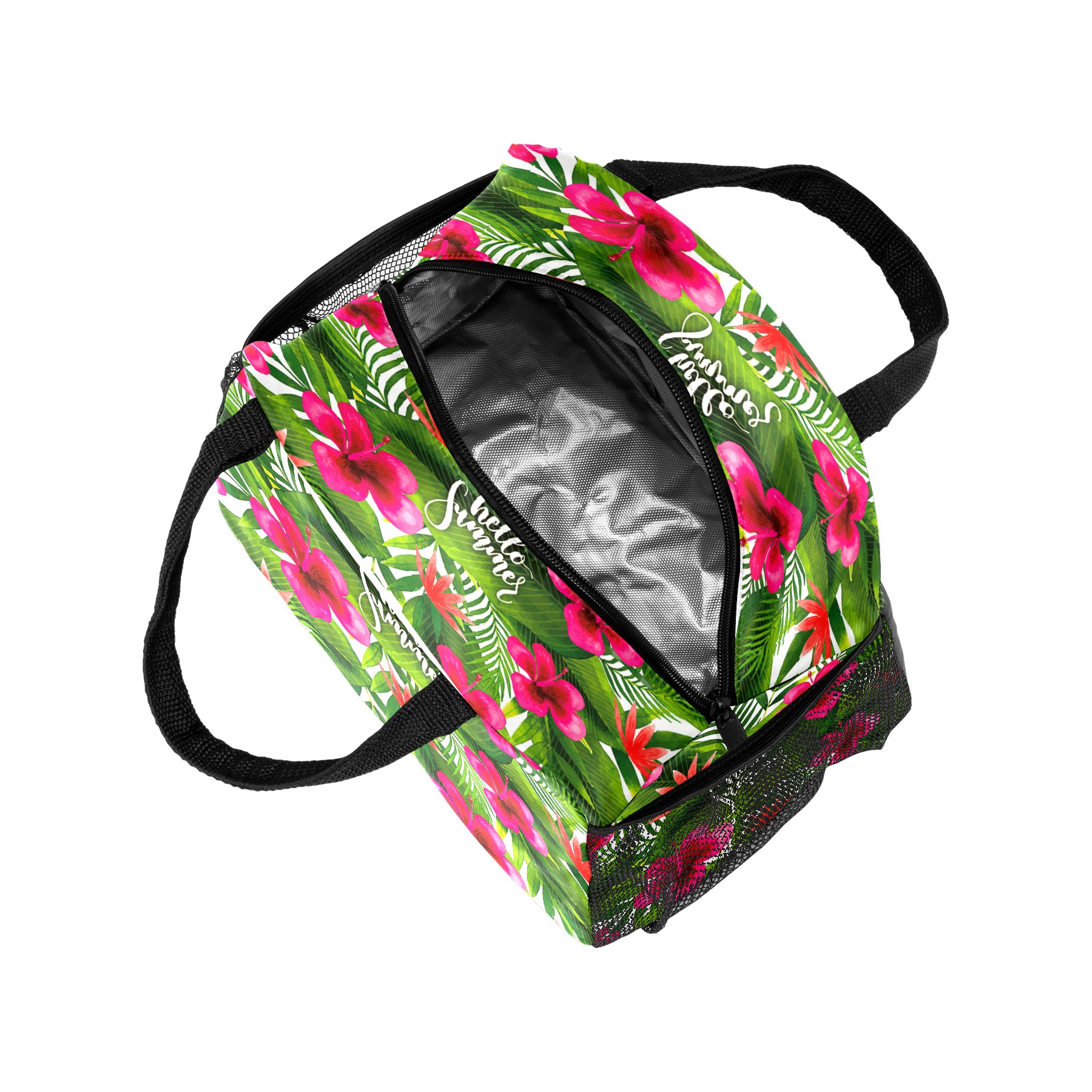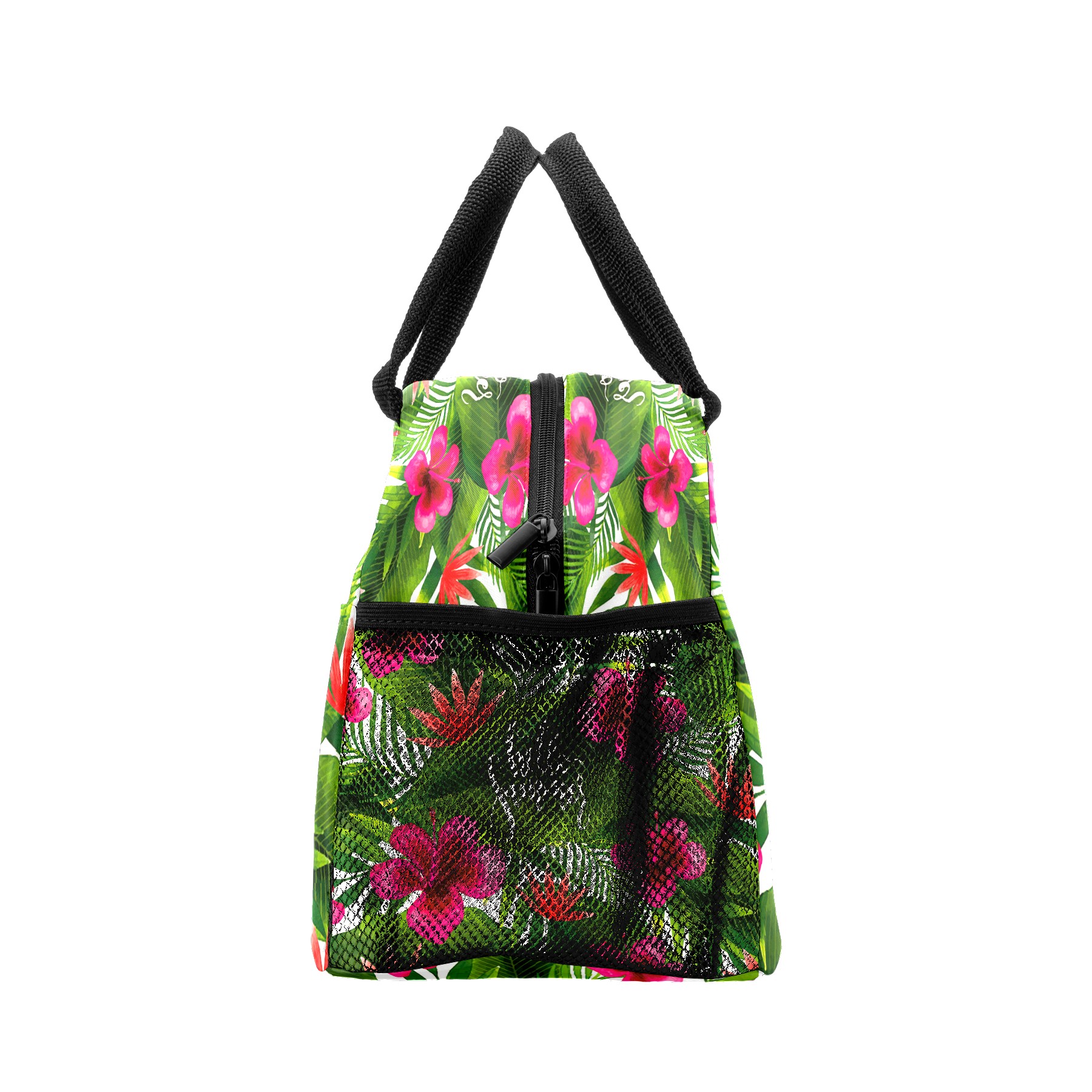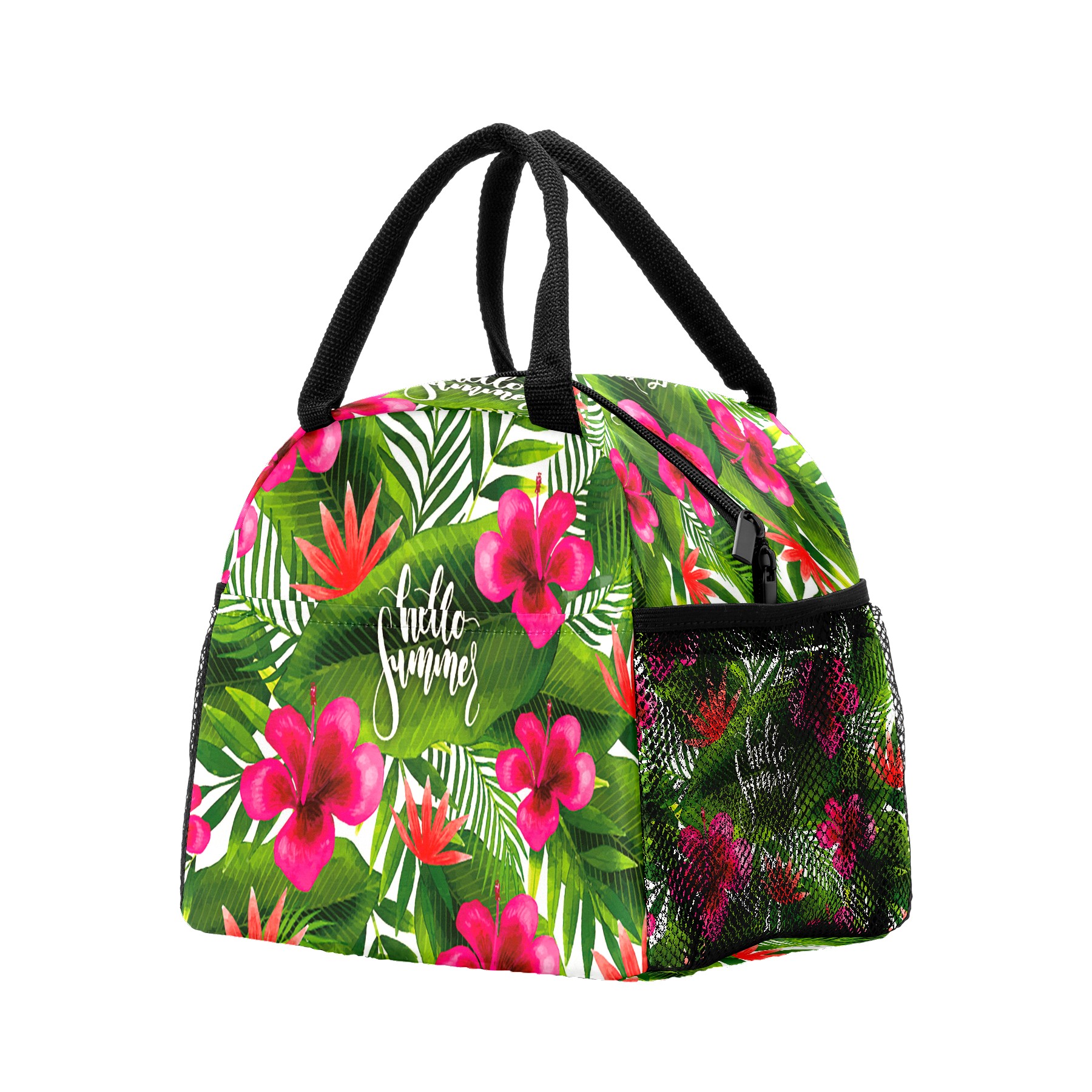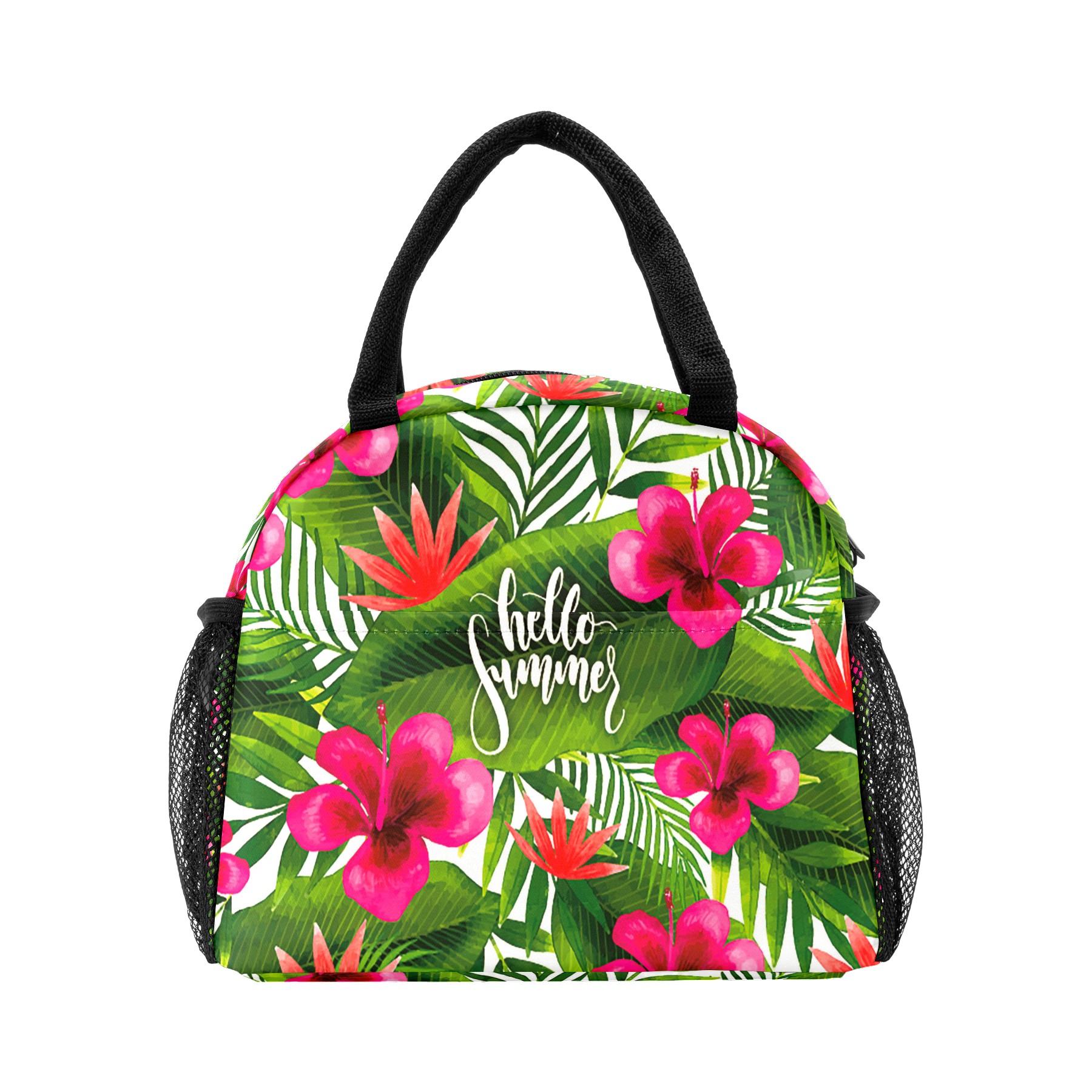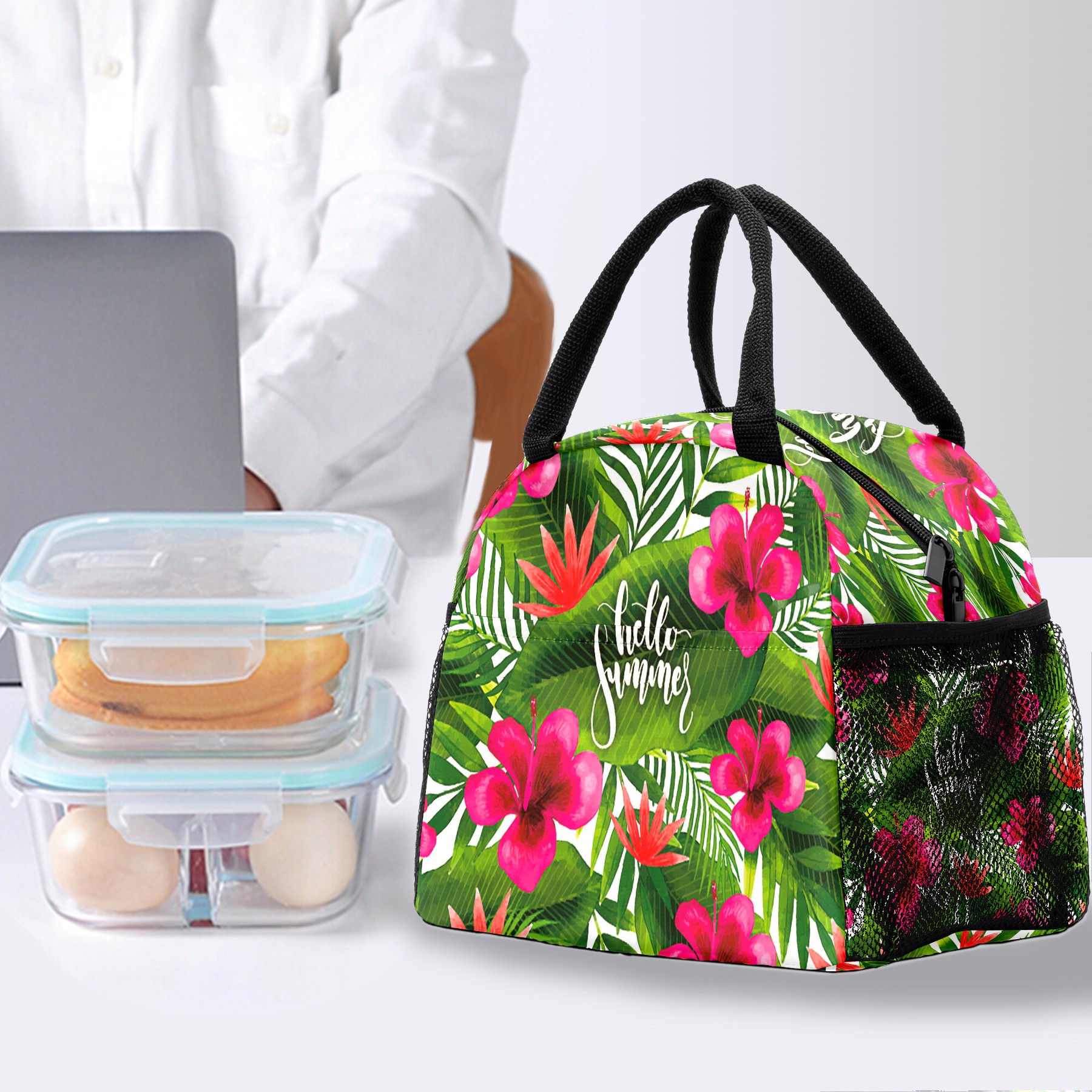 Lunch Bag for Women Men, Hello Summer Tropical Floral Palm Insulated Reusable Lunch Box Thermal Cooler Tote Bag for Work Picnic Hiking Travel Beach