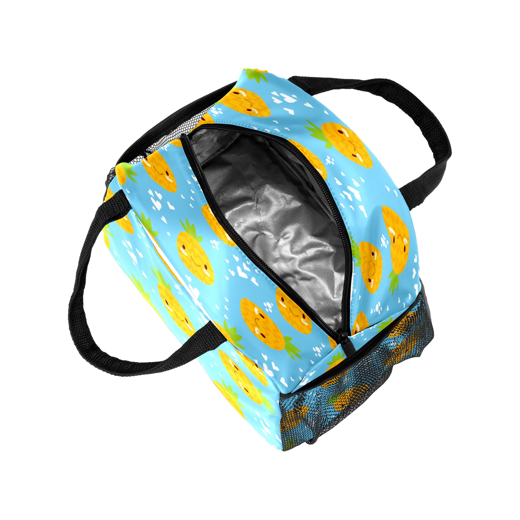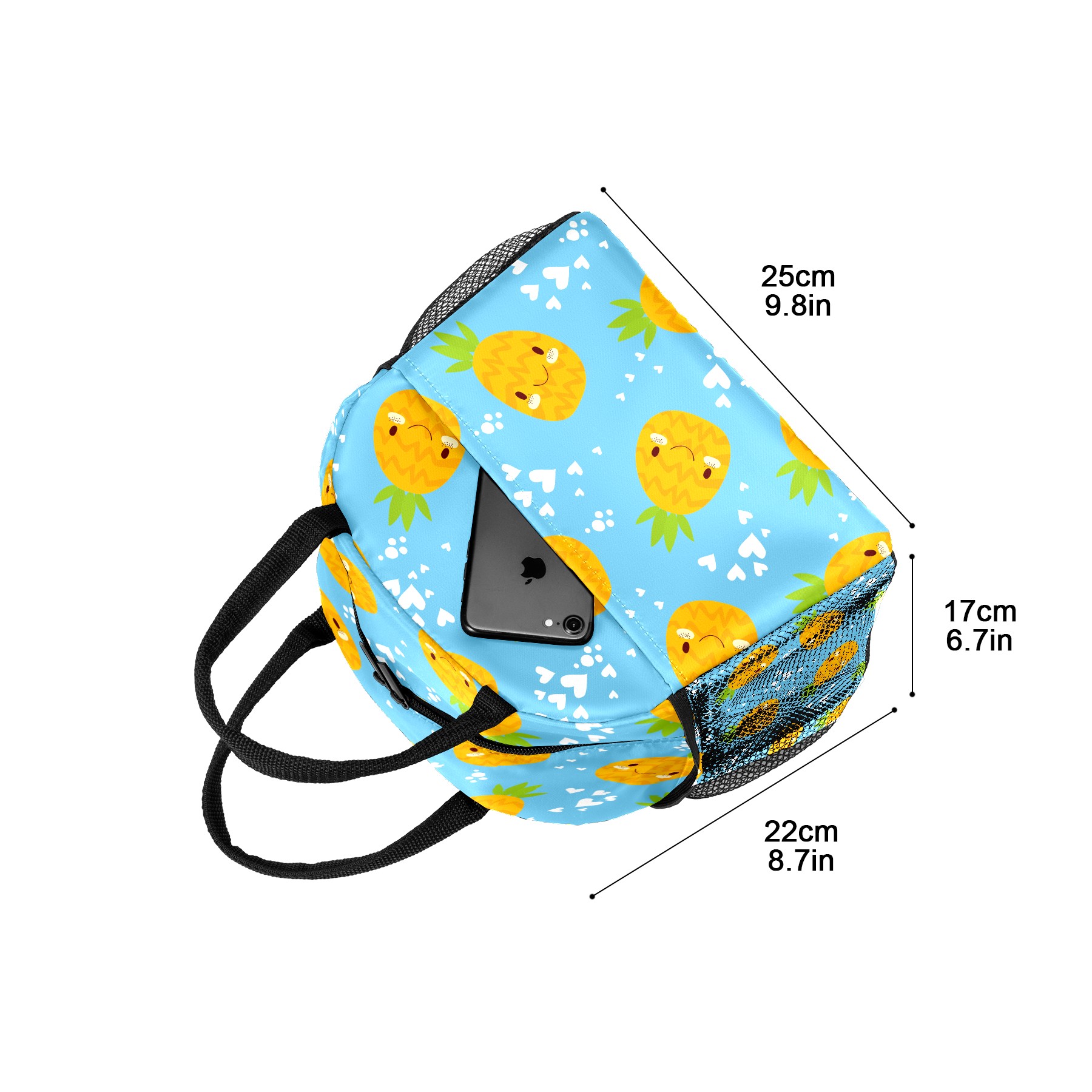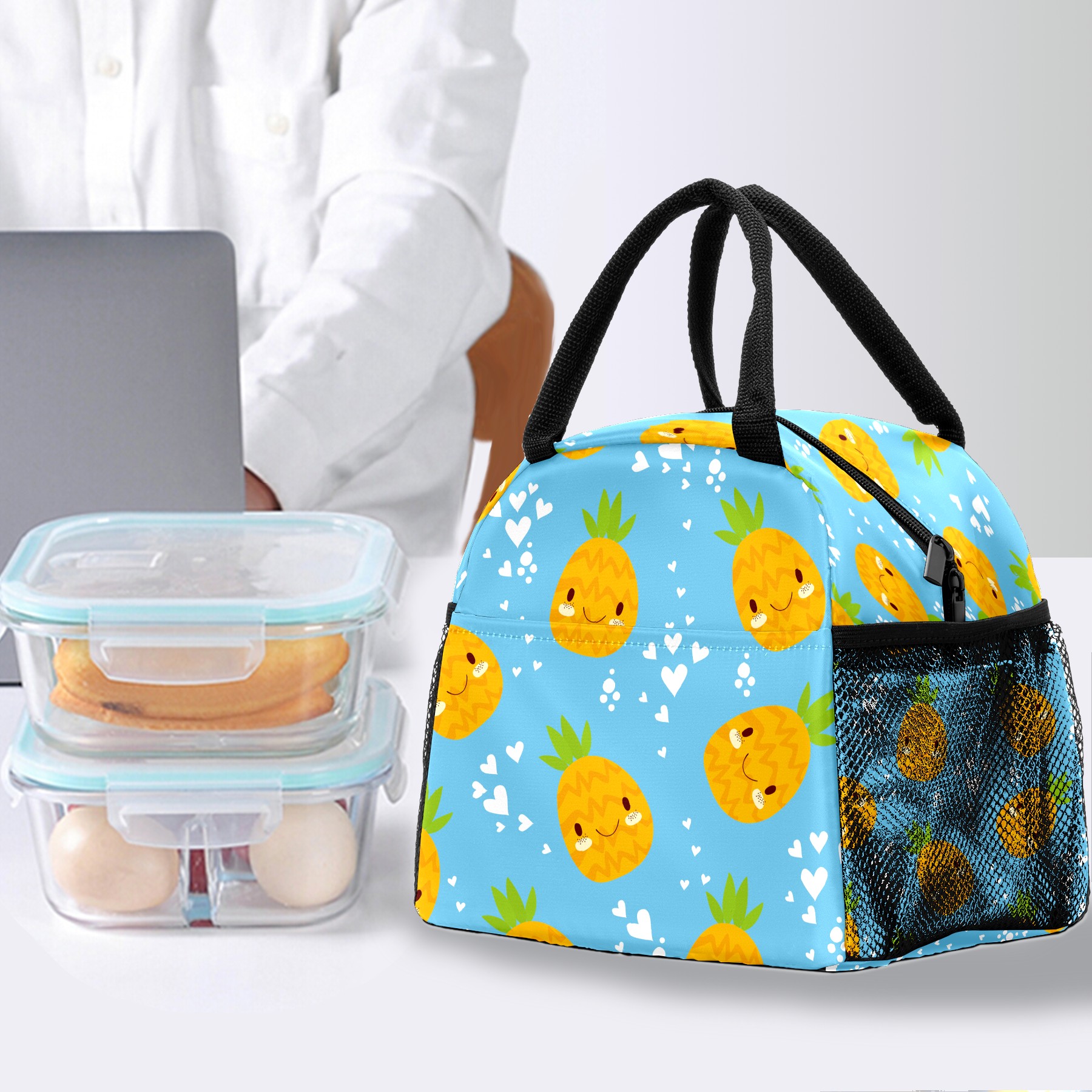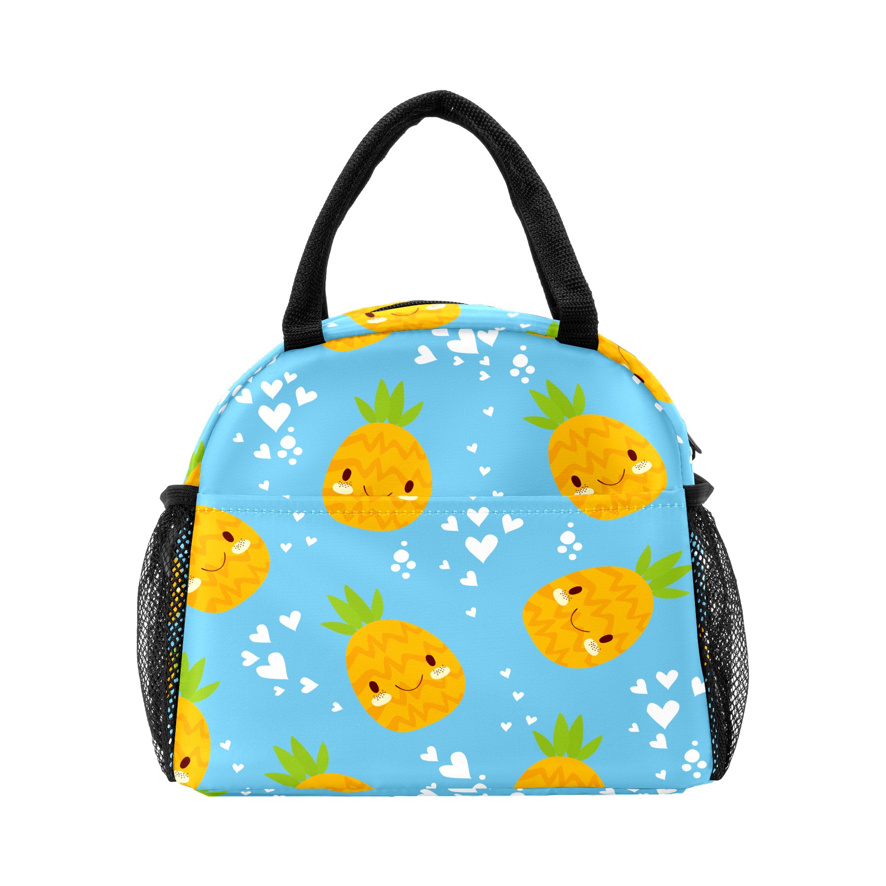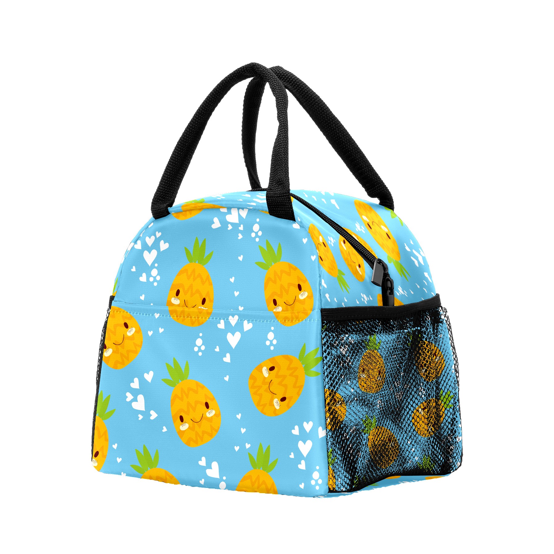 Lunch Bag for Women Men, Cute Pineapple Heart Pattern Insulated Reusable Lunch Box Thermal Cooler Tote Bag for Work Picnic Hiking Travel Beach
