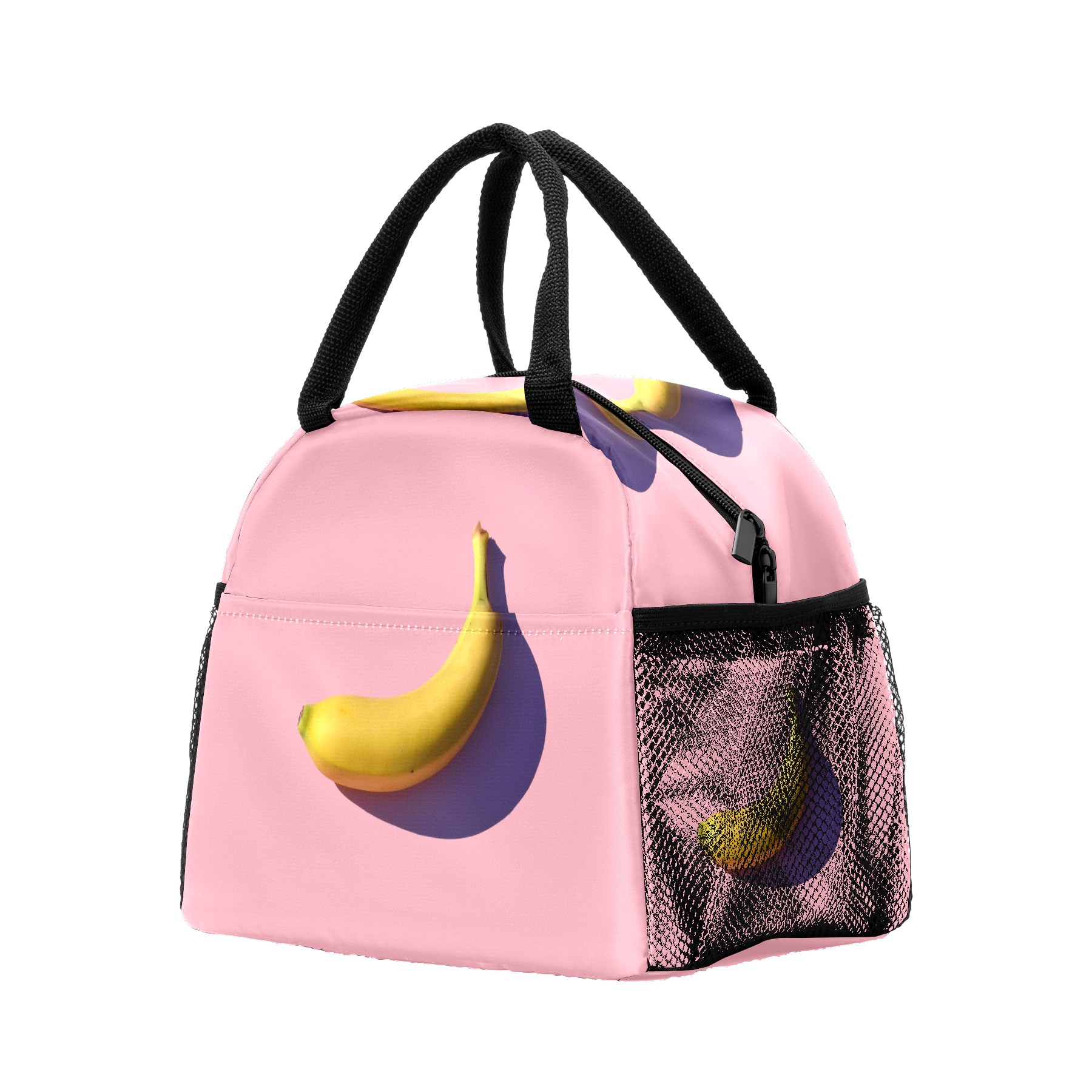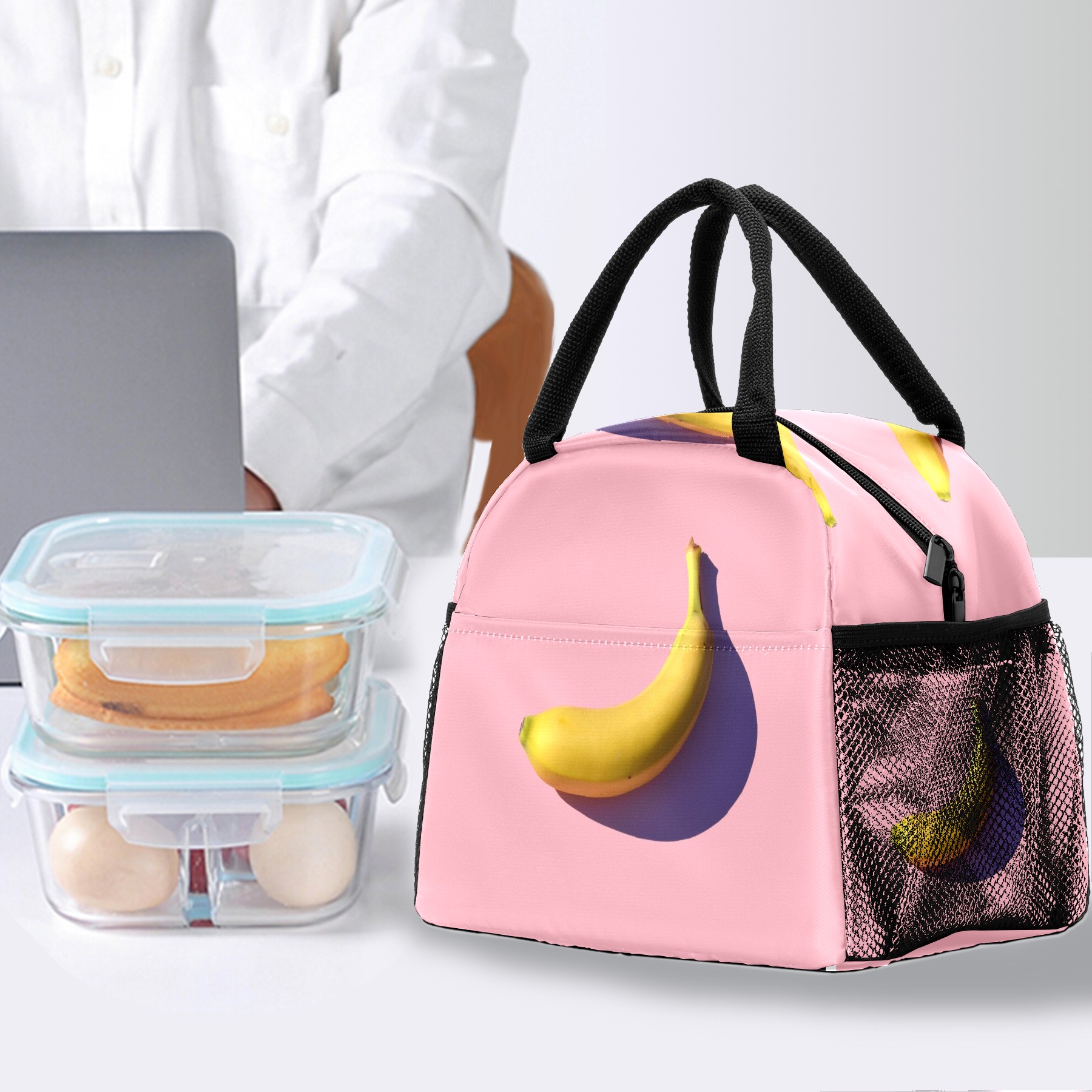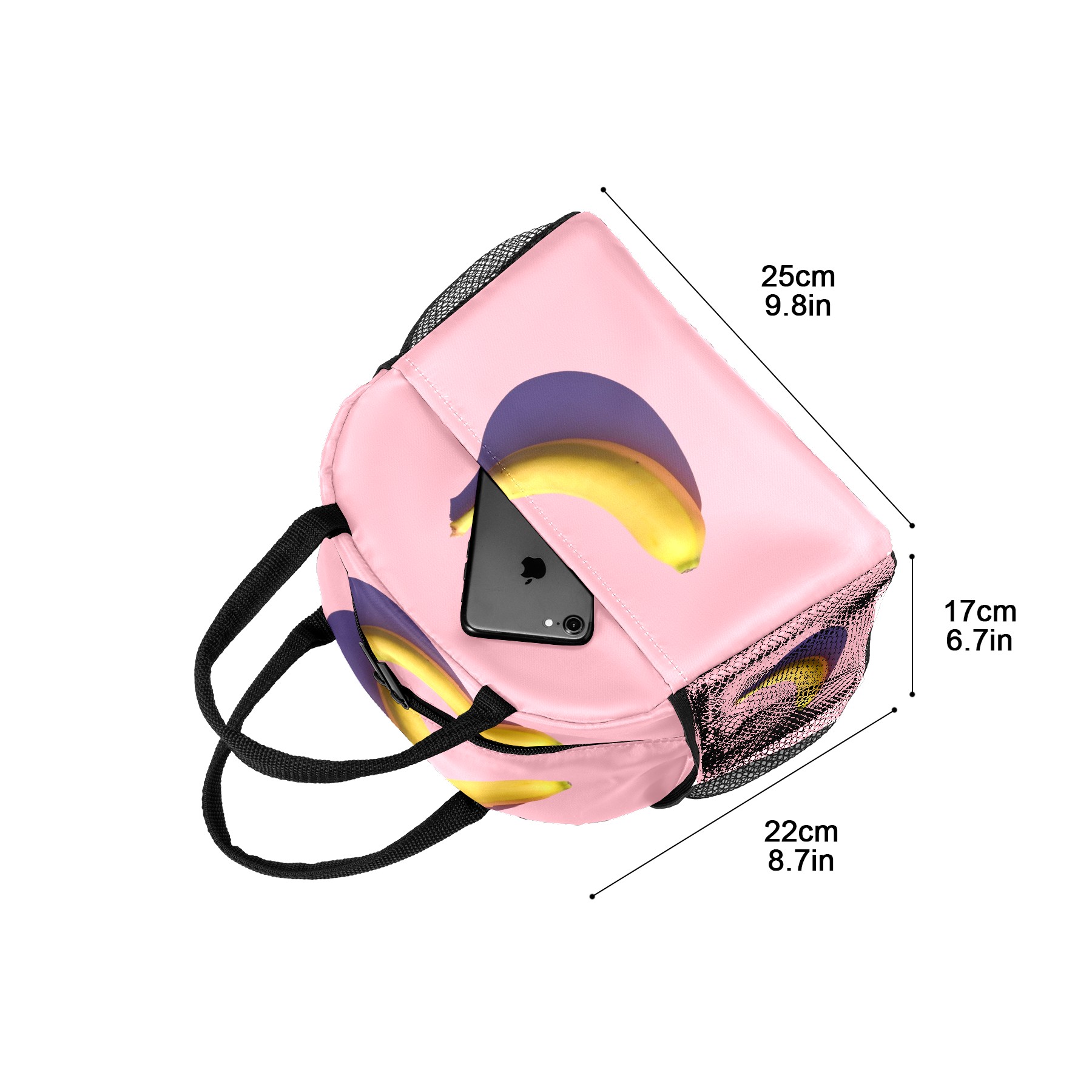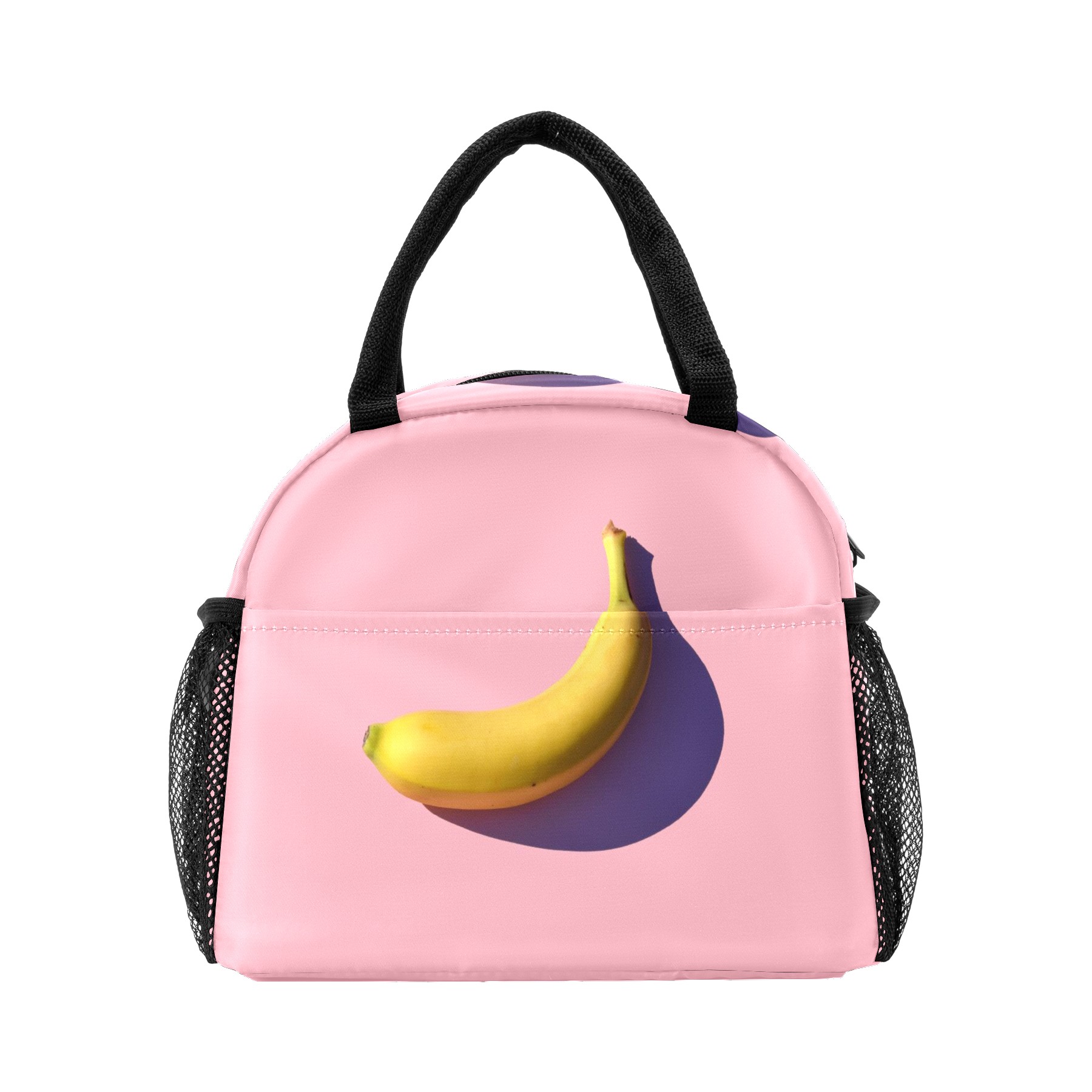 Lunch Bag for Women Men, Funny Pink Fruit Banana Insulated Reusable Lunch Box Thermal Cooler Tote Bag for Work Picnic Hiking Travel Beach