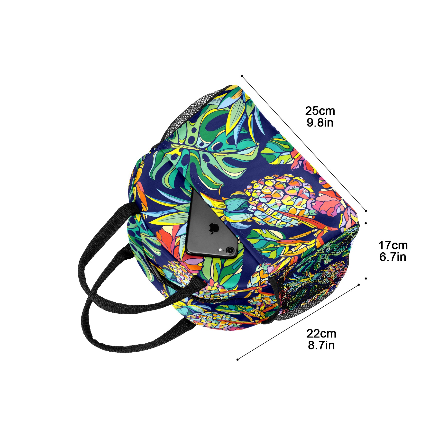 Lunch Bag for Women Men, Colorful Pineapple Palm Summer Insulated Reusable Lunch Box Thermal Cooler Tote Bag for Work Picnic Hiking Travel Beach