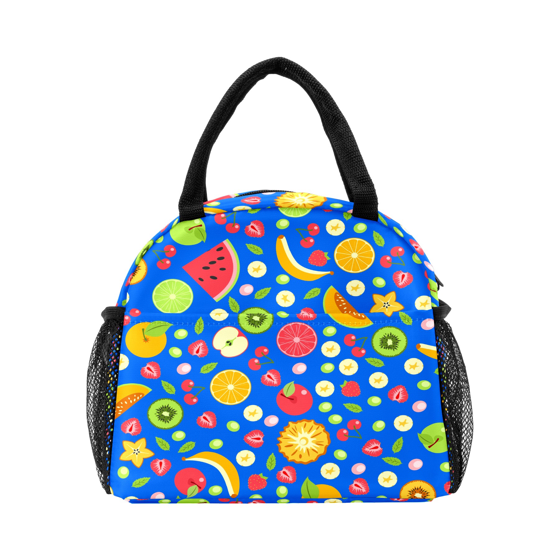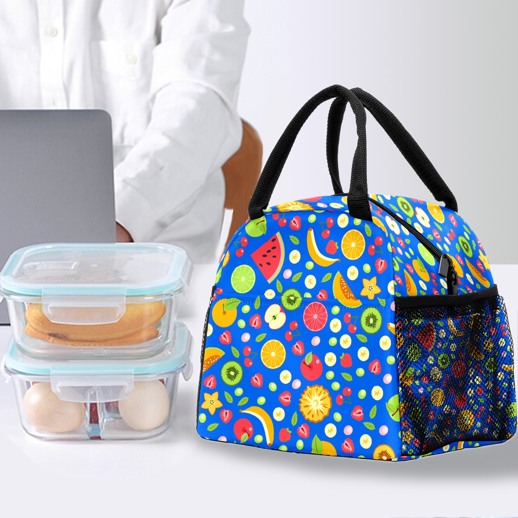 Lunch Bag for Women Men, Colorful Summer Fruits Banana Kivi Insulated Reusable Lunch Box Thermal Cooler Tote Bag for Work Picnic Hiking Travel Beach