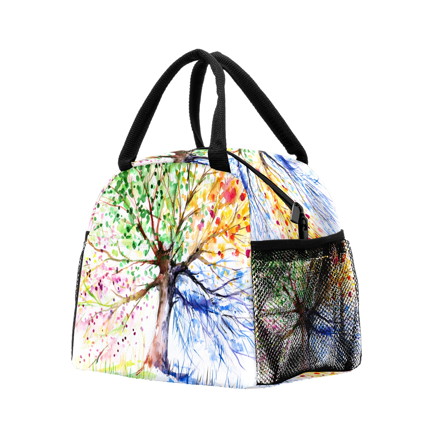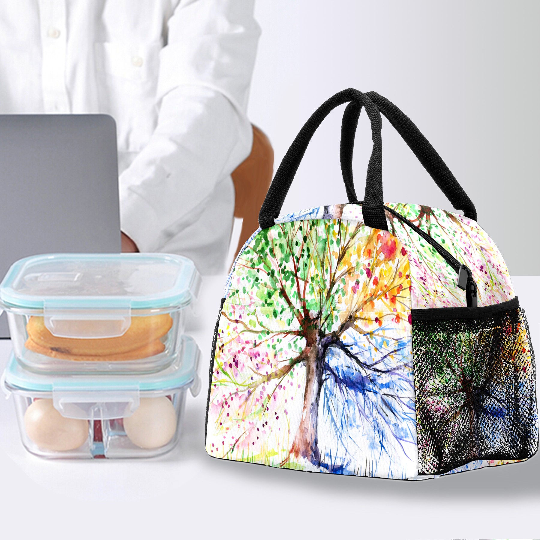 Lunch Bag for Women Men, Colorful Art Four Seasons Tree Insulated Reusable Lunch Box Thermal Cooler Tote Bag for Work Picnic Hiking Travel Beach