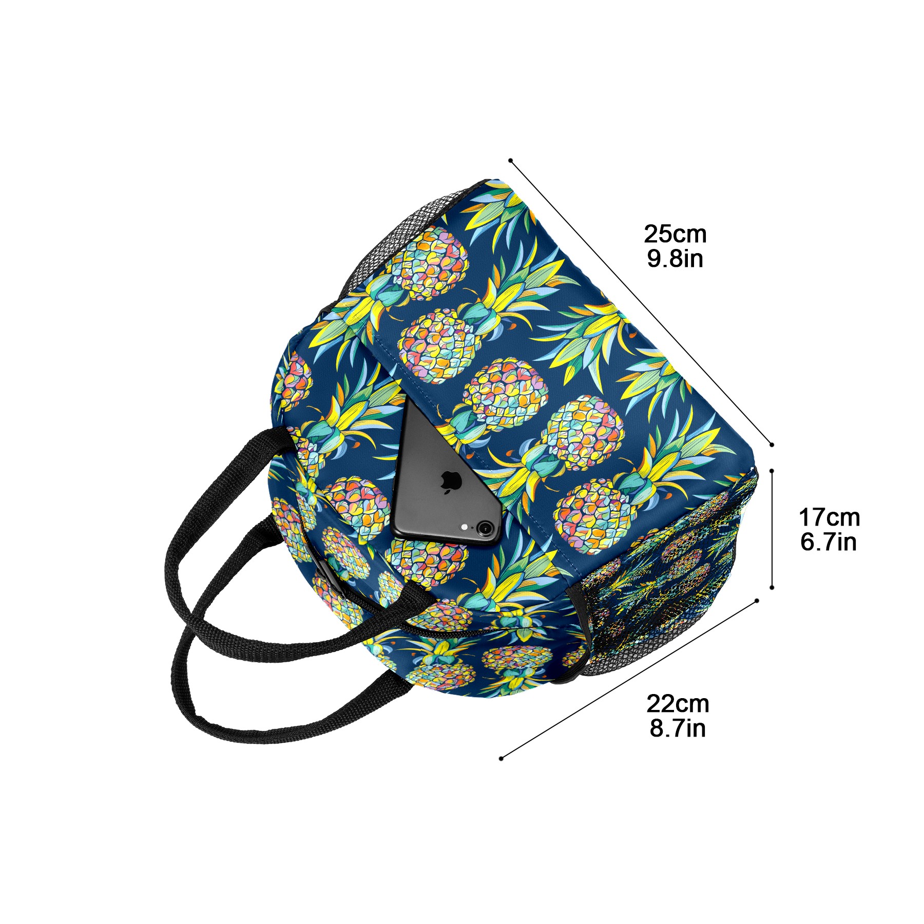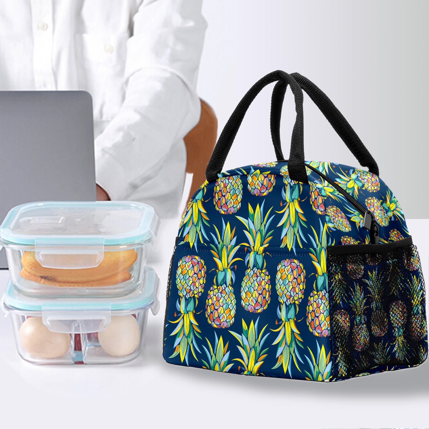 Lunch Bag for Women Men, Colorful Pineapple Fruit Pattern Insulated Reusable Lunch Box Thermal Cooler Tote Bag for Work Picnic Hiking Travel Beach