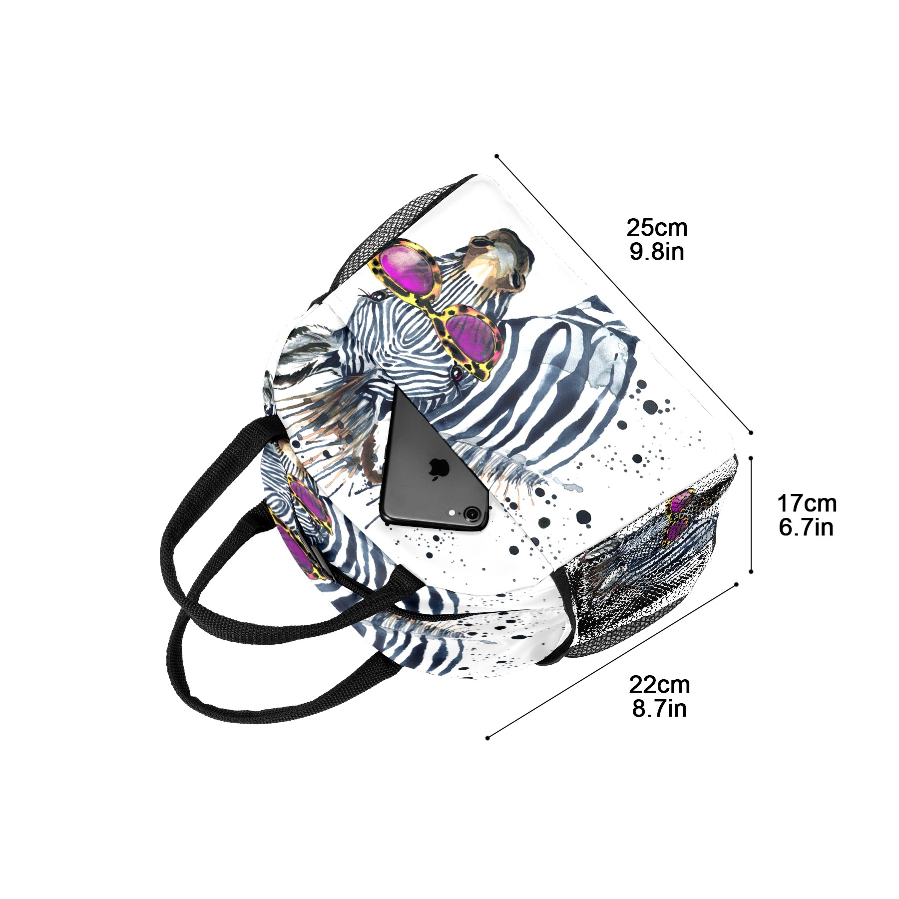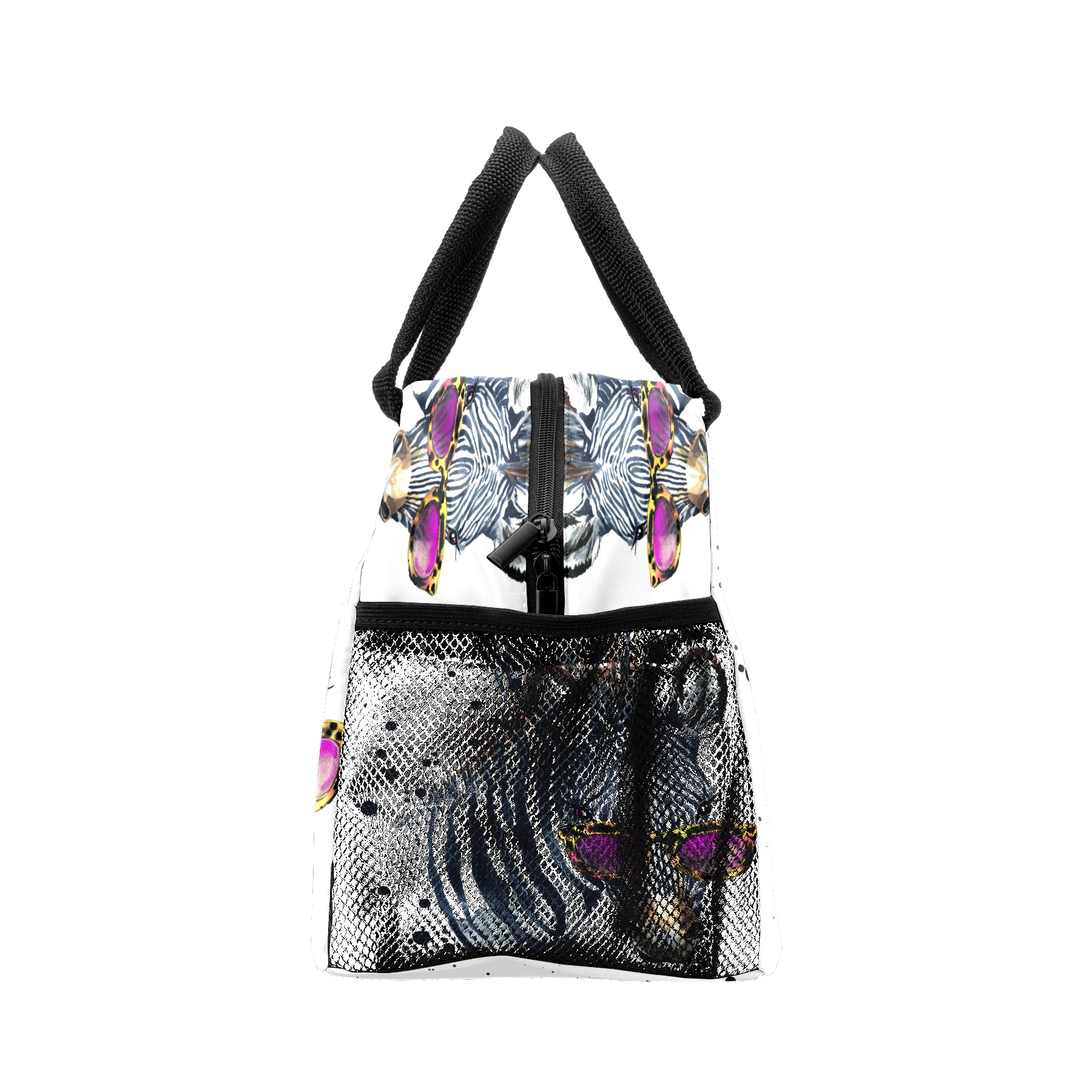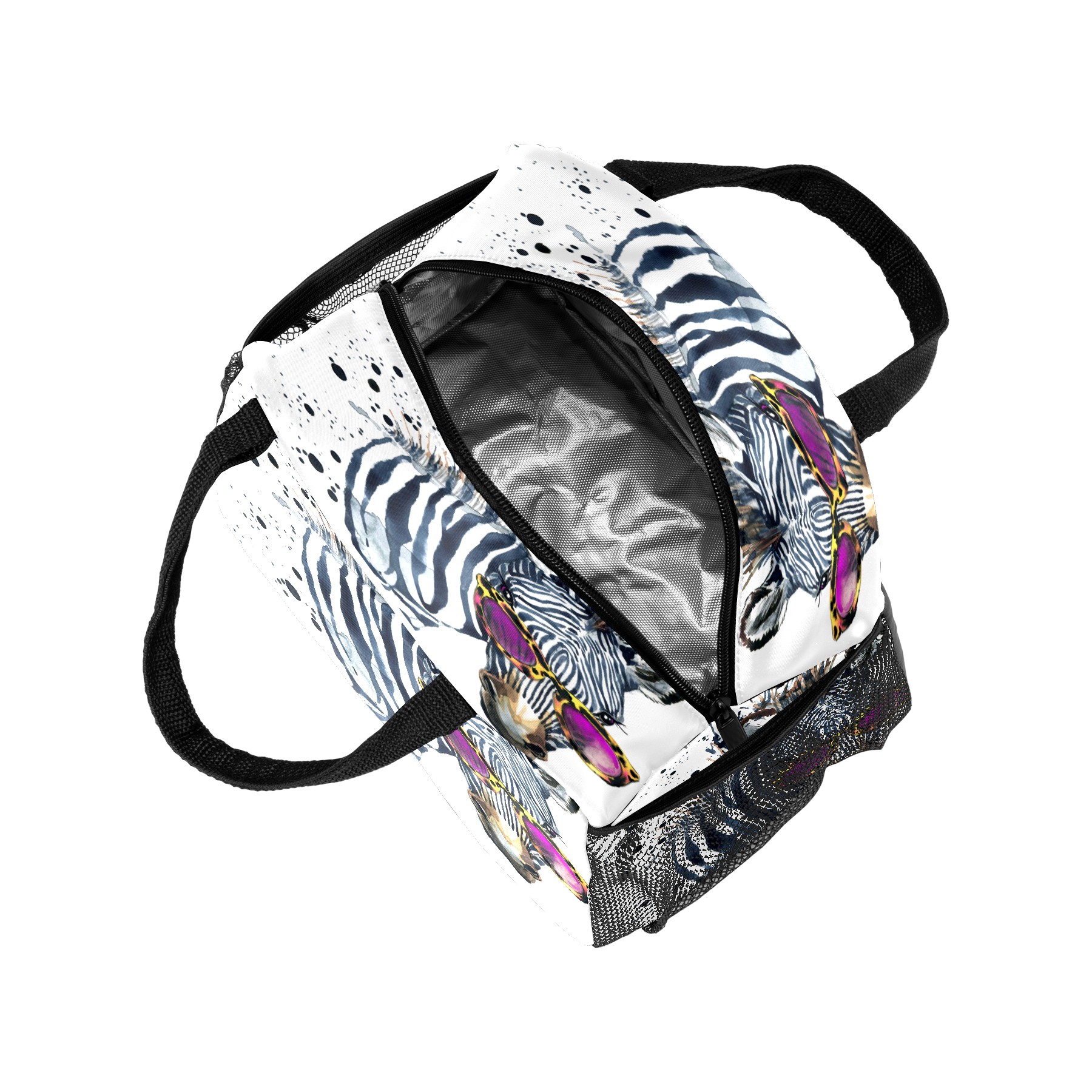 Lunch Bag for Women Men, Watercolor Hipster Zebra With Glasses Insulated Reusable Lunch Box Thermal Cooler Tote Bag for Work Picnic Hiking Travel Beach