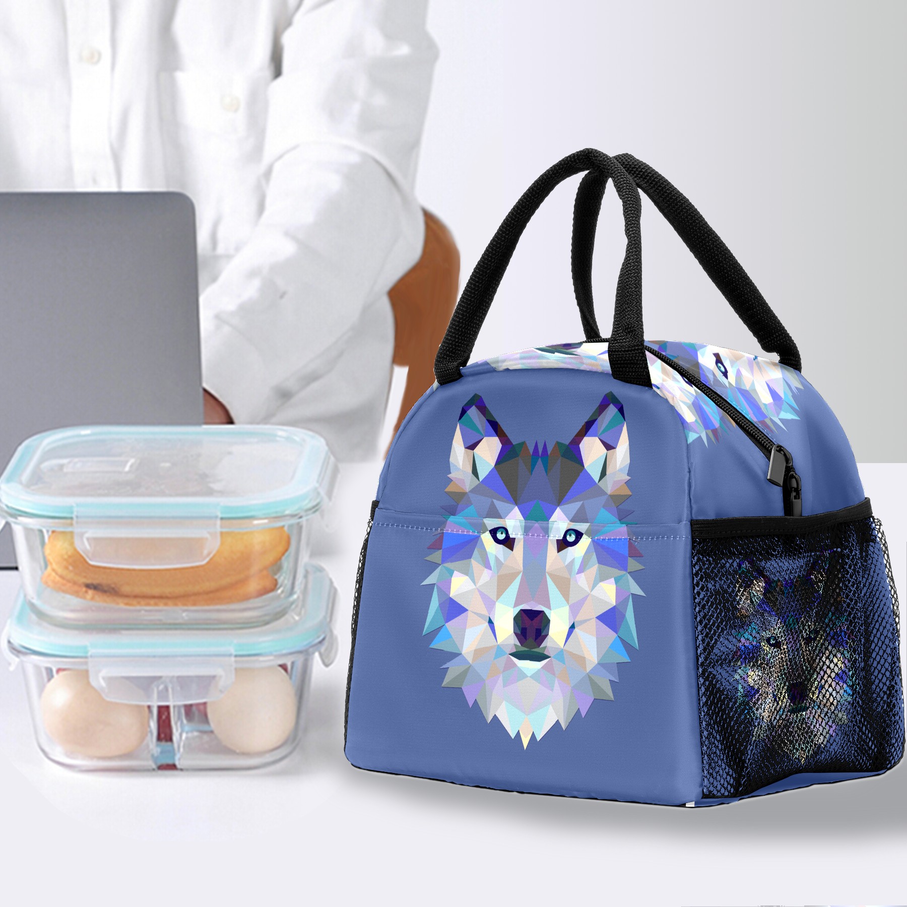 Lunch Bag for Women Men, Wolf Hipster Insulated Reusable Lunch Box Thermal Cooler Tote Bag for Work Picnic Hiking Travel Beach