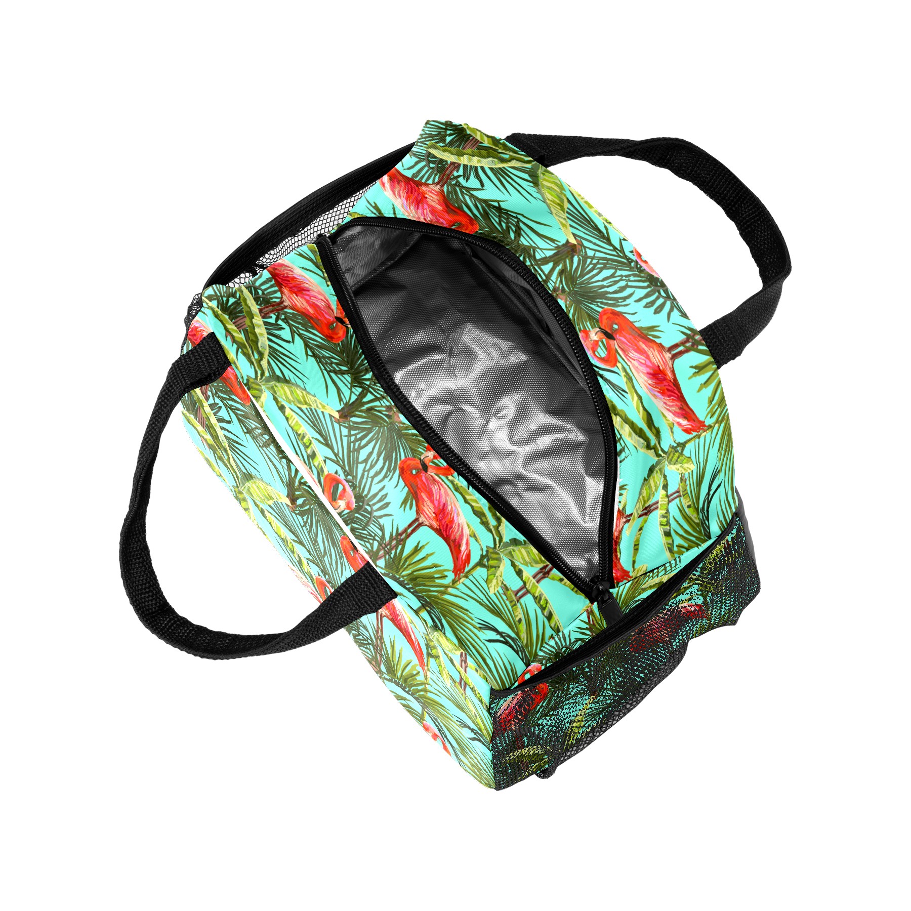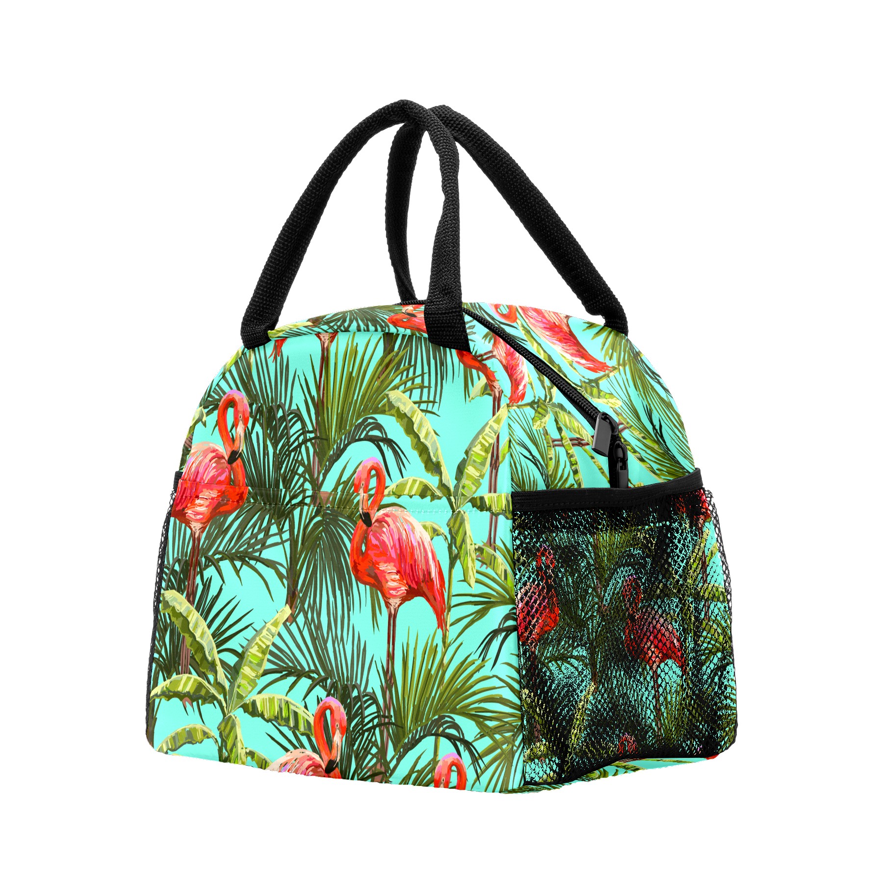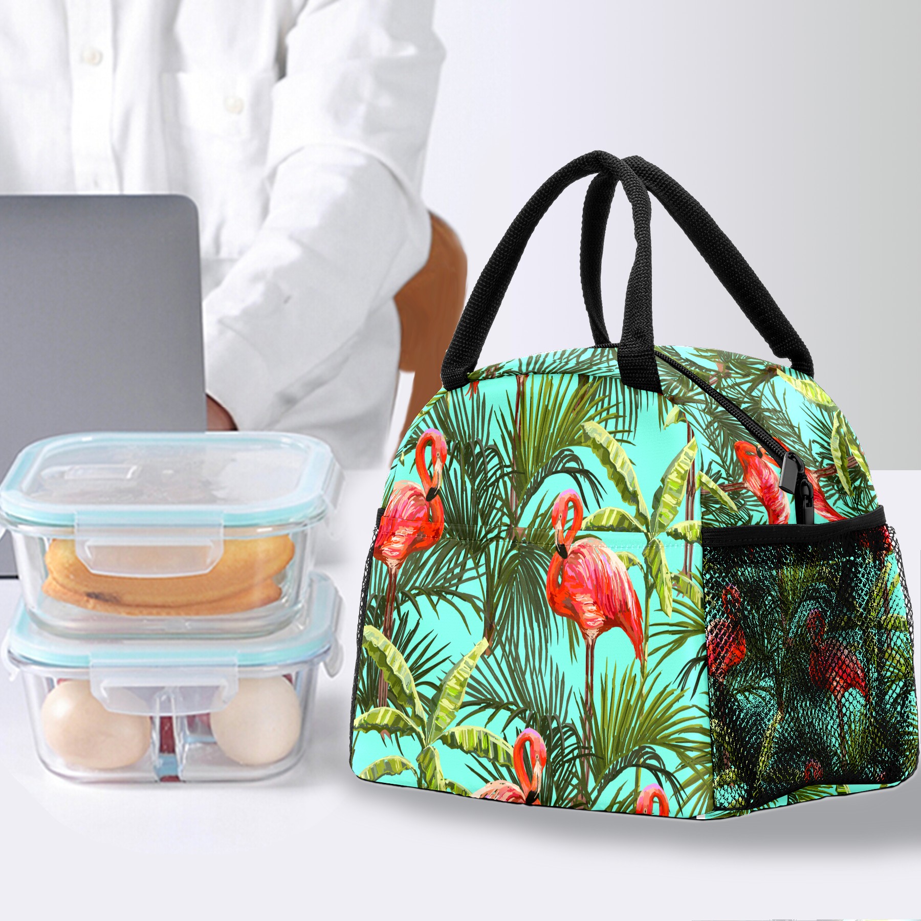 Lunch Bag for Women Men, Tropiacal Flamingo Green Leaves Insulated Reusable Lunch Box Thermal Cooler Tote Bag for Work Picnic Hiking Travel Beach