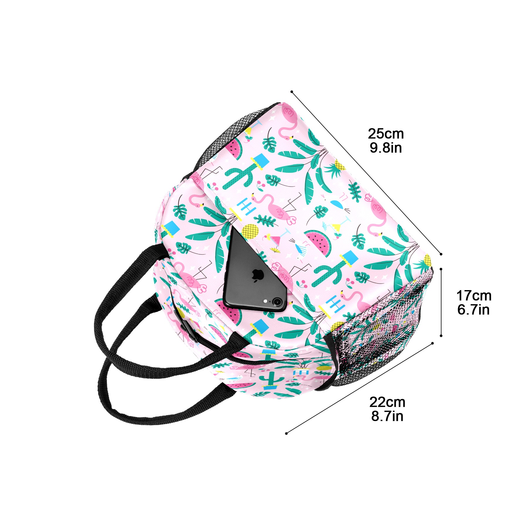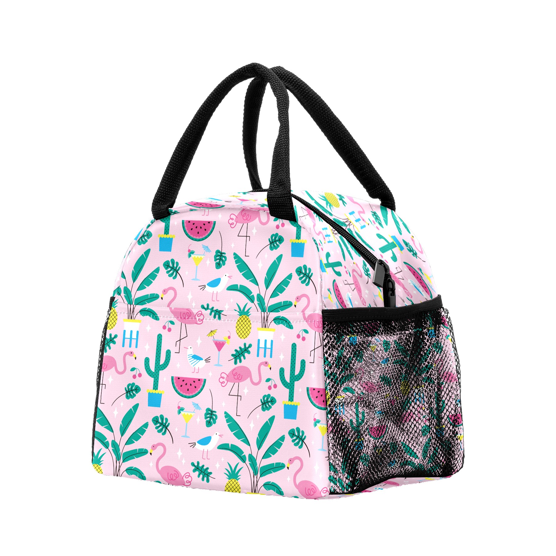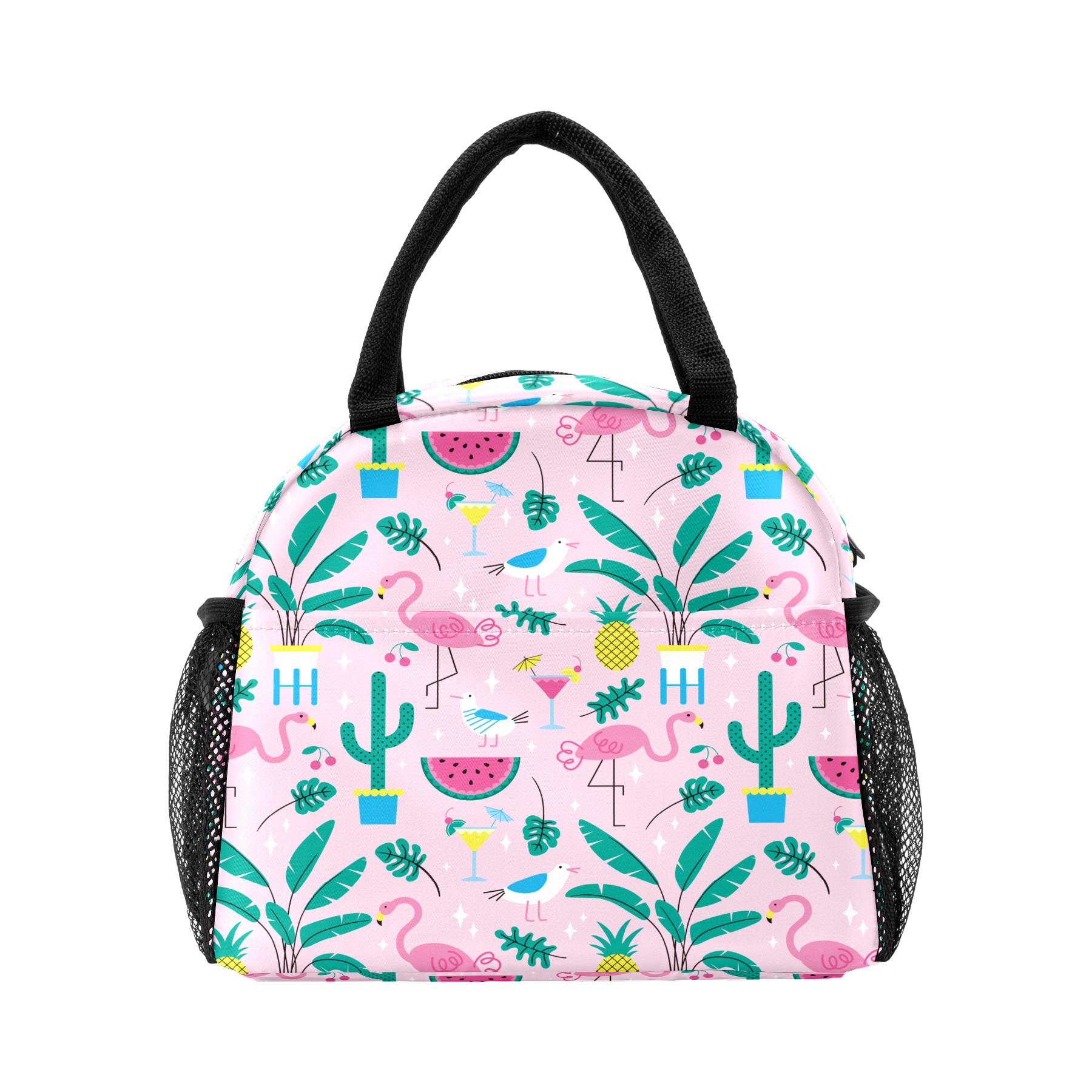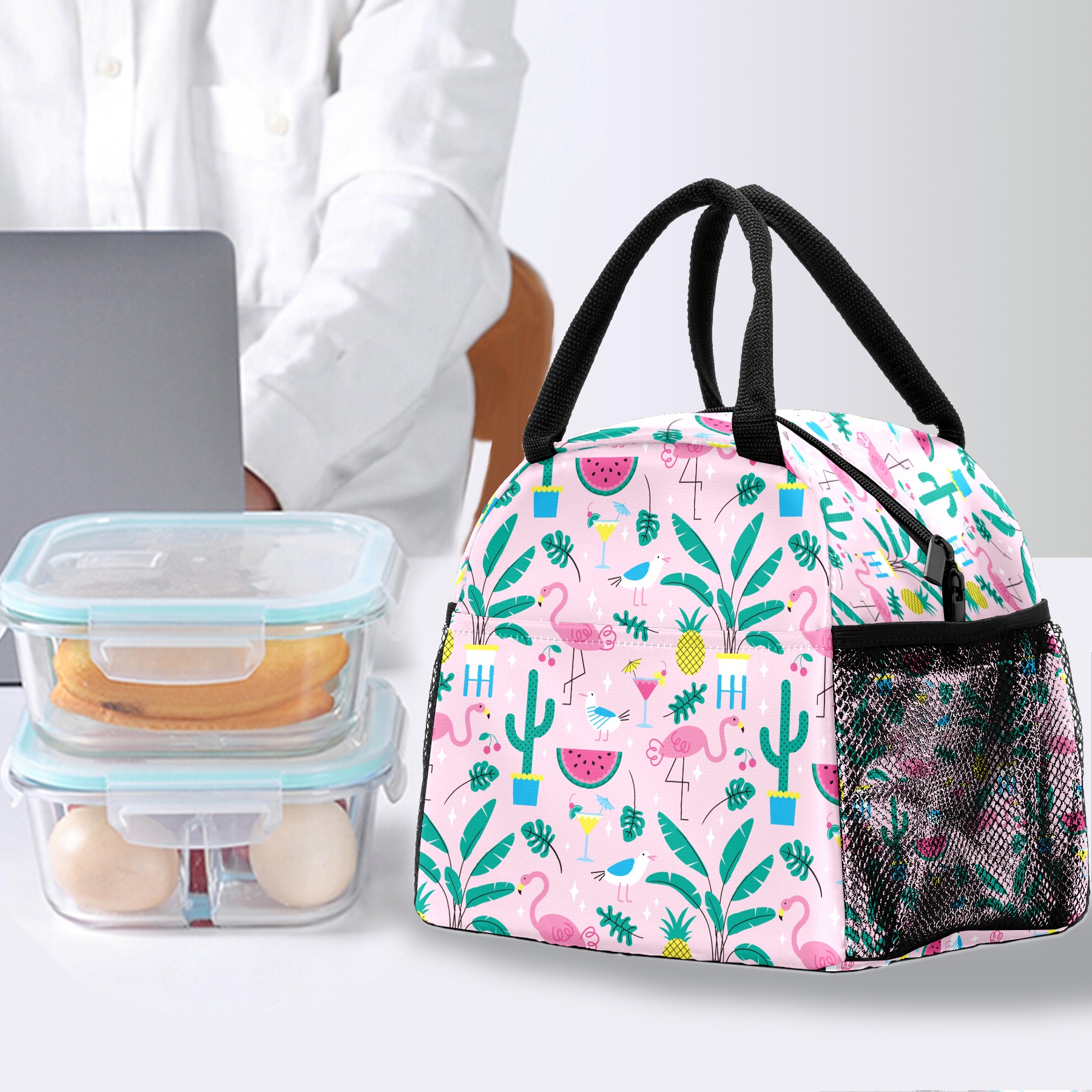 Lunch Bag for Women Men, Summer Pink Flamingo Pineapple Watermelon Pattern Insulated Reusable Lunch Box Thermal Cooler Tote Bag for Work Picnic Hiking Travel Beach
