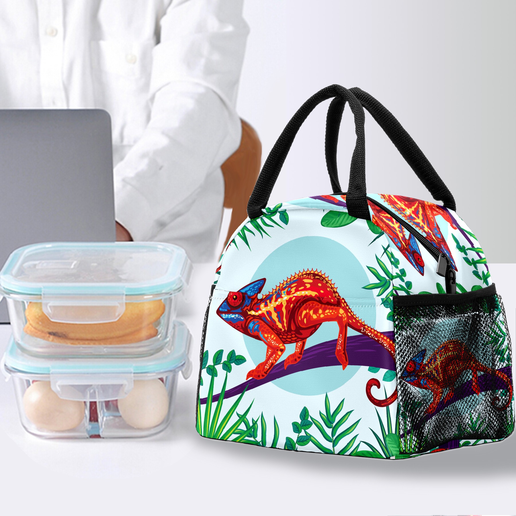 Lunch Bag for Women Men, The Chameleon Insect Insulated Reusable Lunch Box Thermal Cooler Tote Bag for Work Picnic Hiking Travel Beach