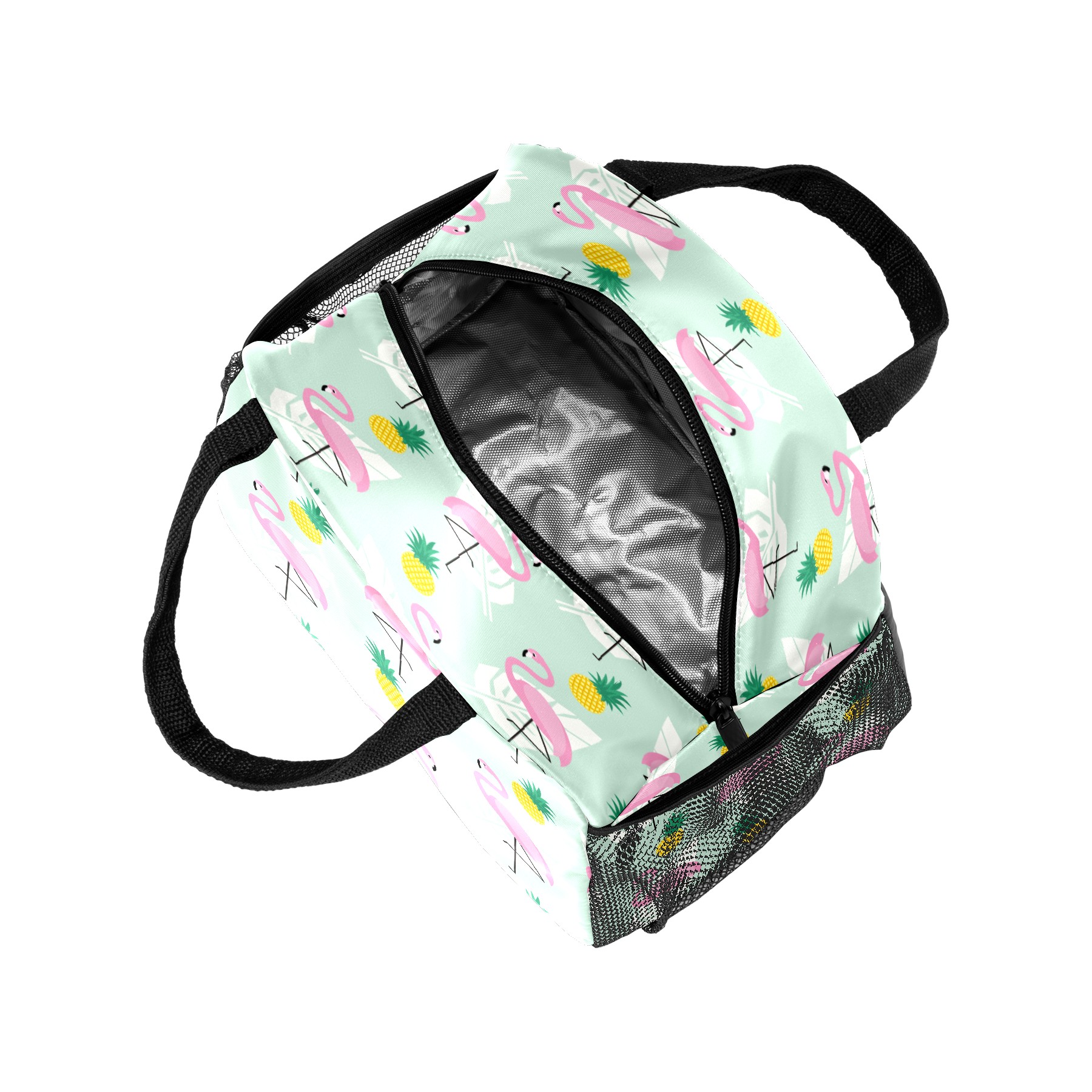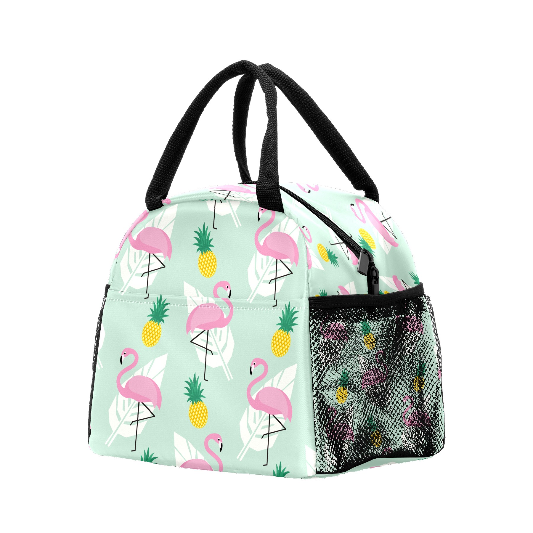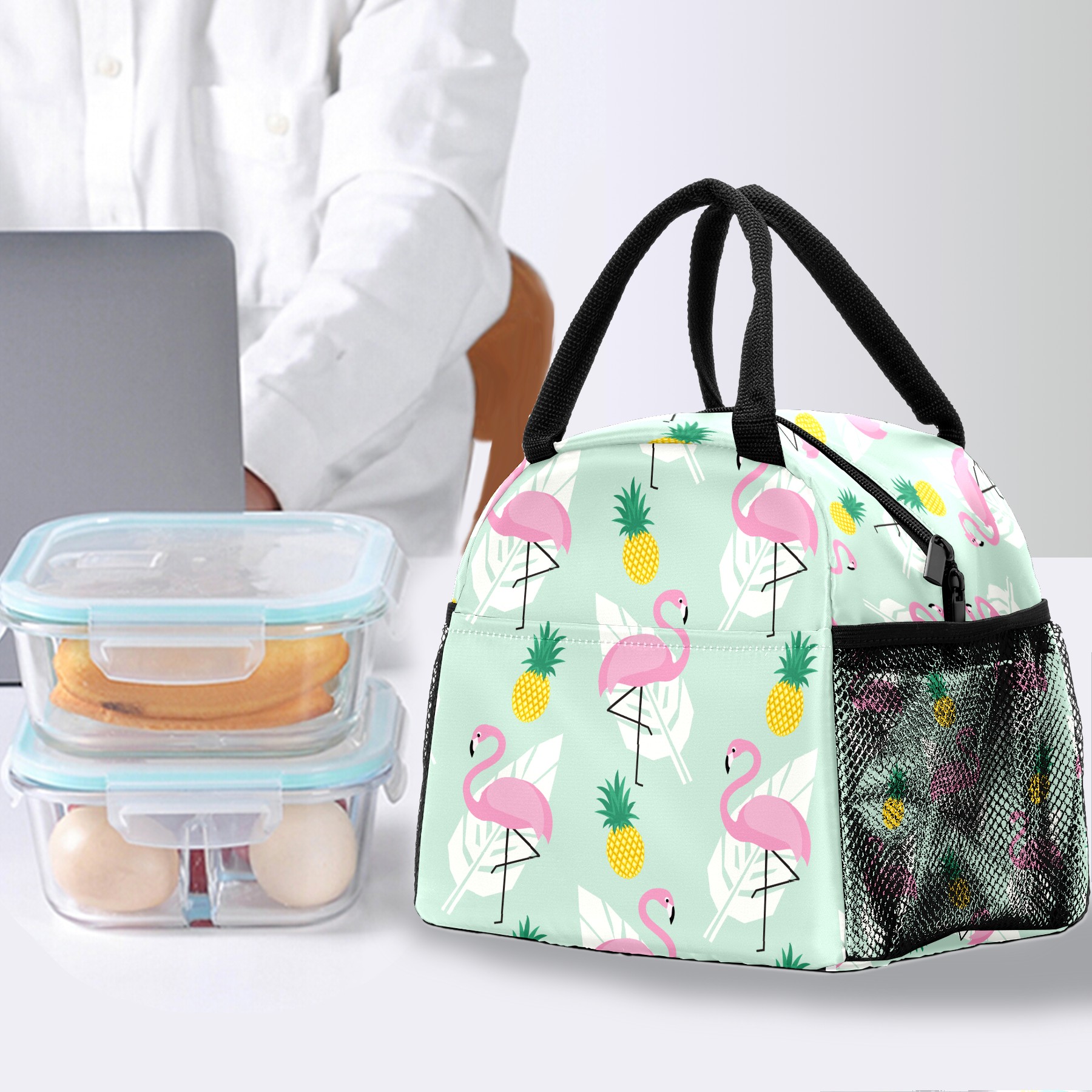 Lunch Bag for Women Men, Summer Flamingo Pineapple Pattern Insulated Reusable Lunch Box Thermal Cooler Tote Bag for Work Picnic Hiking Travel Beach