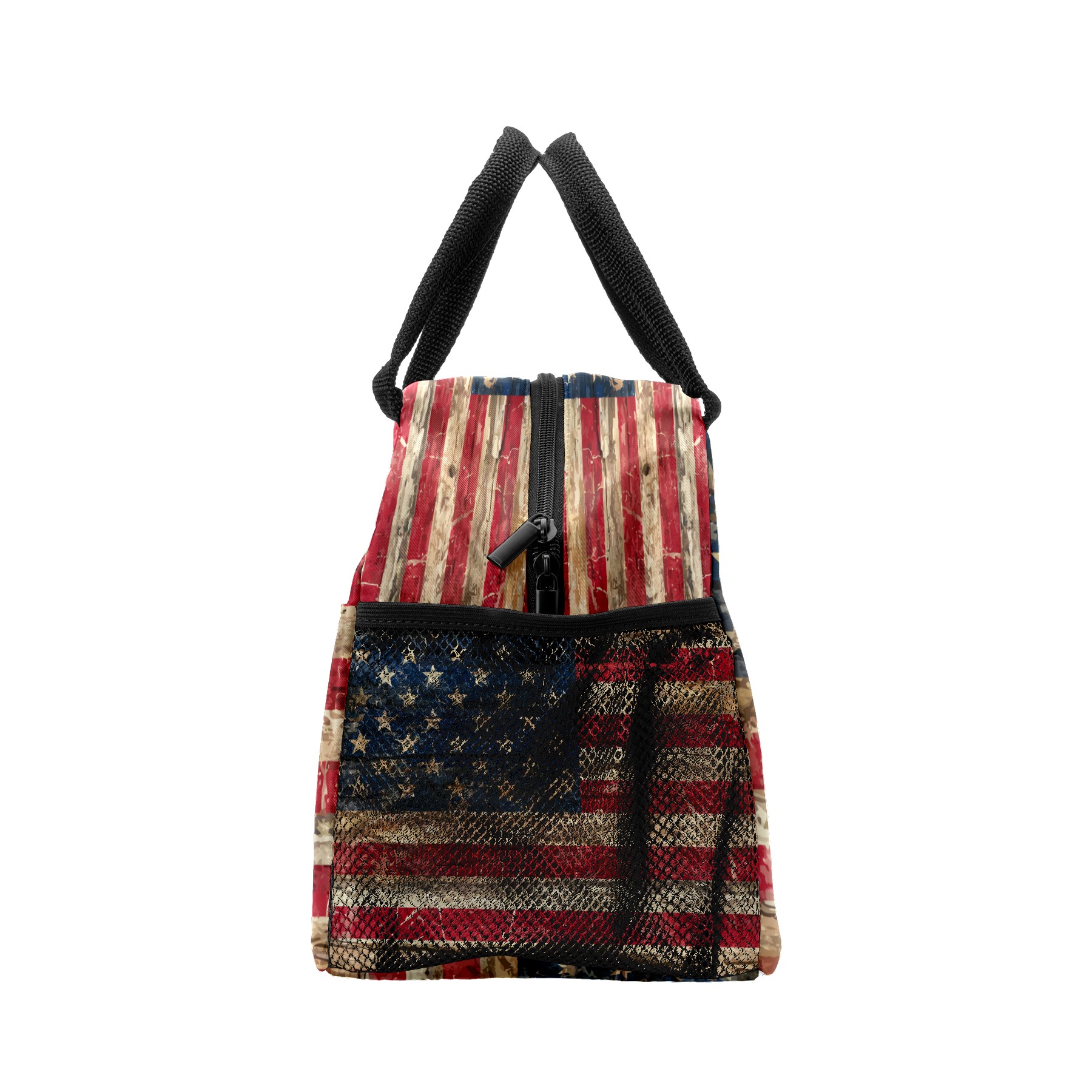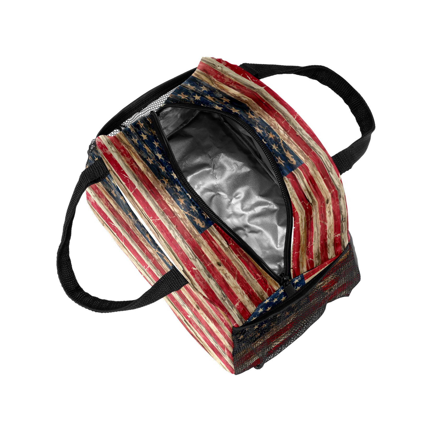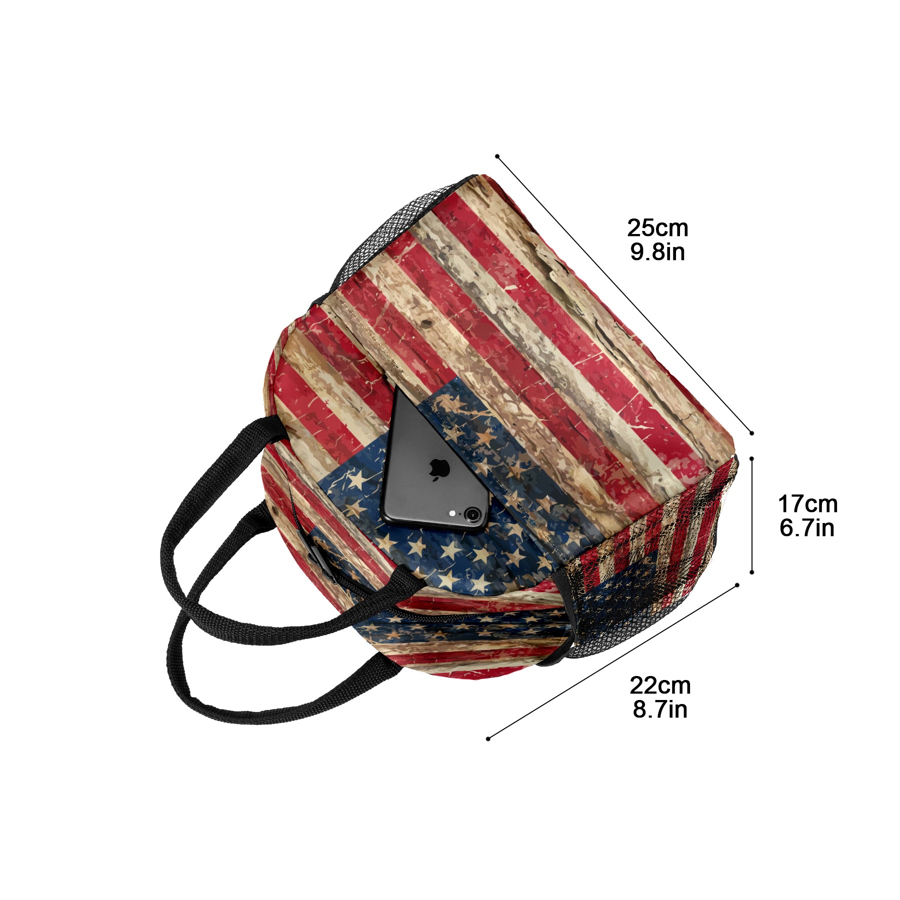 Lunch Bag for Women Men, Wooden Vintage American Flag Insulated Reusable Lunch Box Thermal Cooler Tote Bag for Work Picnic Hiking Travel Beach
