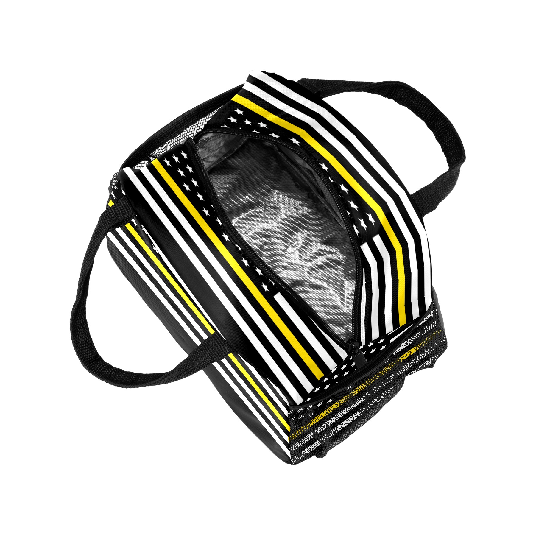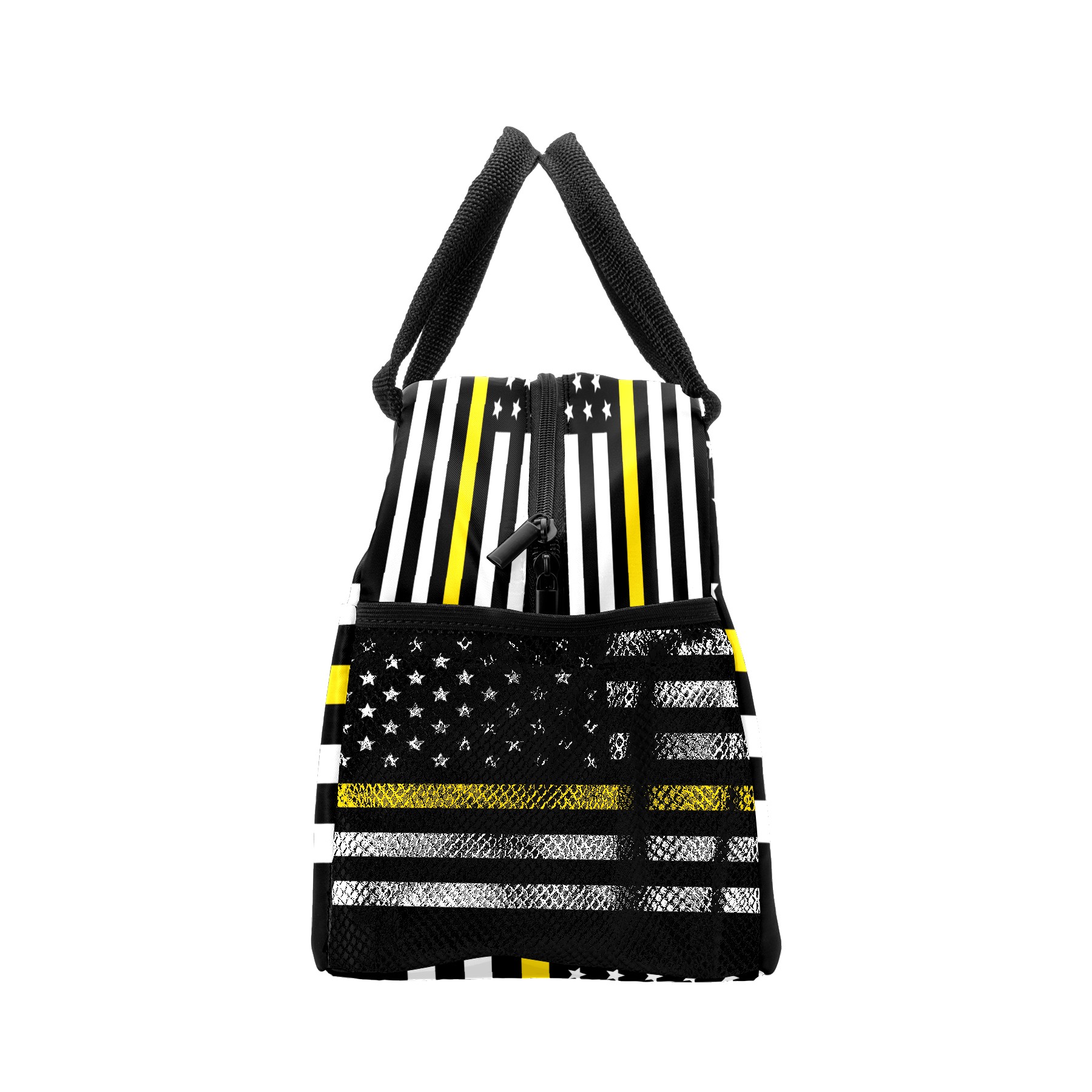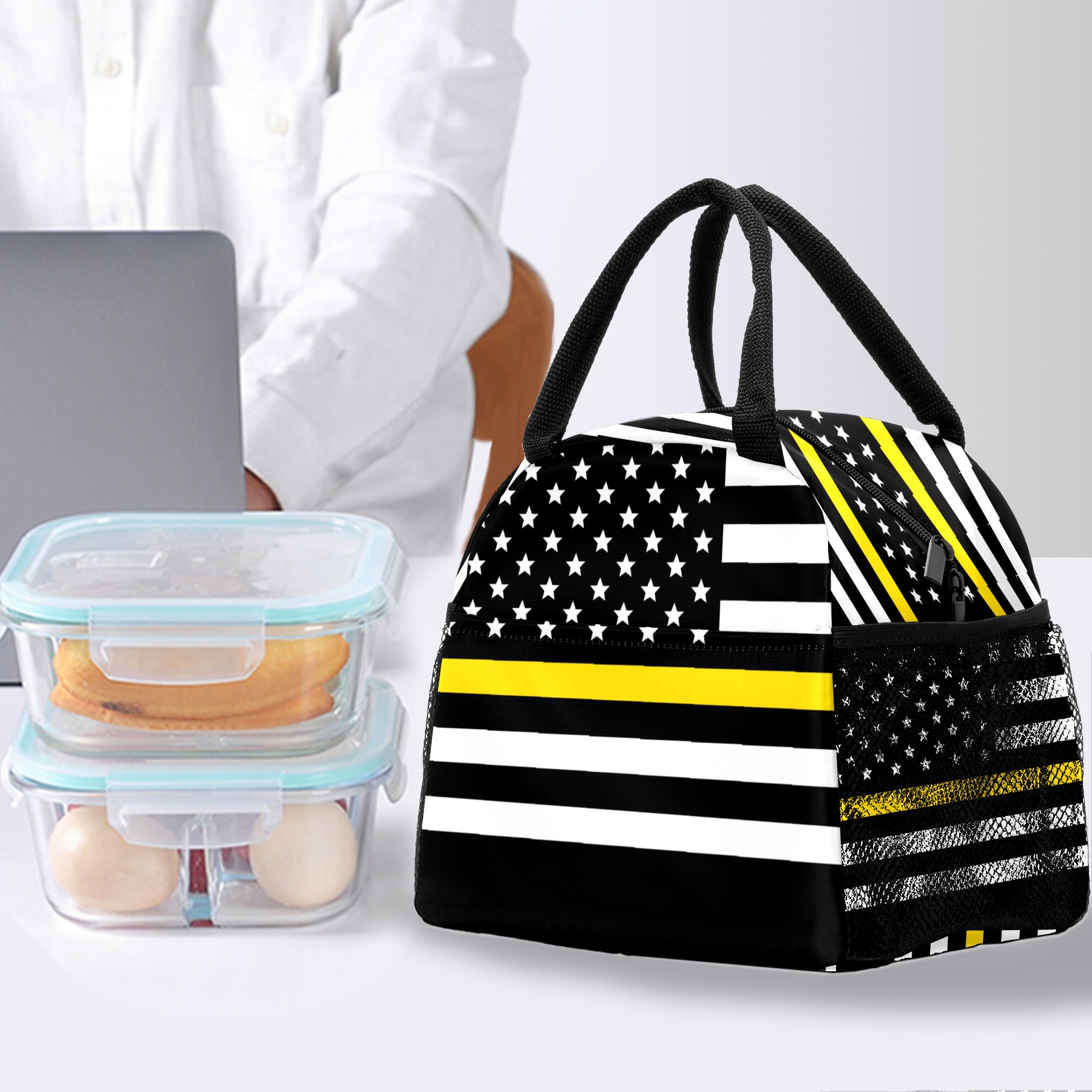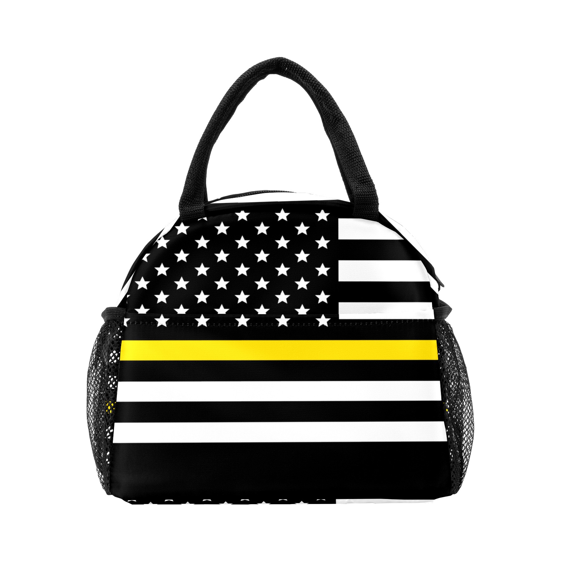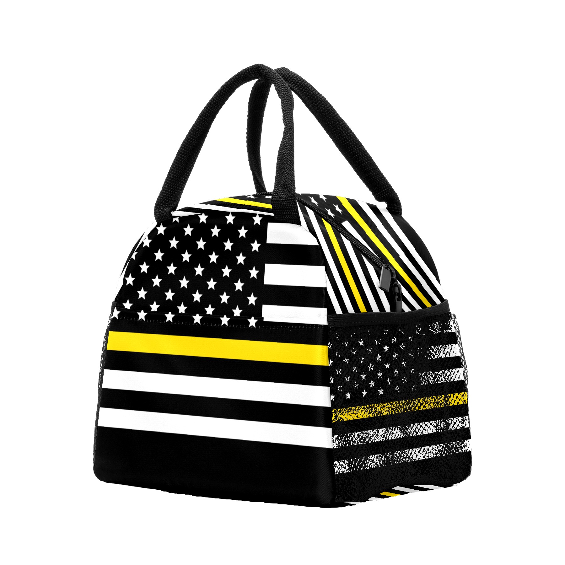 Lunch Bag for Women Men, Yellow Thin Line American Flag Insulated Reusable Lunch Box Thermal Cooler Tote Bag for Work Picnic Hiking Travel Beach