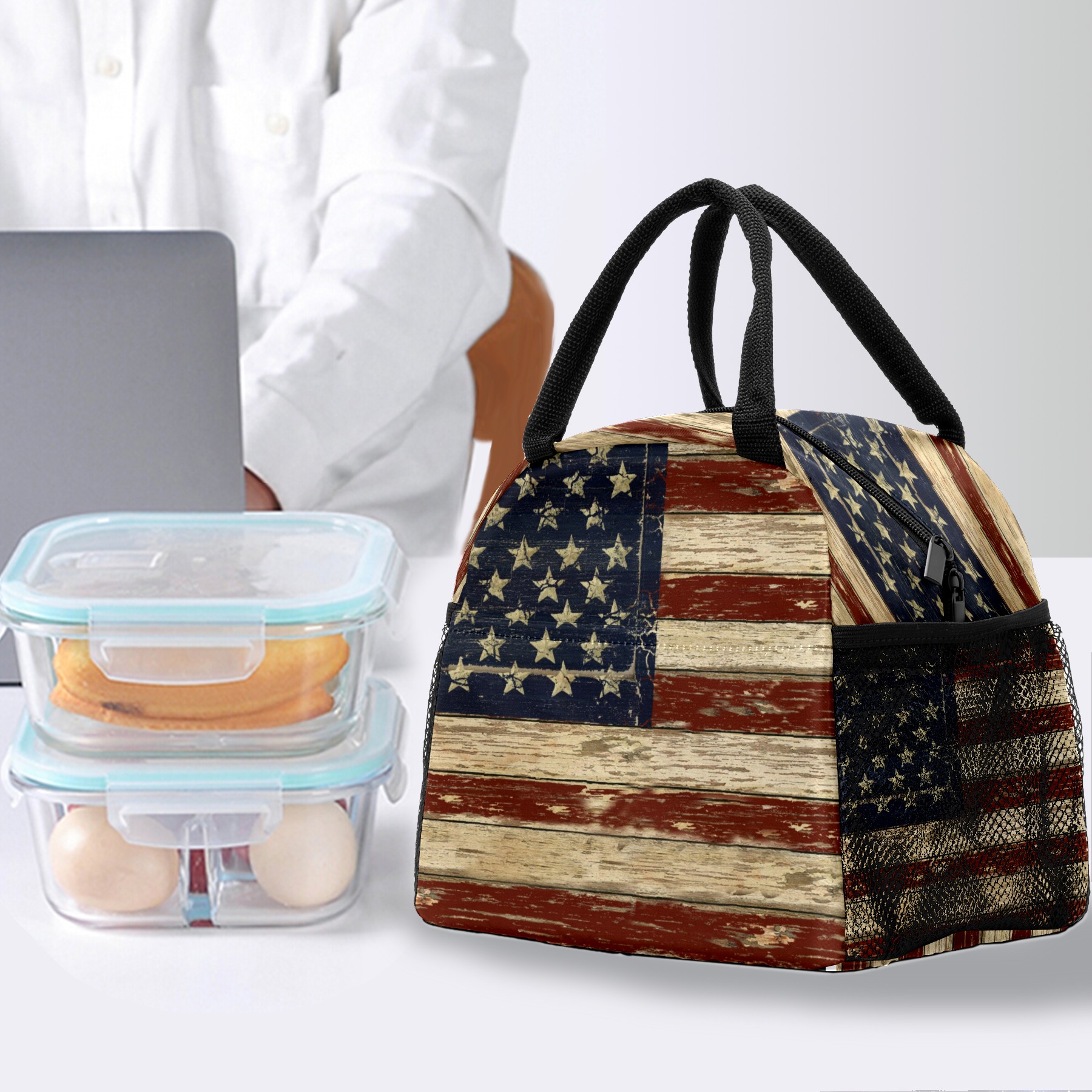 Lunch Bag for Women Men, Vintage Independence Day American Flag Insulated Reusable Lunch Box Thermal Cooler Tote Bag for Work Picnic Hiking Travel Beach