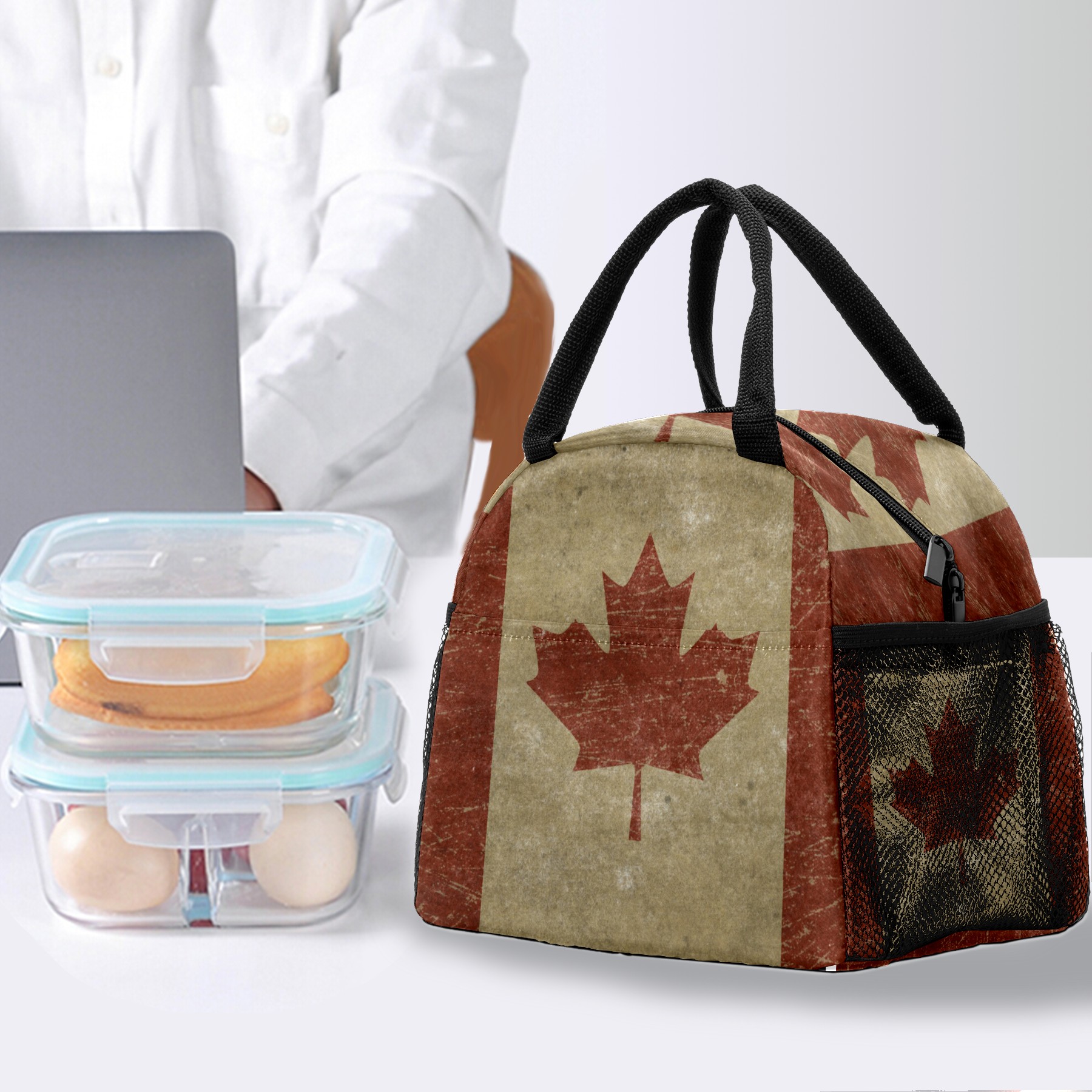 Lunch Bag for Women Men, Vintage Canada Flag Insulated Reusable Lunch Box Thermal Cooler Tote Bag for Work Picnic Hiking Travel Beach