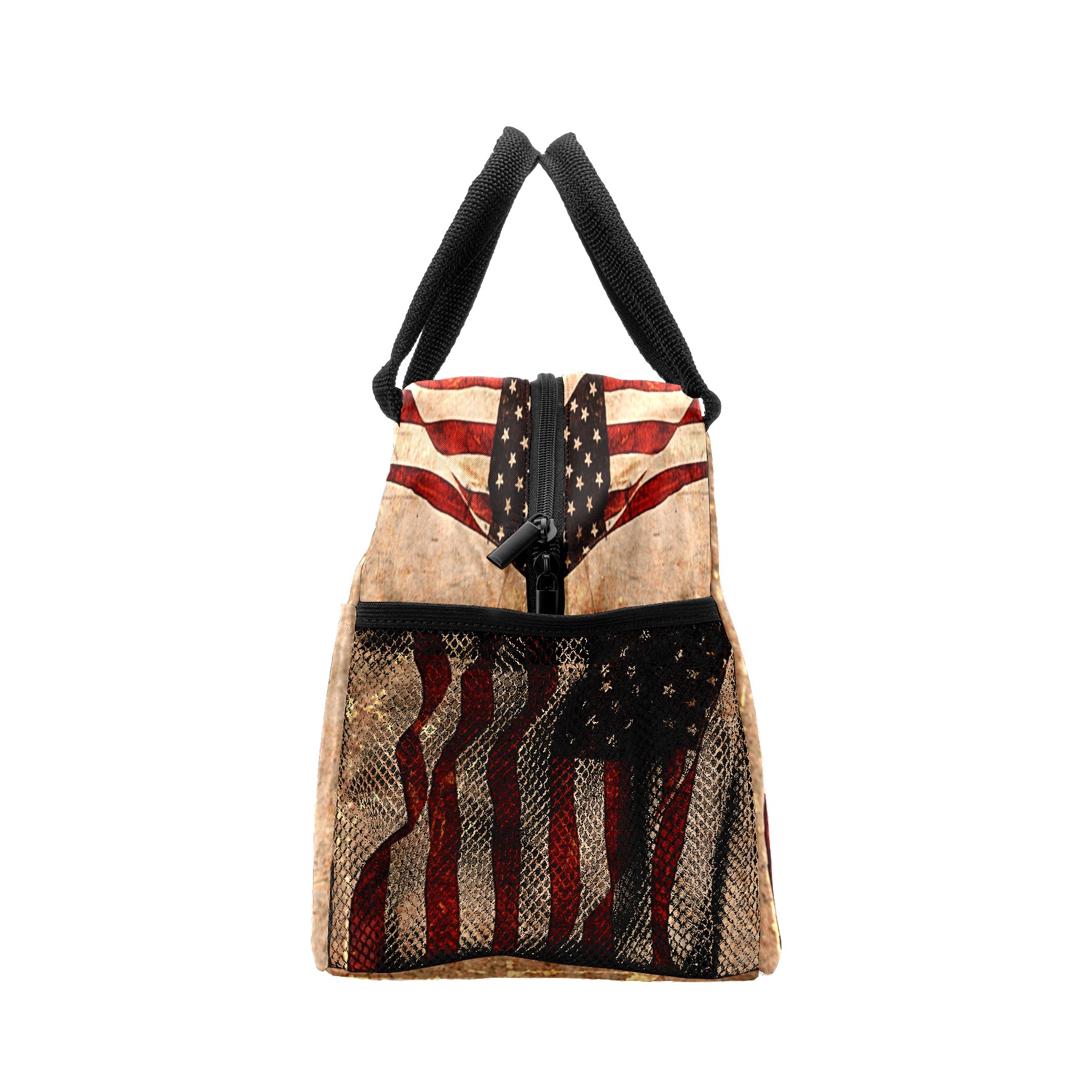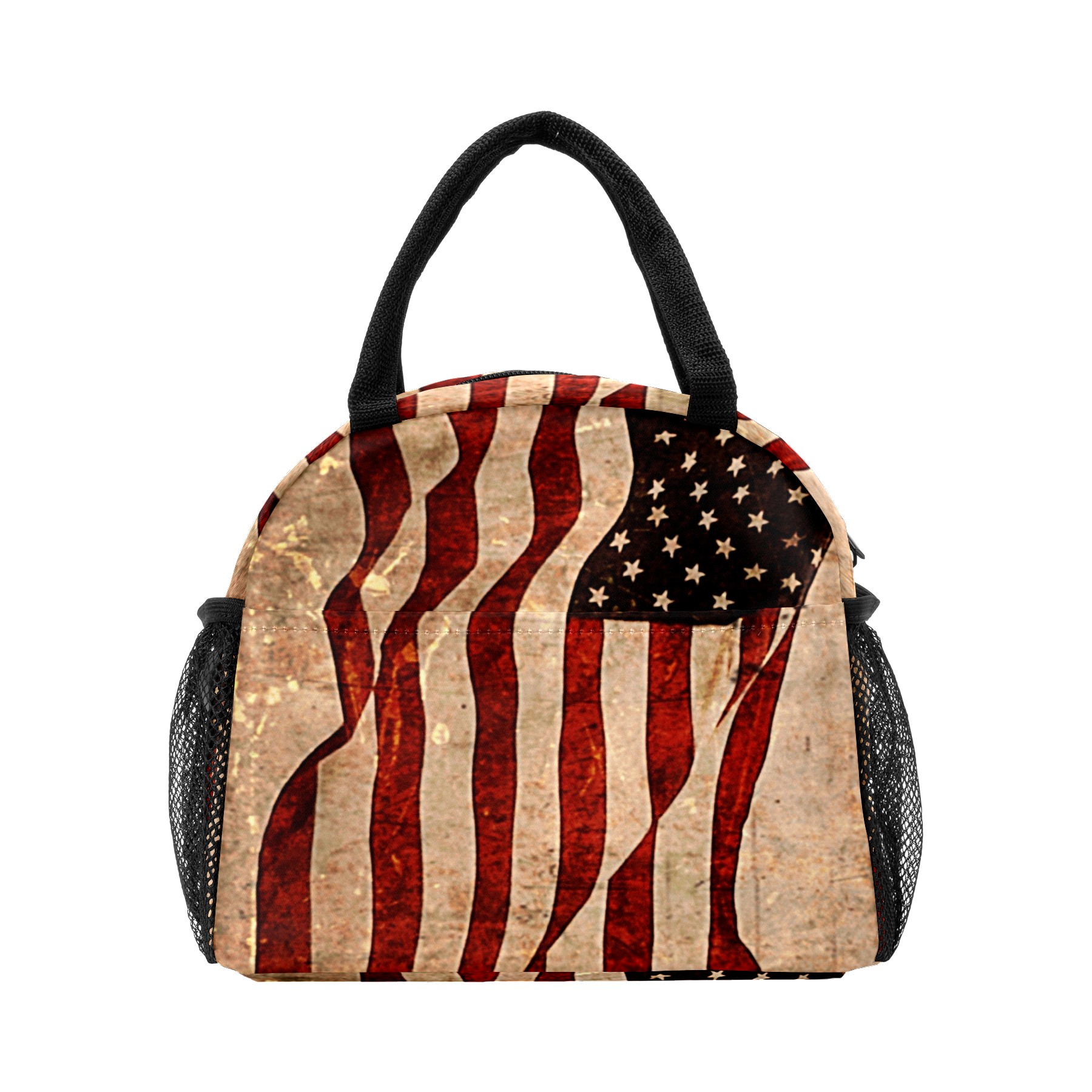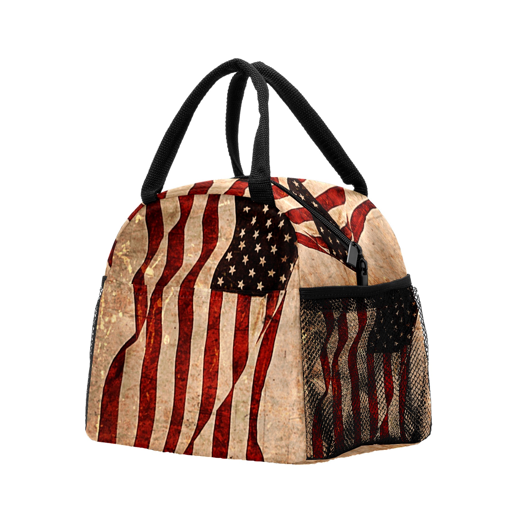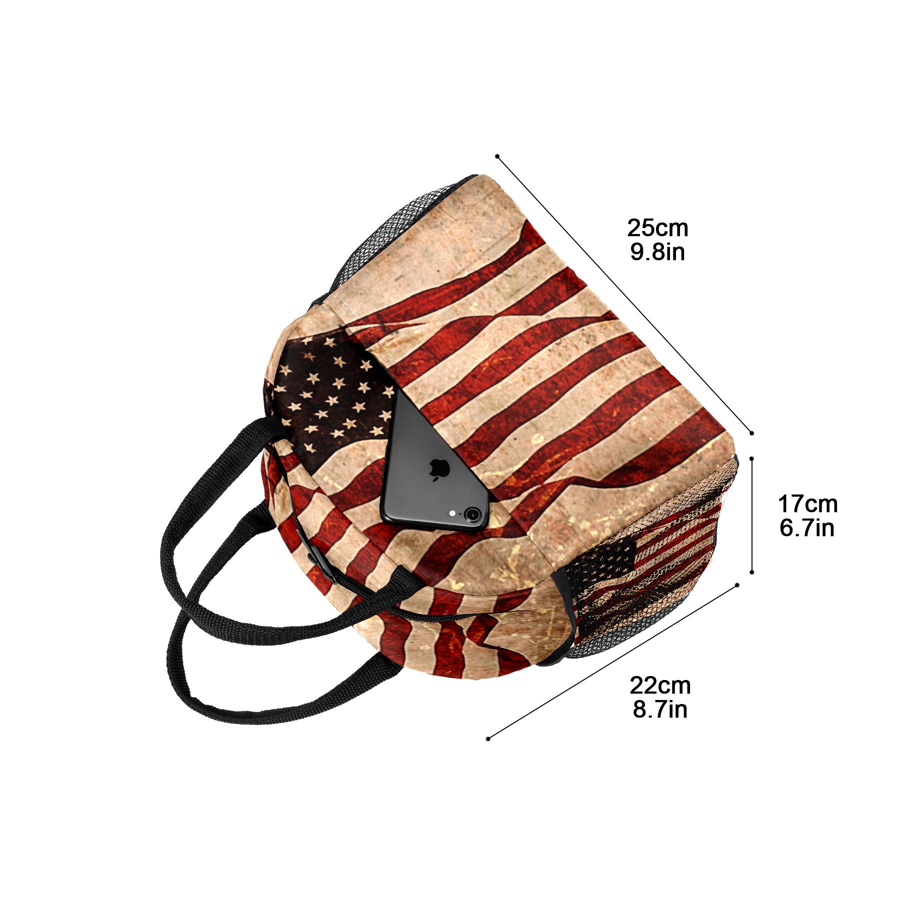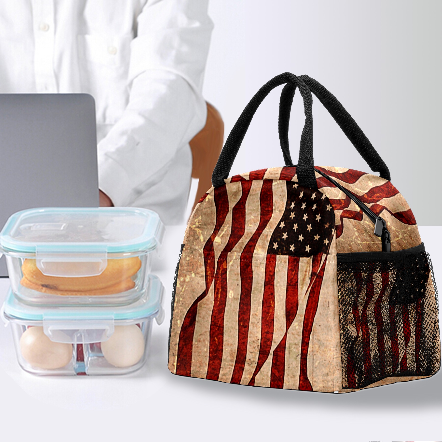Lunch Bag for Women Men, Vintage American Flag Independence Insulated Reusable Lunch Box Thermal Cooler Tote Bag for Work Picnic Hiking Travel Beach