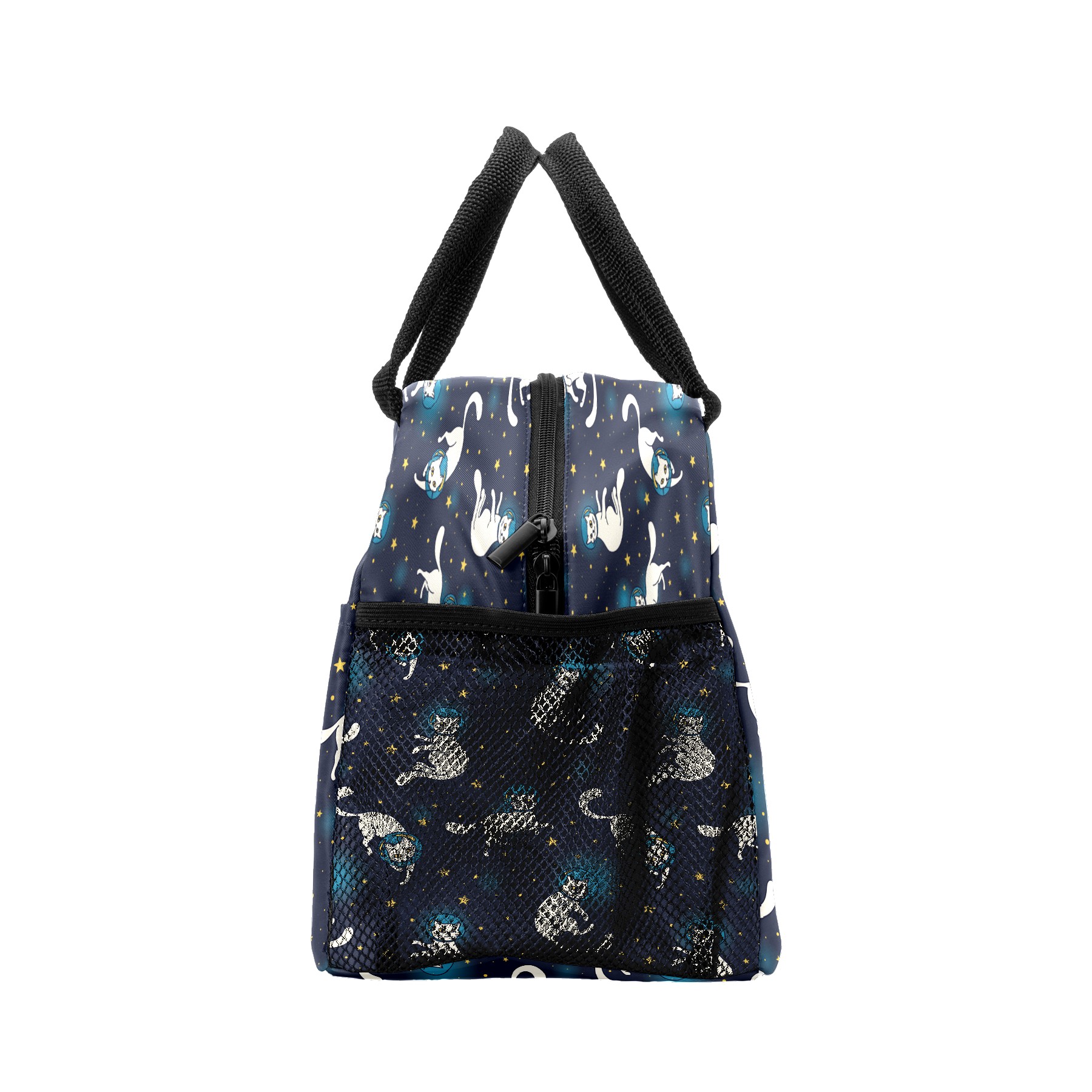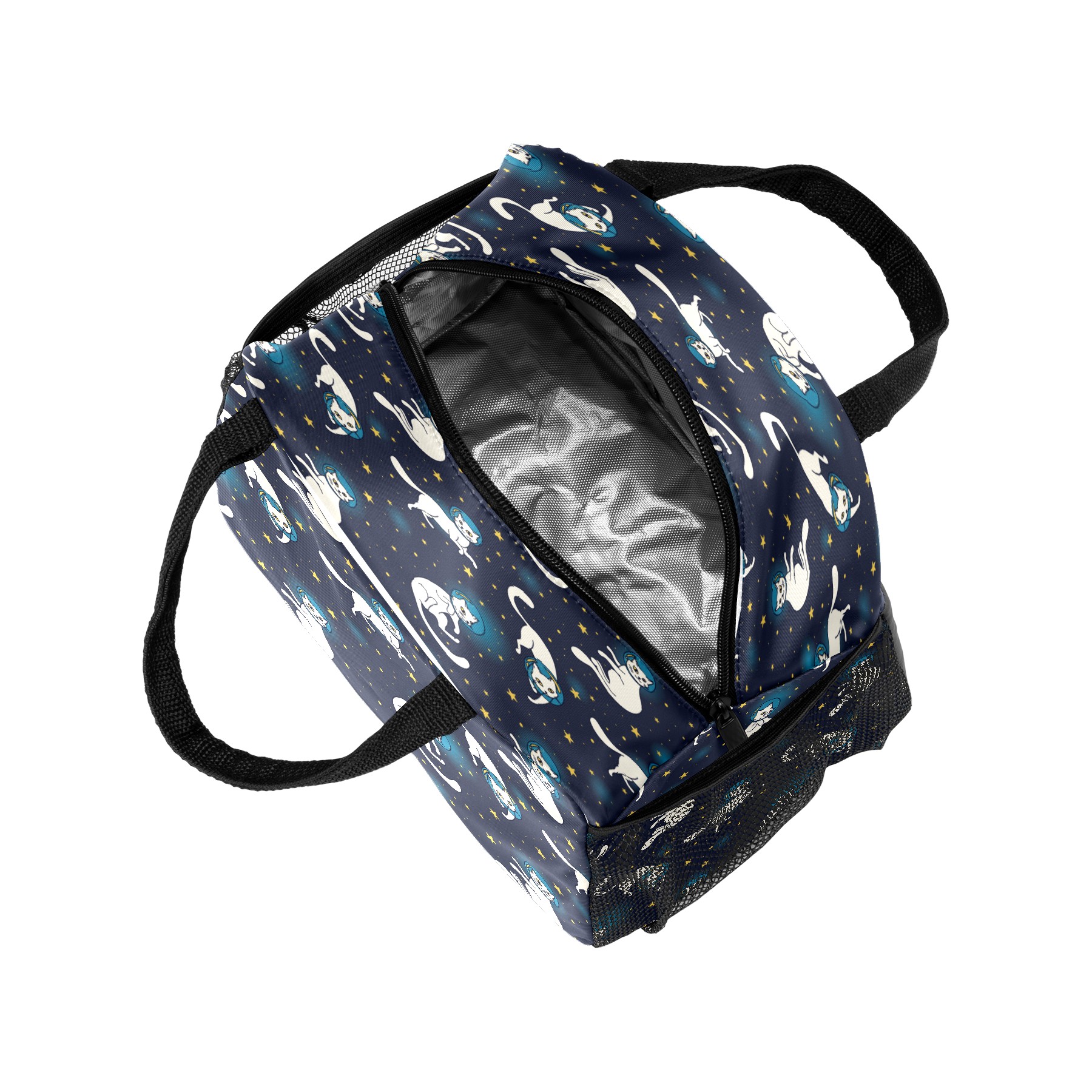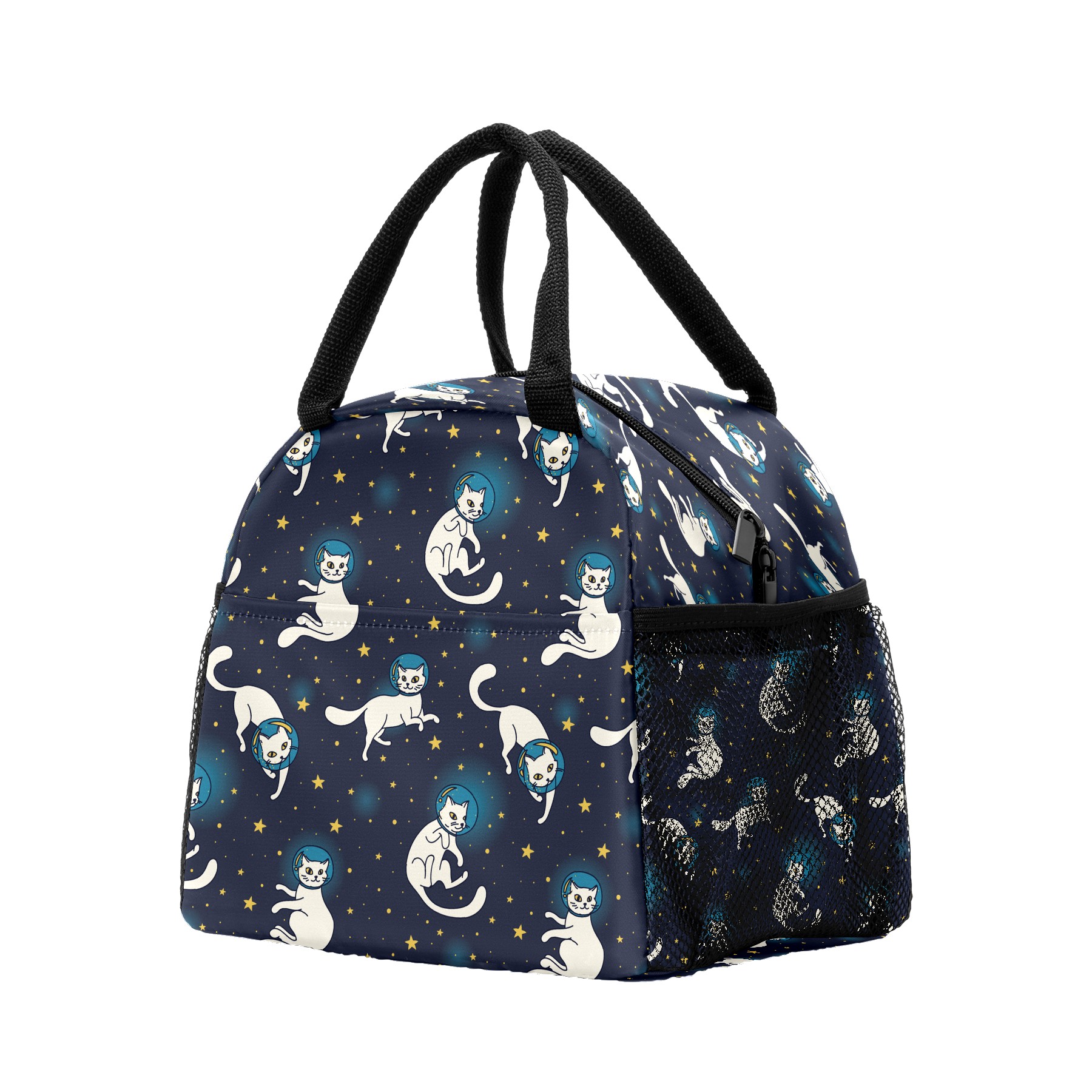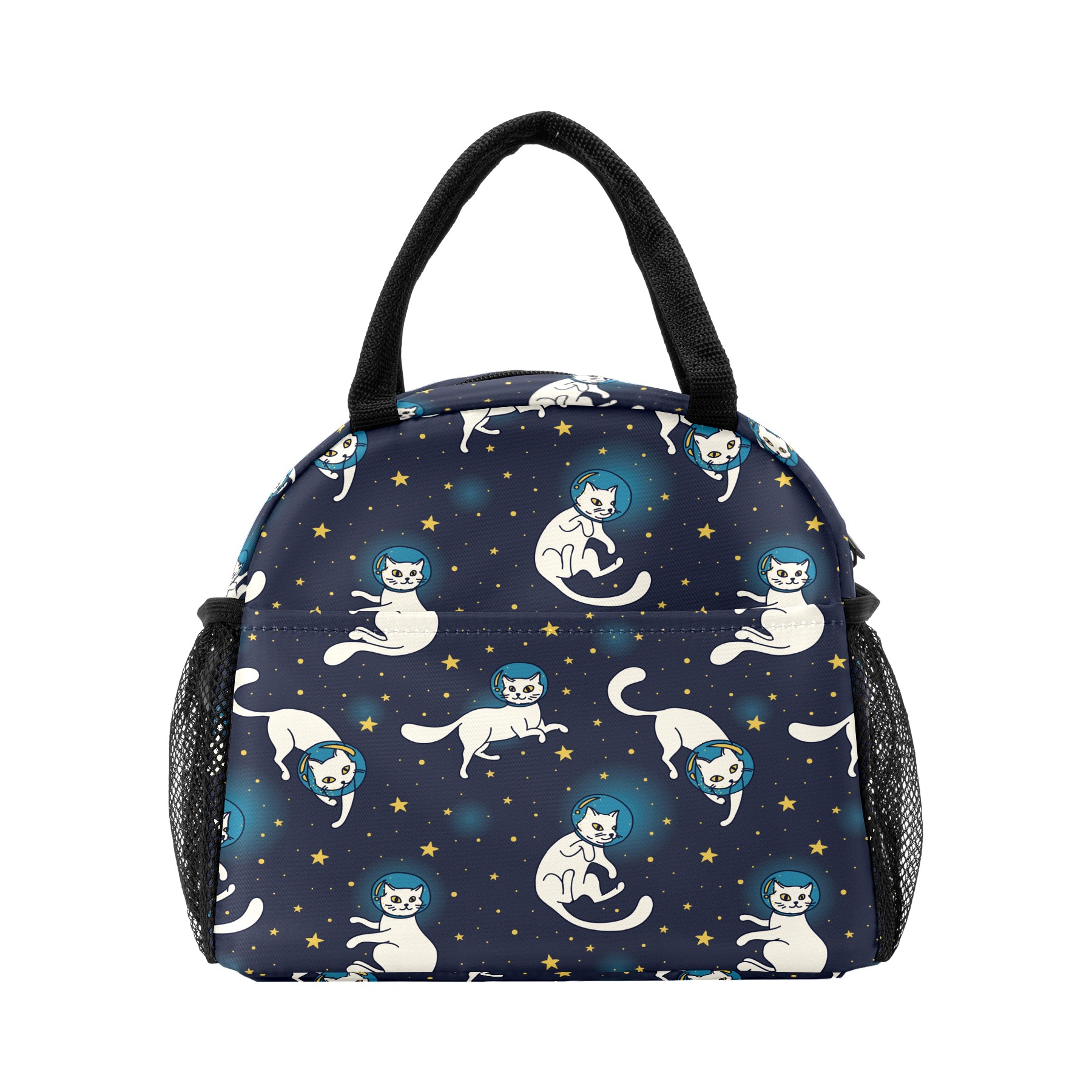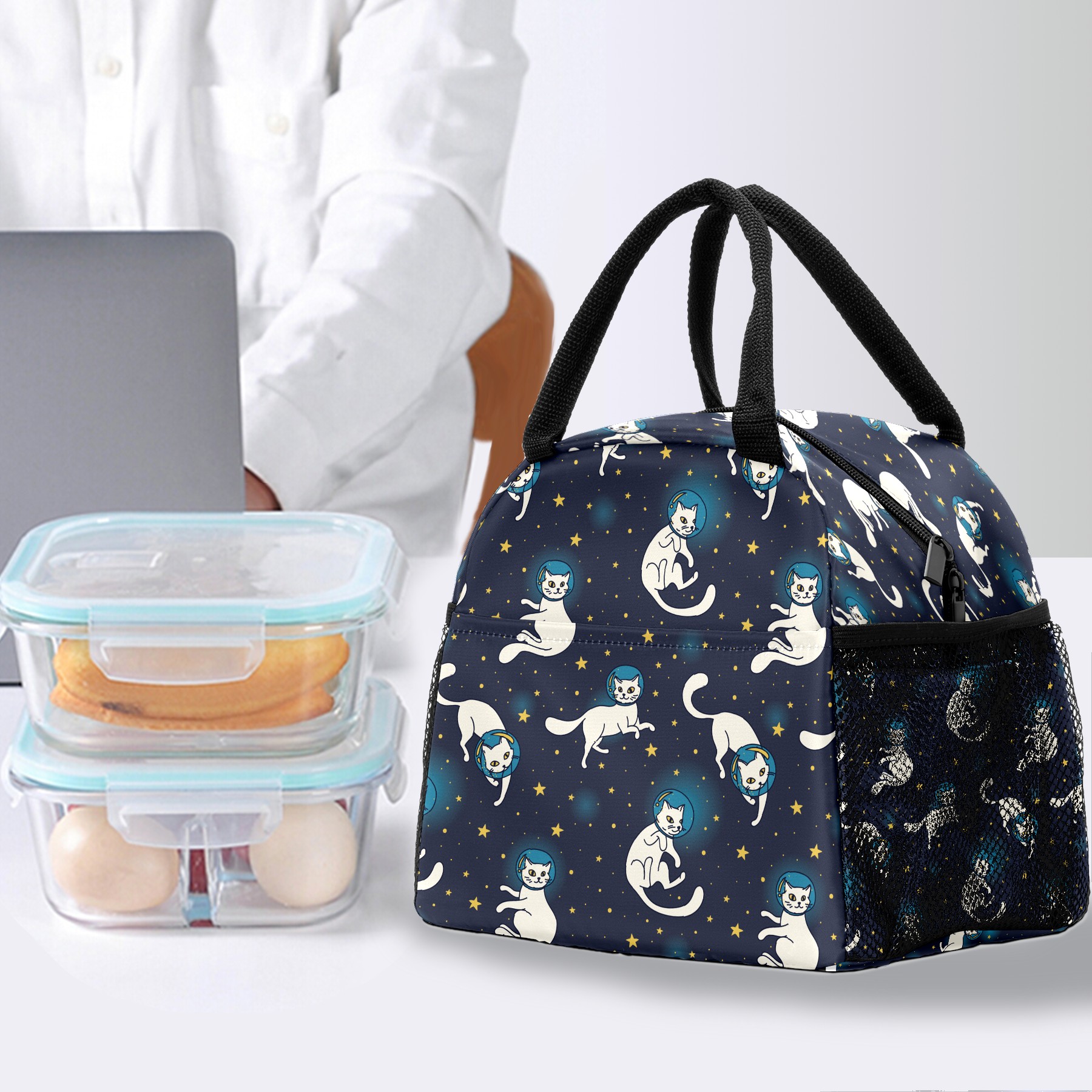 Lunch Bag for Women Men, Space Galaxy Astronaut Cats Stars Pattern Insulated Reusable Lunch Box Thermal Cooler Tote Bag for Work Picnic Hiking Travel Beach