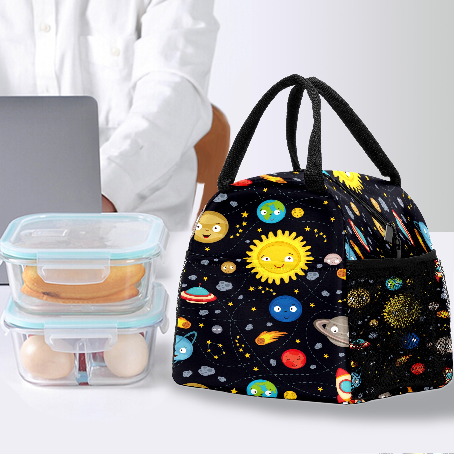 Lunch Bag for Women Men, Space Stars Planets Galaxy Rockets Sun Insulated Reusable Lunch Box Thermal Cooler Tote Bag for Work Picnic Hiking Travel Beach