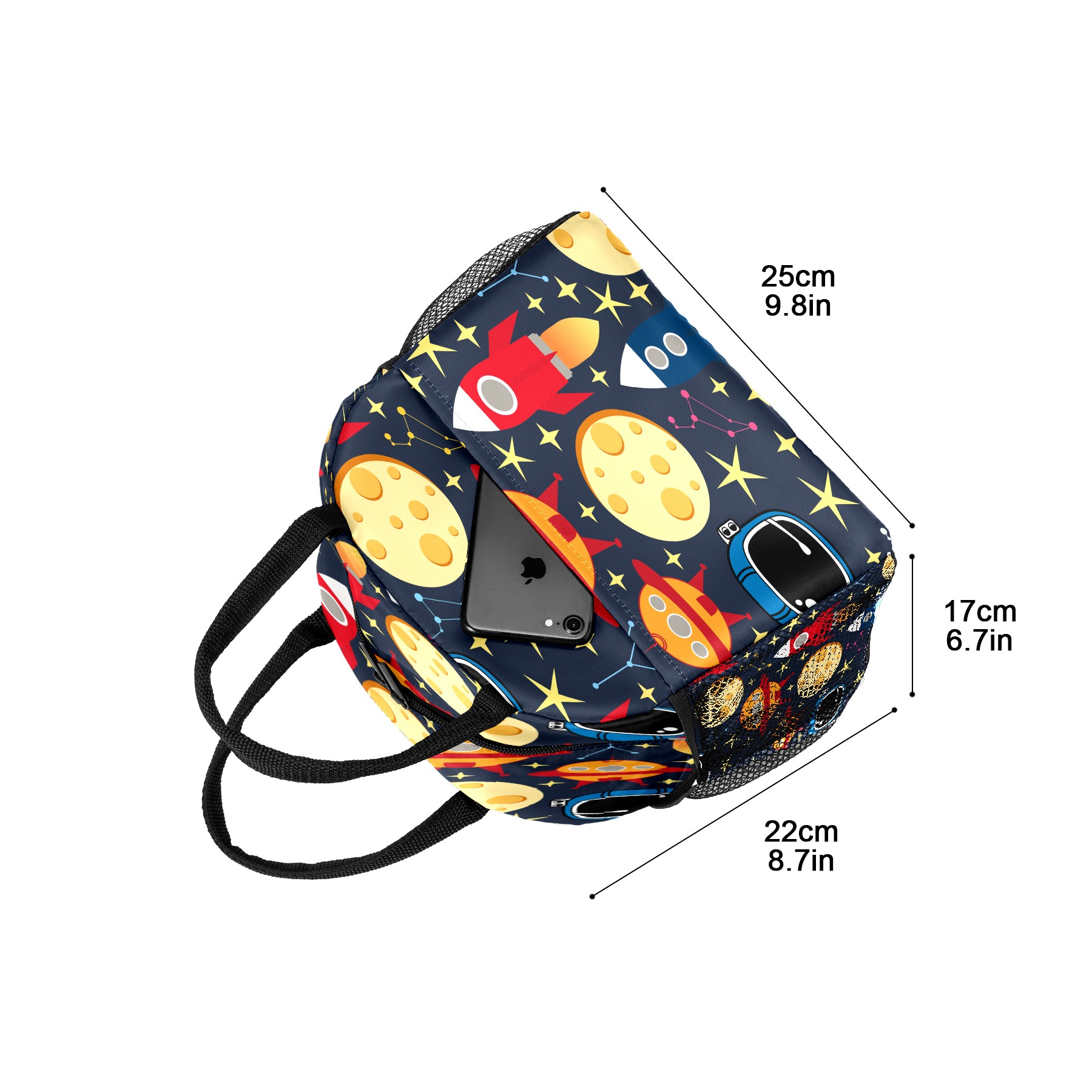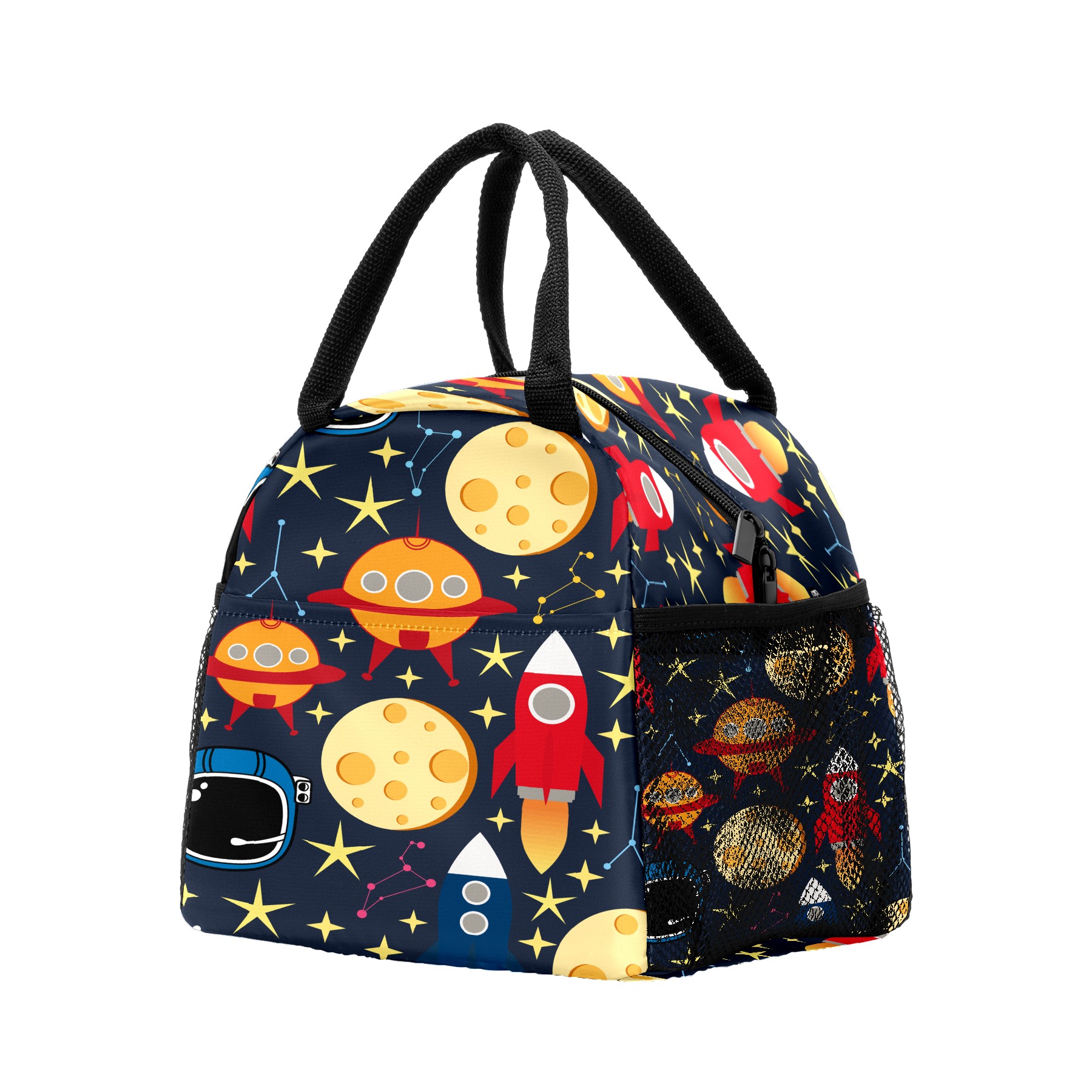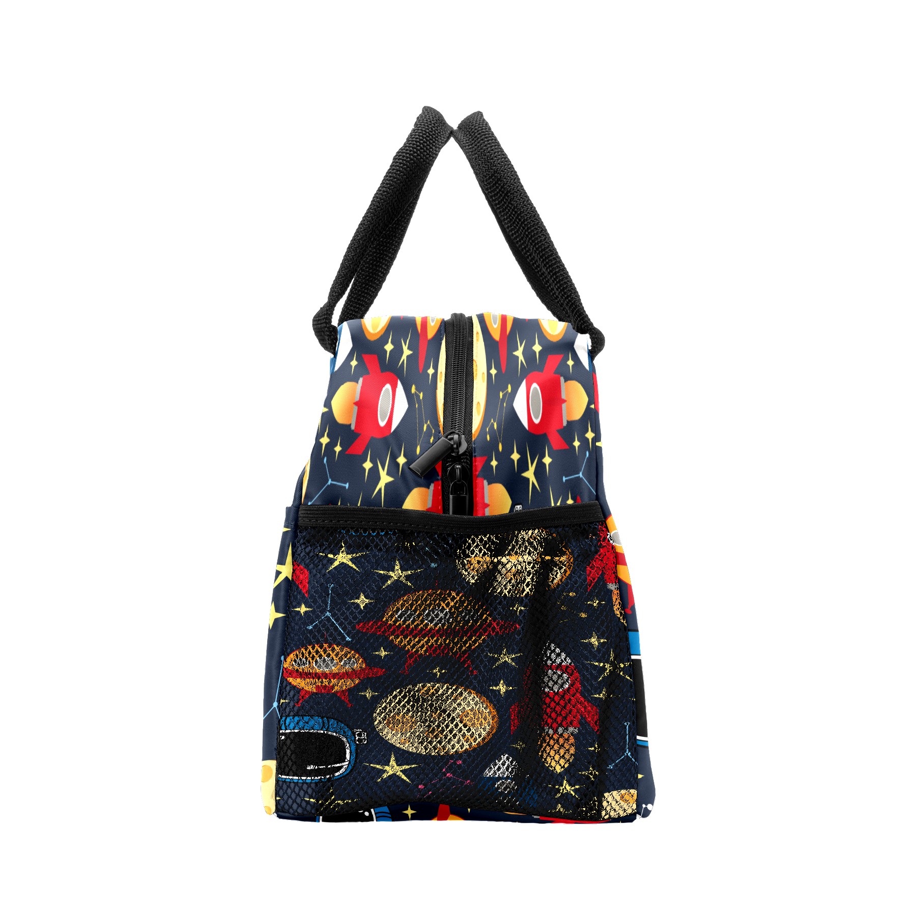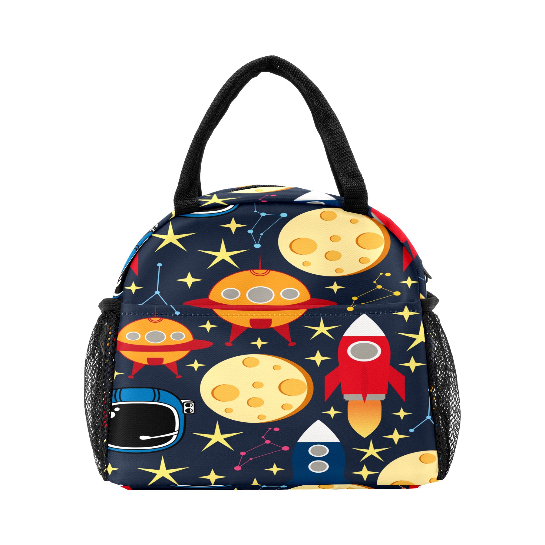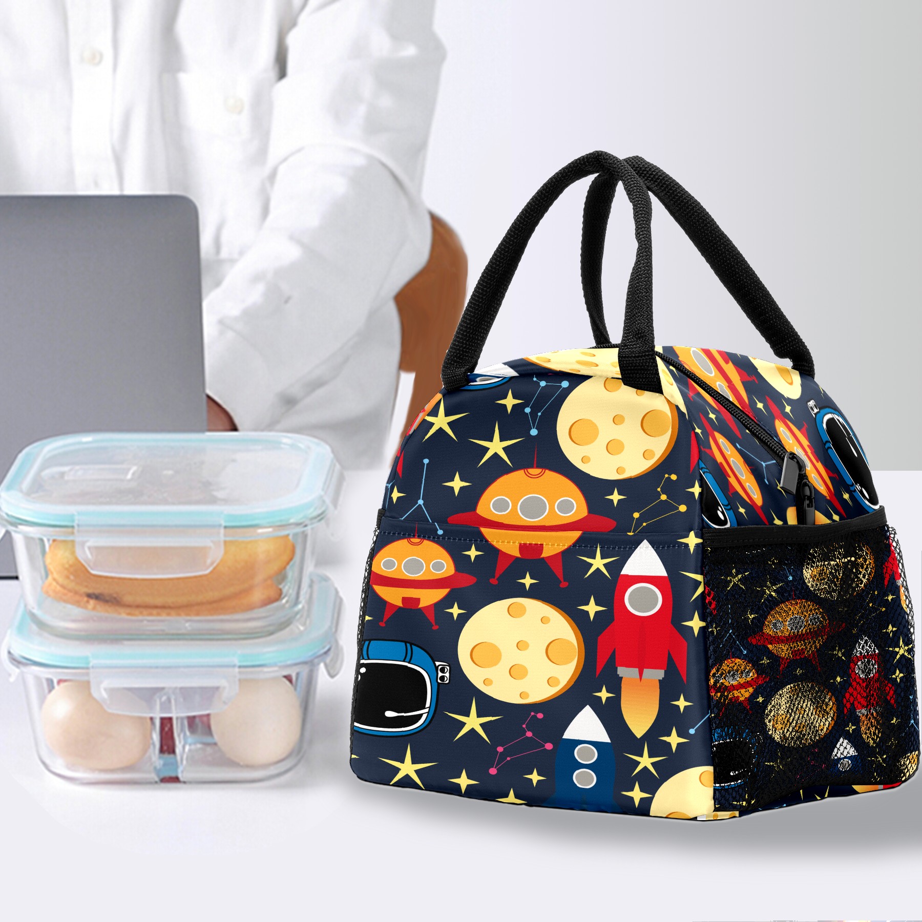 Lunch Bag for Women Men, Space Stars Planets With Rockets Insulated Reusable Lunch Box Thermal Cooler Tote Bag for Work Picnic Hiking Travel Beach