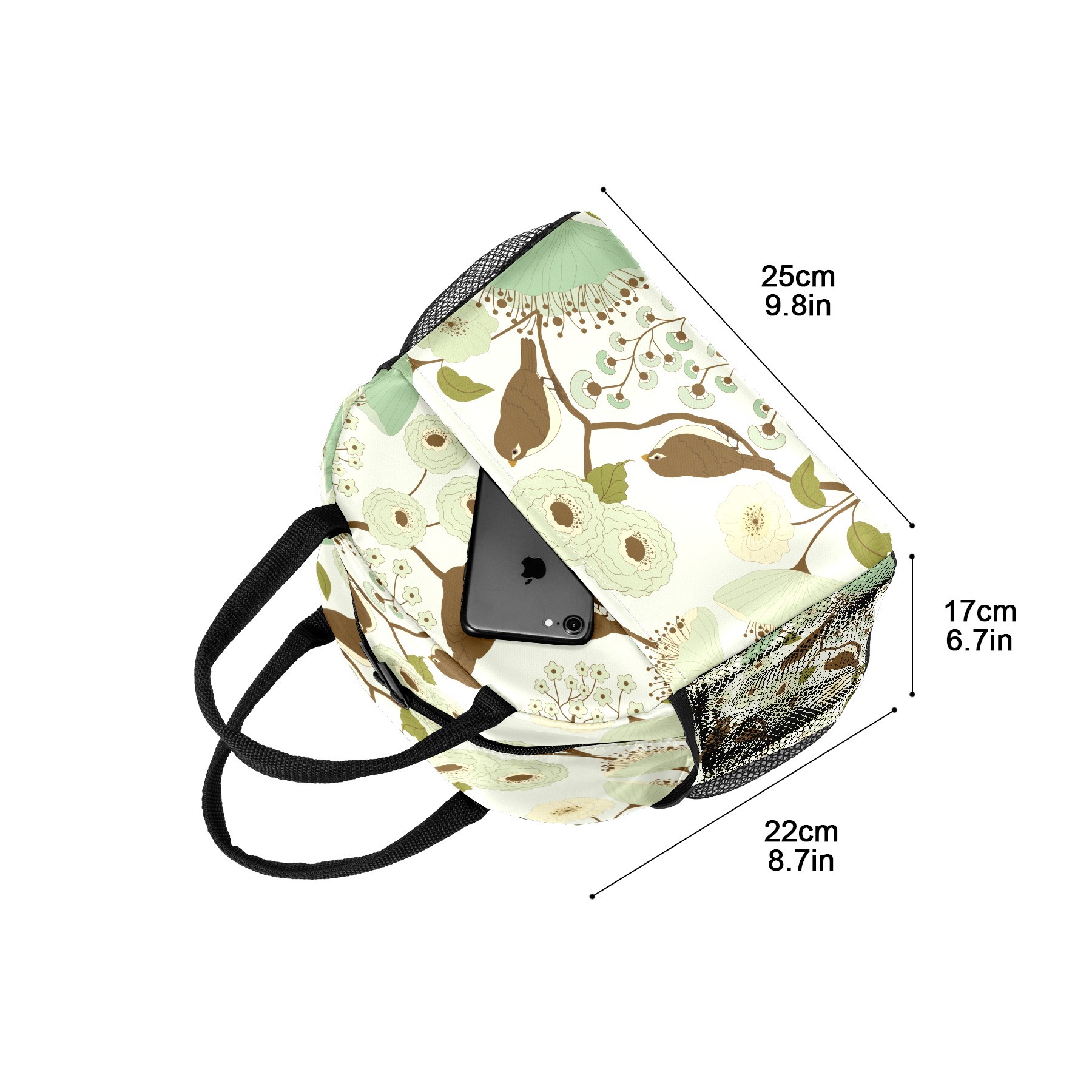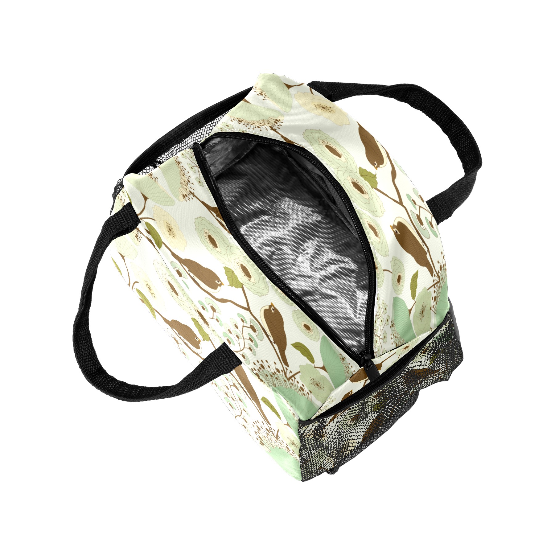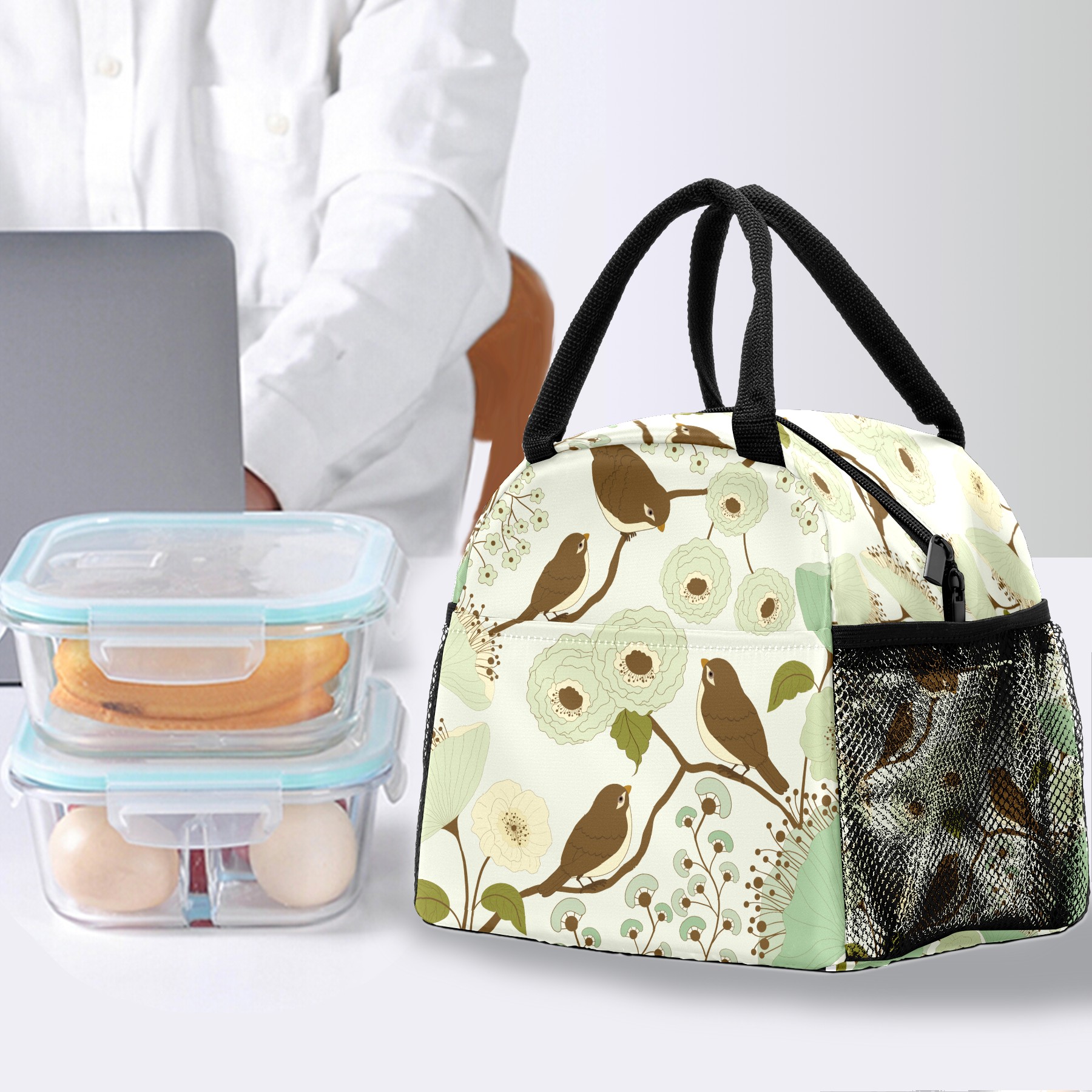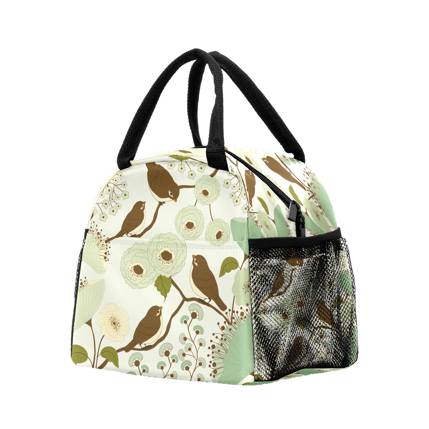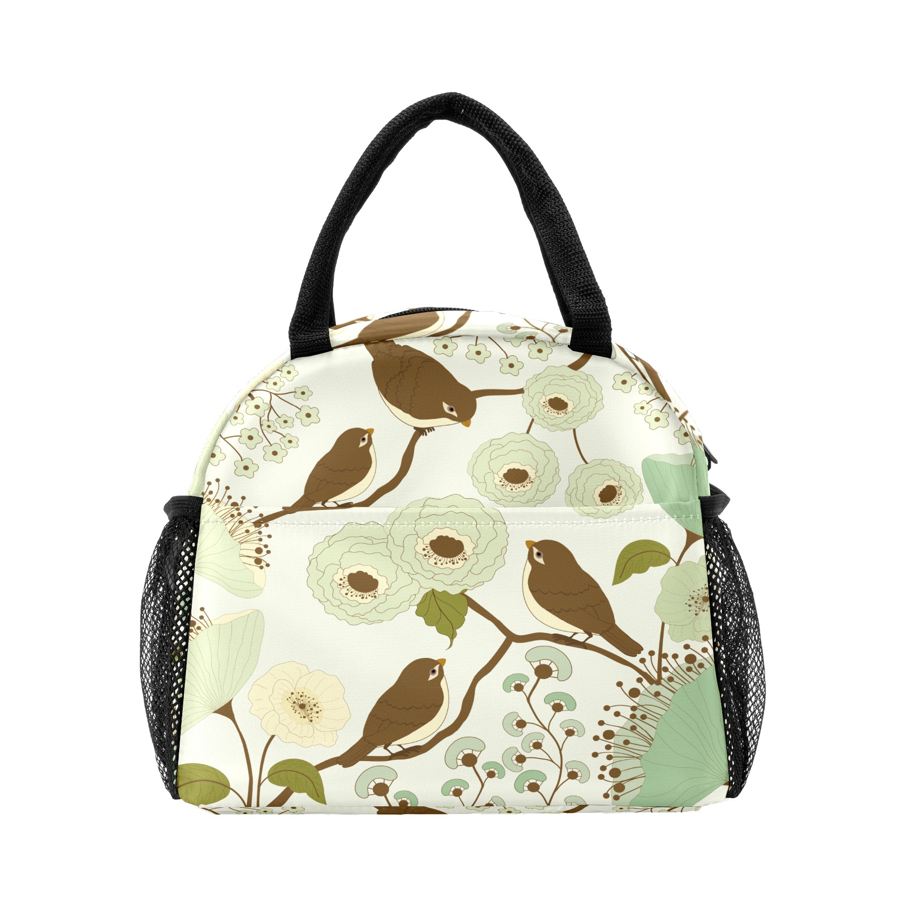 Lunch Bag for Women Men, Retro Birds With Floral Print Insulated Reusable Lunch Box Thermal Cooler Tote Bag for Work Picnic Hiking Travel Beach