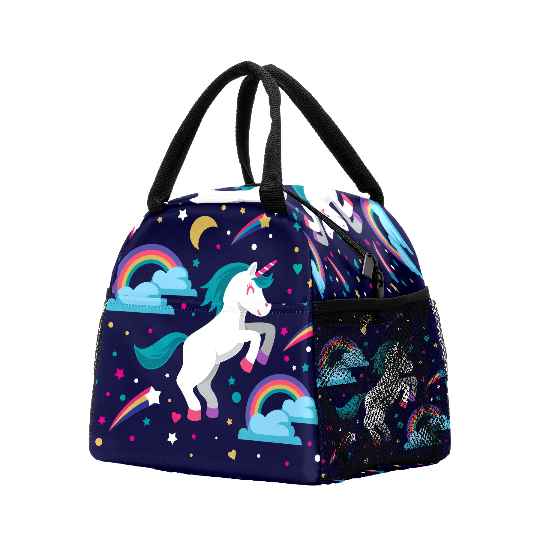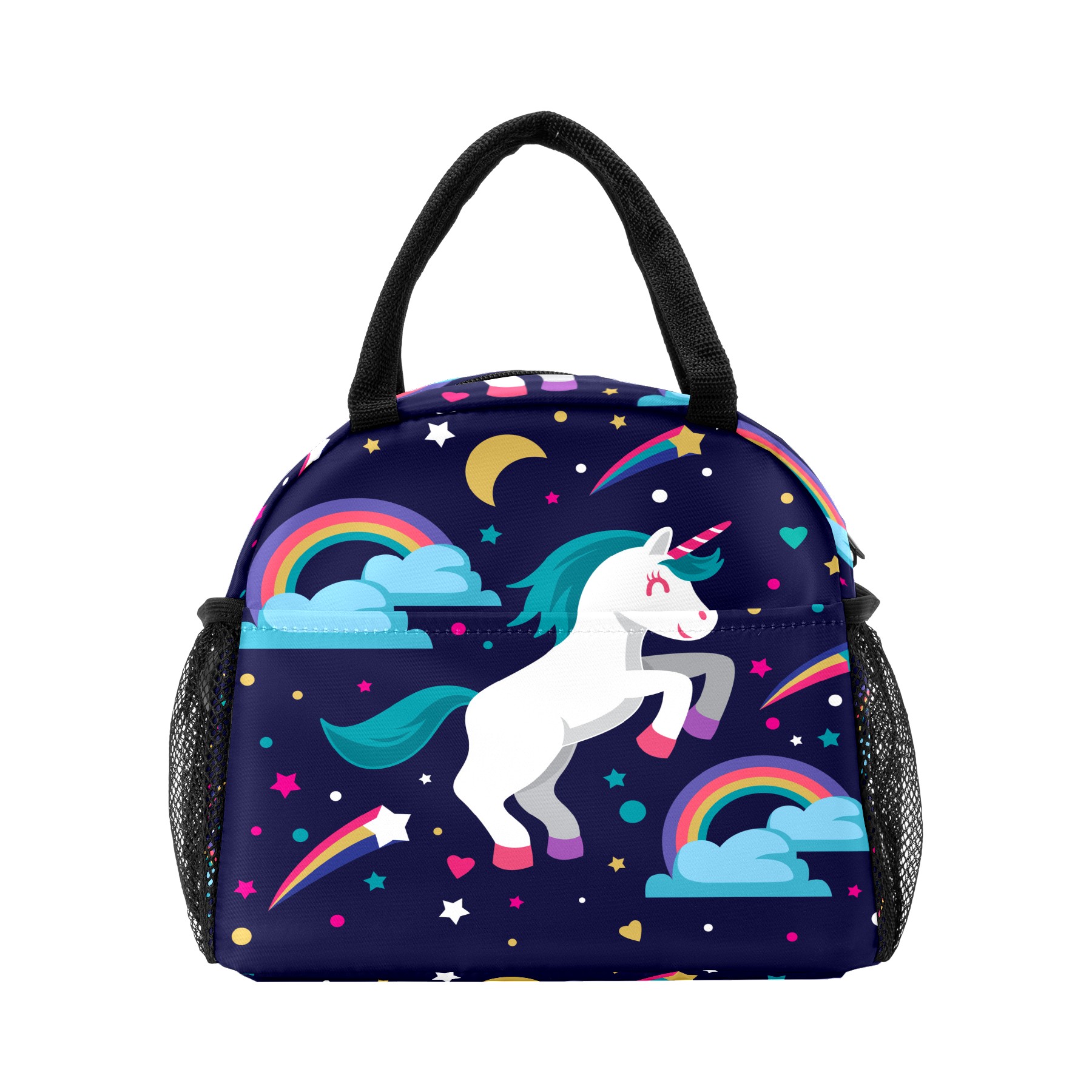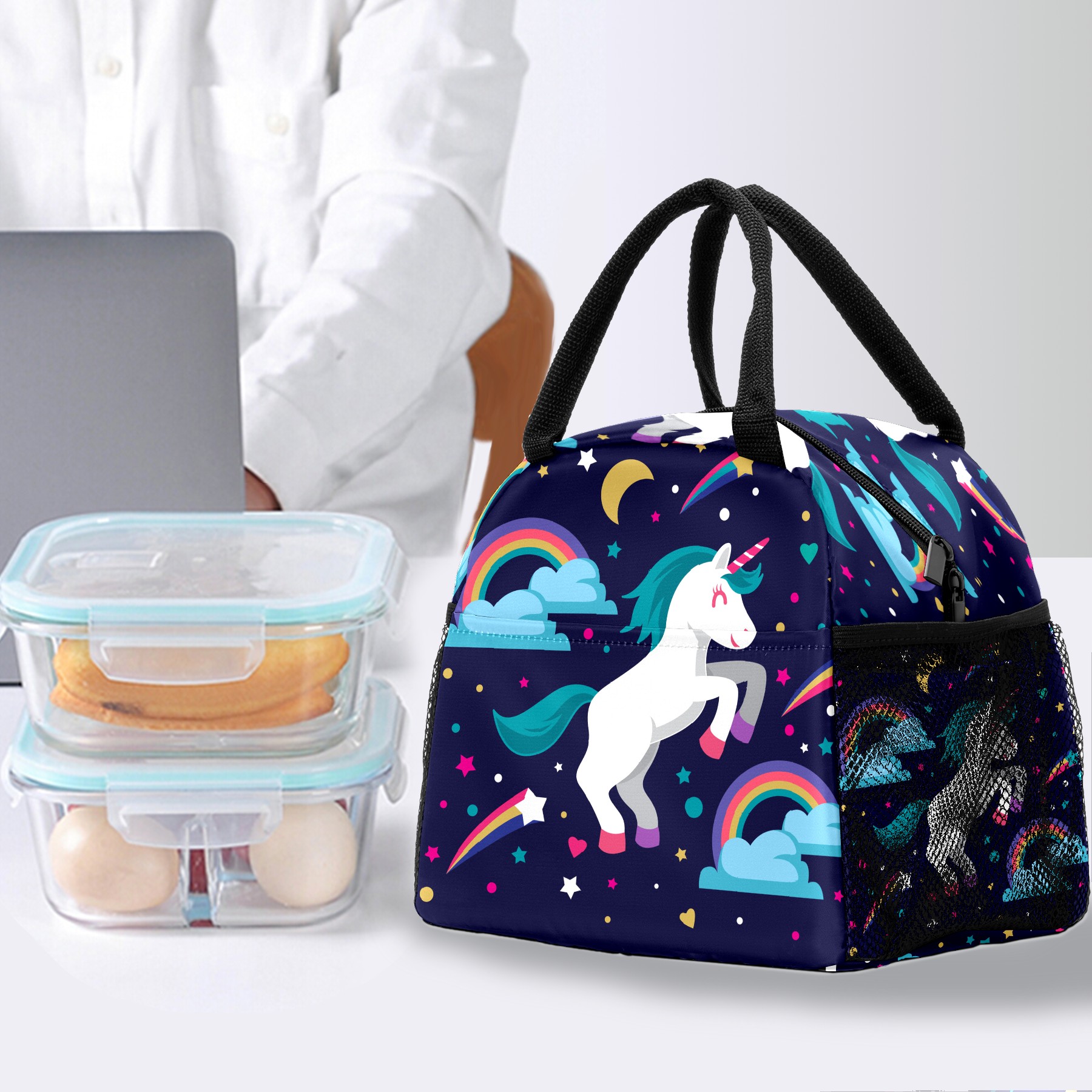 Lunch Bag for Women Men, Rainbow Cartoon Unicorn Stars Moons Insulated Reusable Lunch Box Thermal Cooler Tote Bag for Work Picnic Hiking Travel Beach