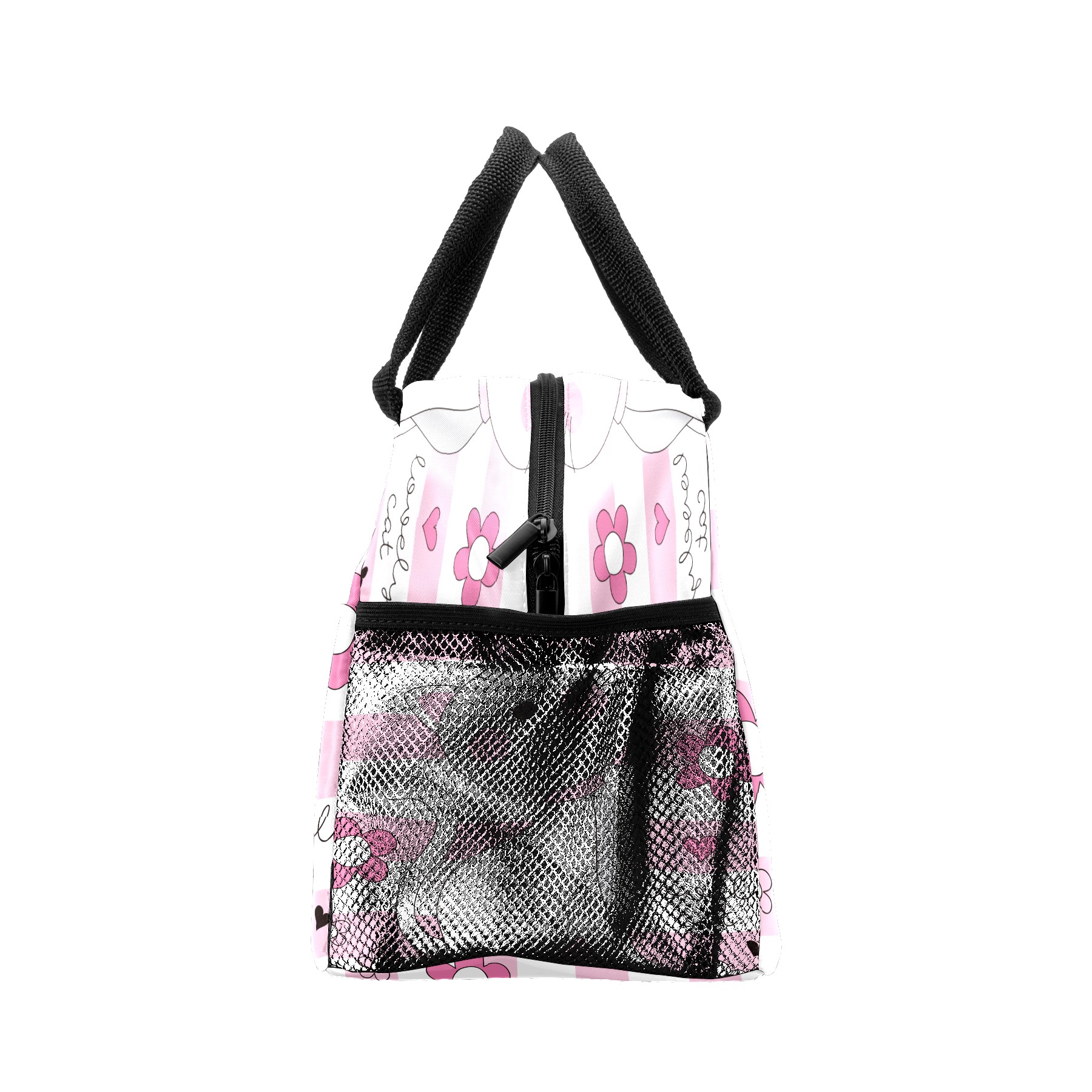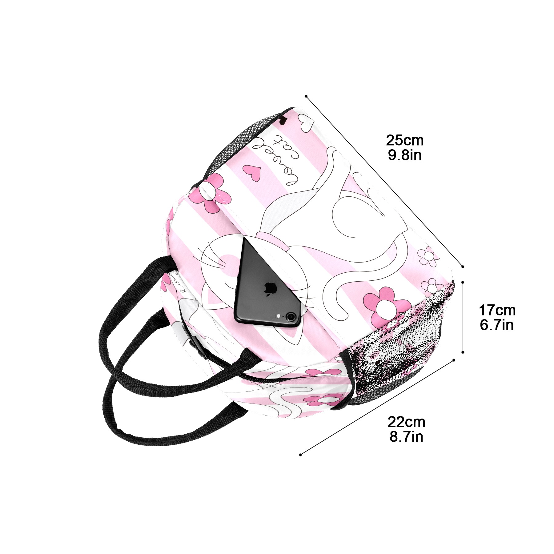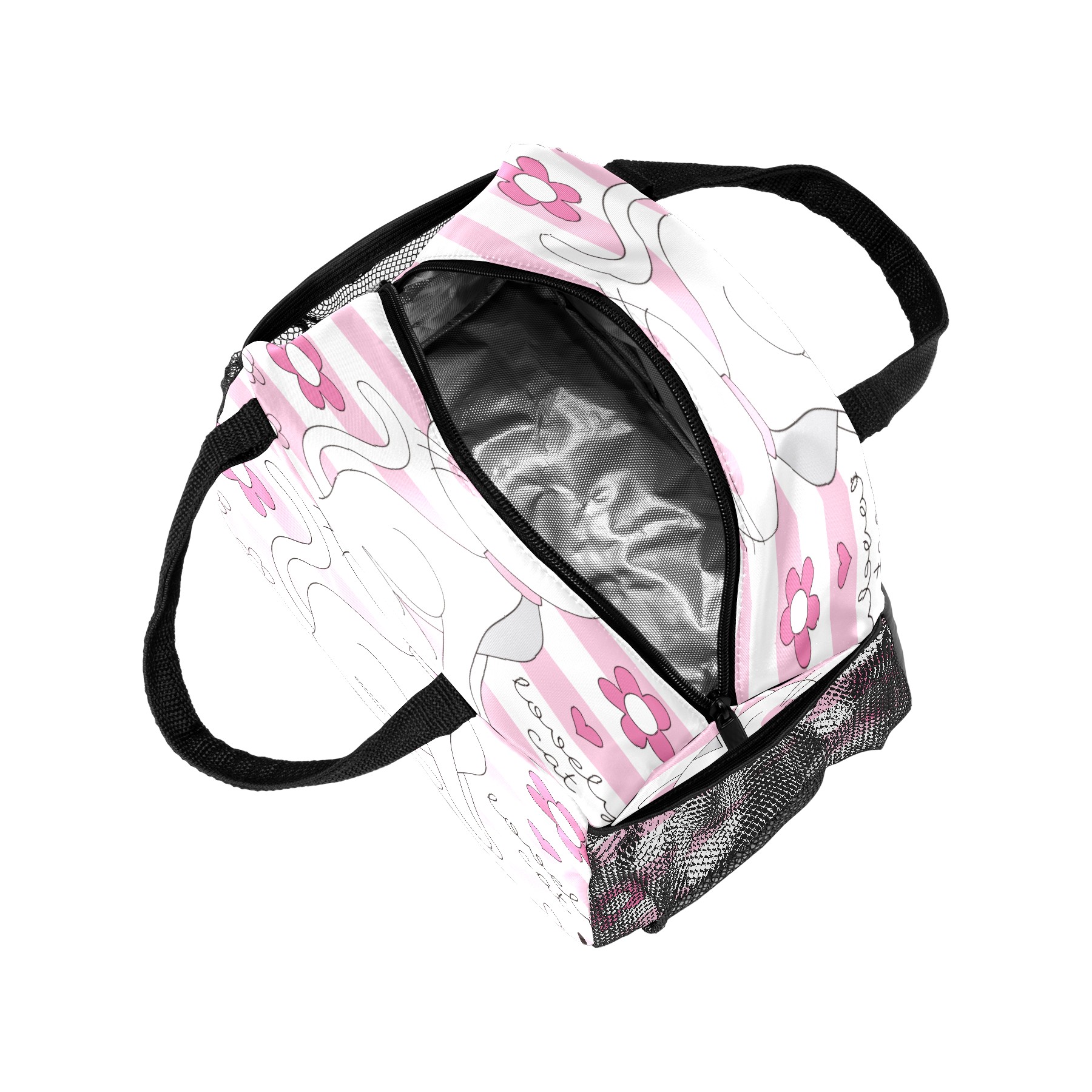 Lunch Bag for Women Men, Pink Cute Lovely Cat Cartoon Flower Insulated Reusable Lunch Box Thermal Cooler Tote Bag for Work Picnic Hiking Travel Beach