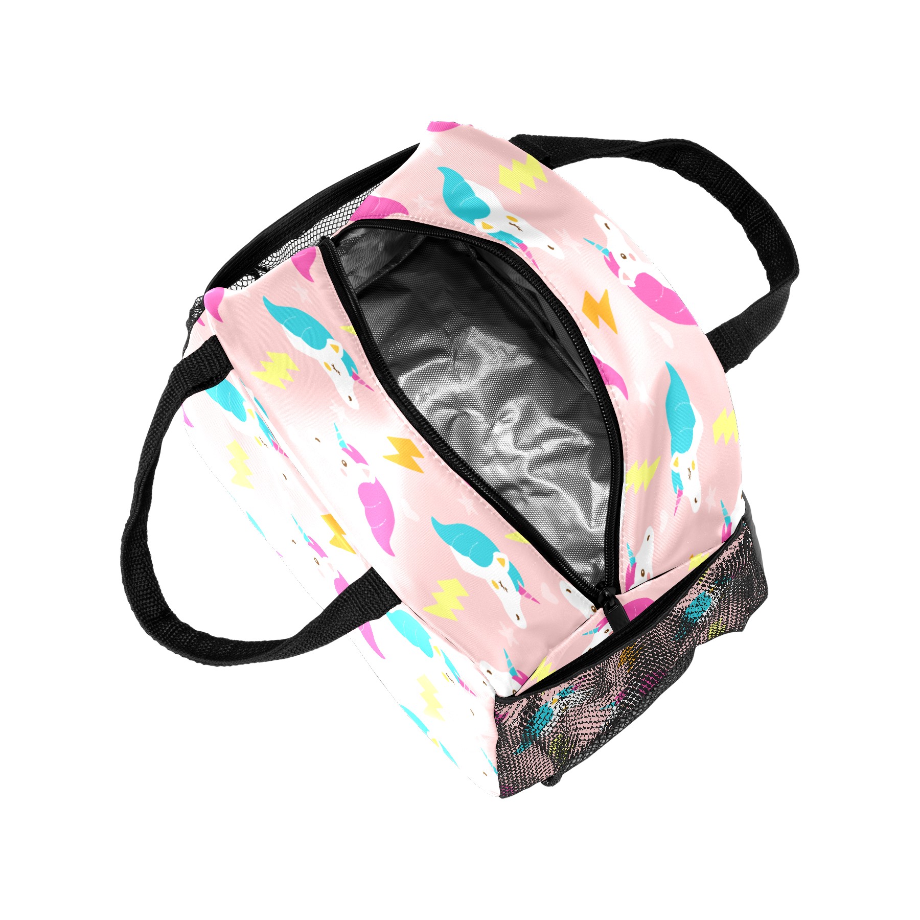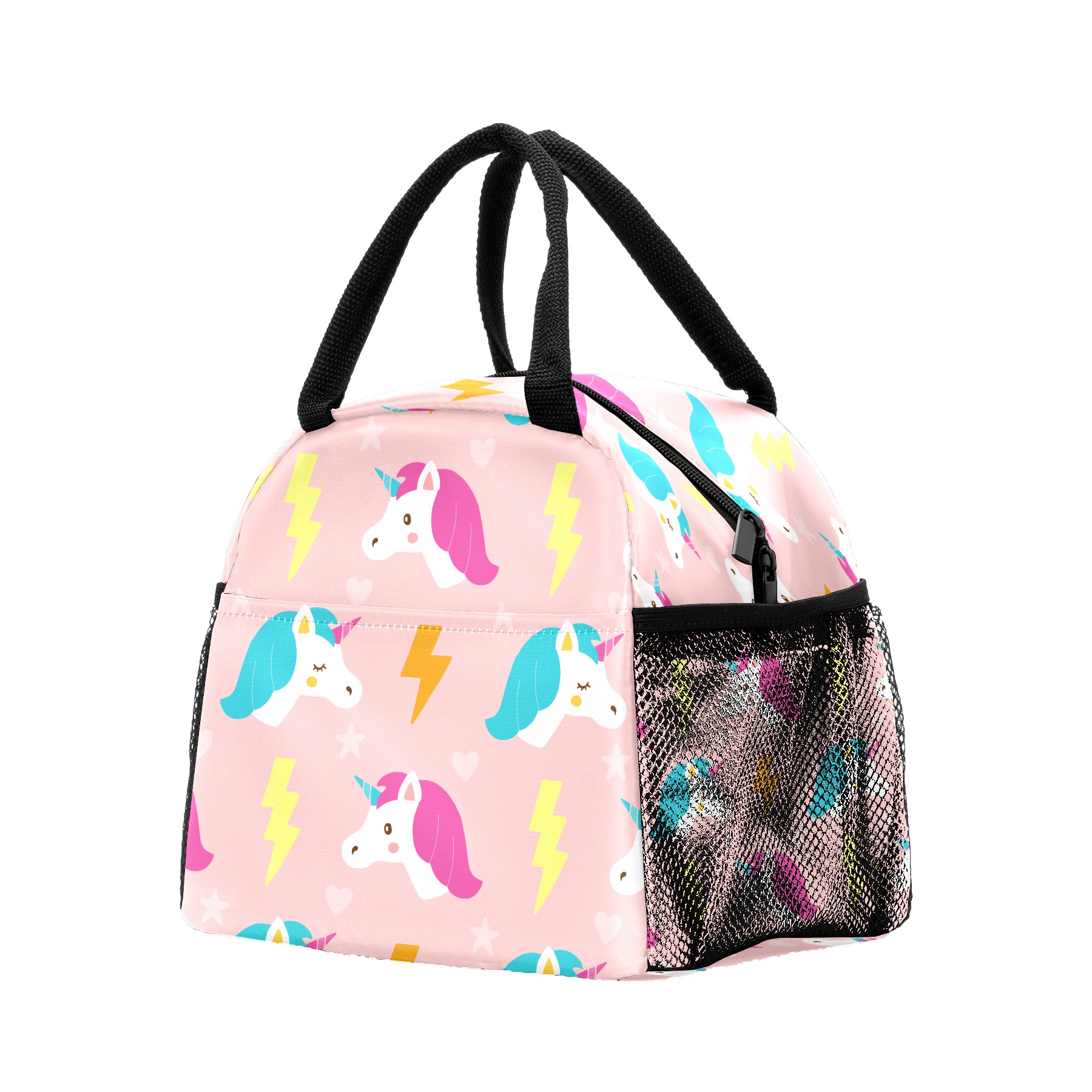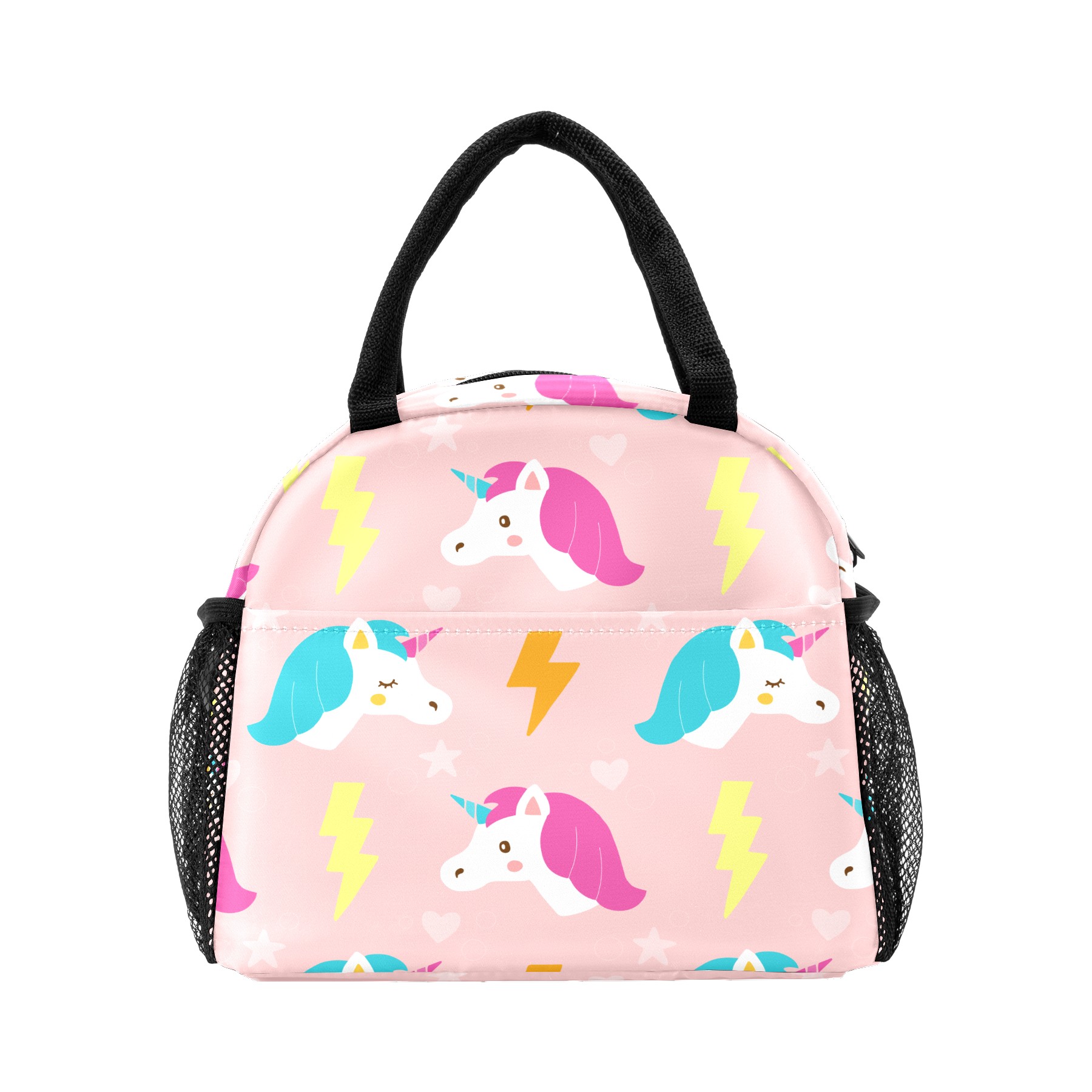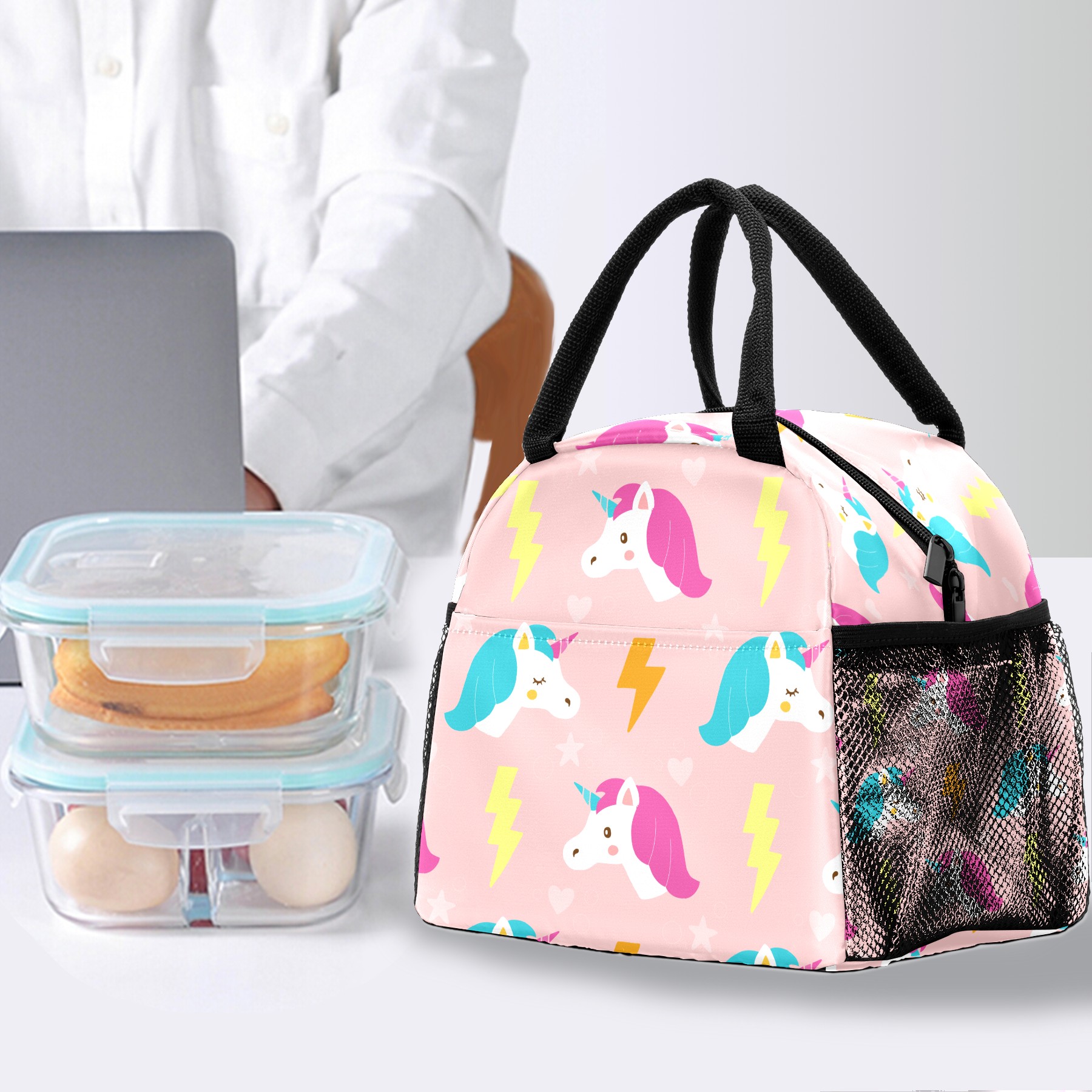 Lunch Bag for Women Men, Pink Cute Unicorn Lightning Pattern Insulated Reusable Lunch Box Thermal Cooler Tote Bag for Work Picnic Hiking Travel Beach