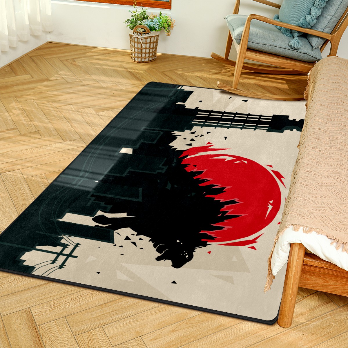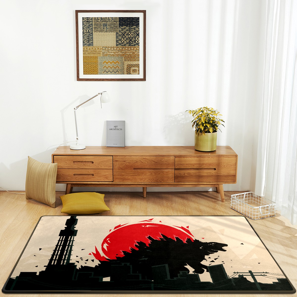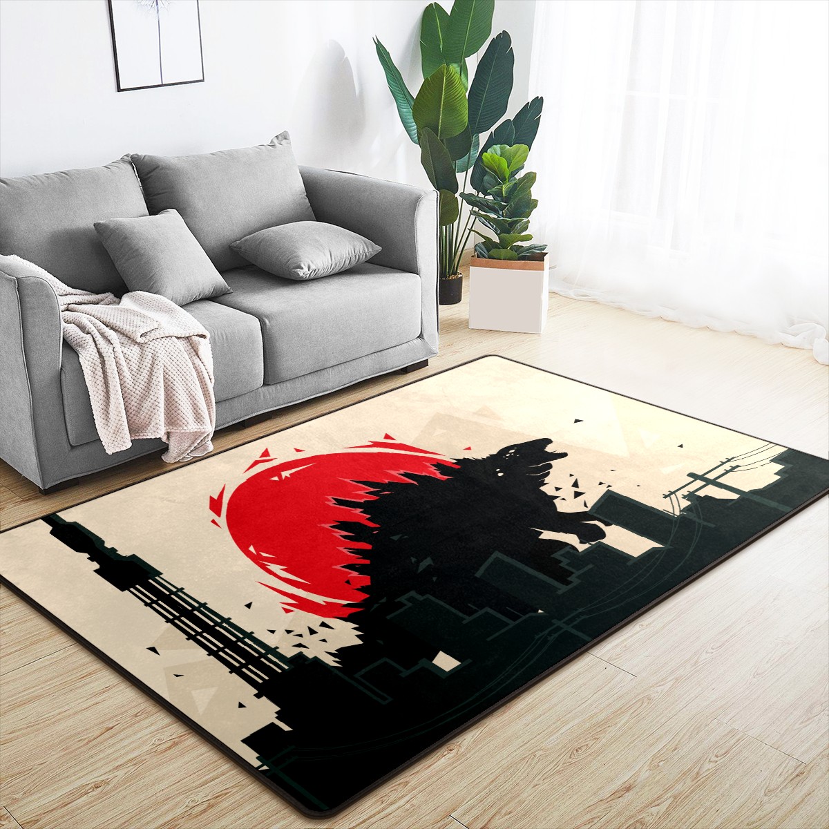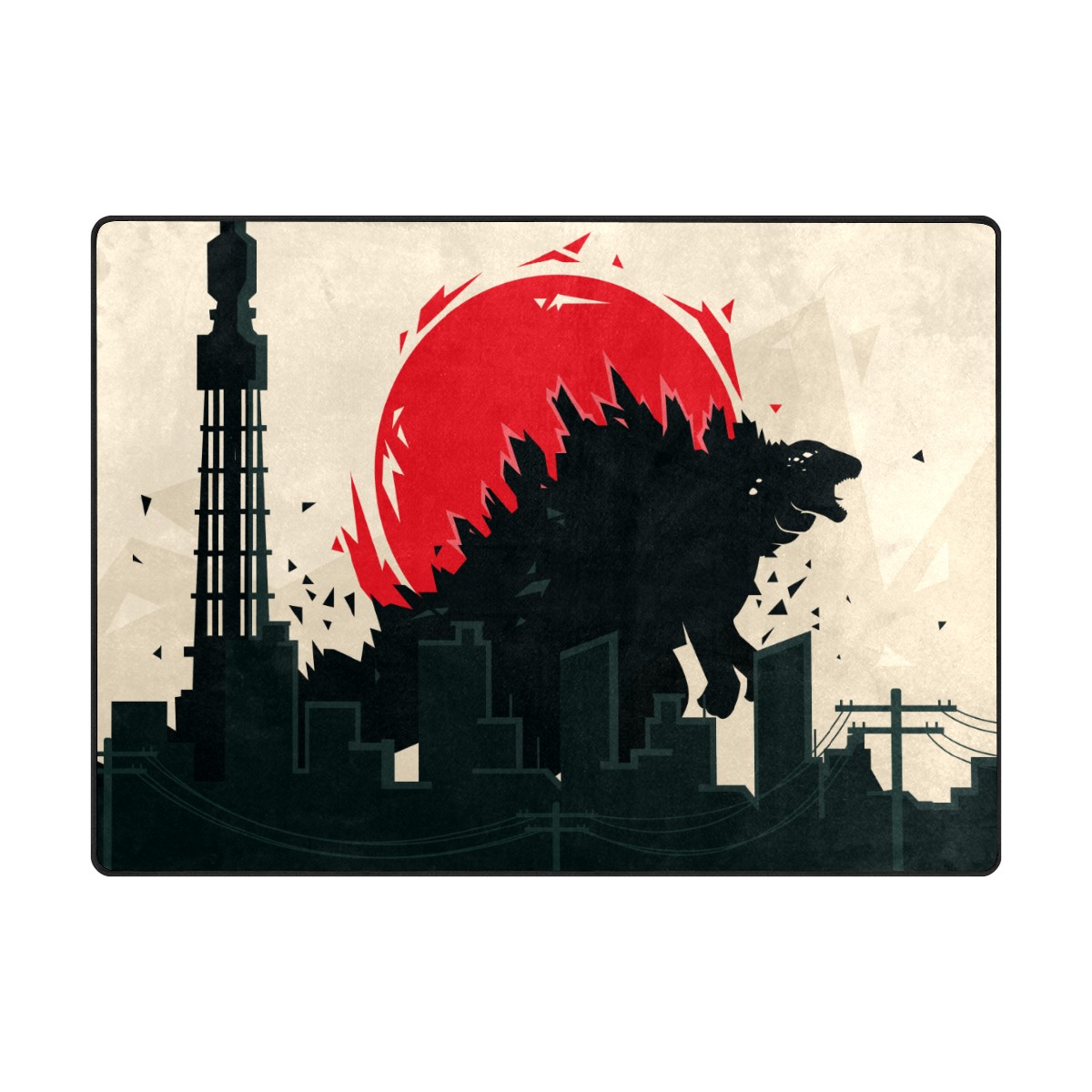Modern Area Rug Godzilla Dinosaur Silhouette Red Retro Large Rug Floor Carpet Mat for Living Room Bedroom 60x39in