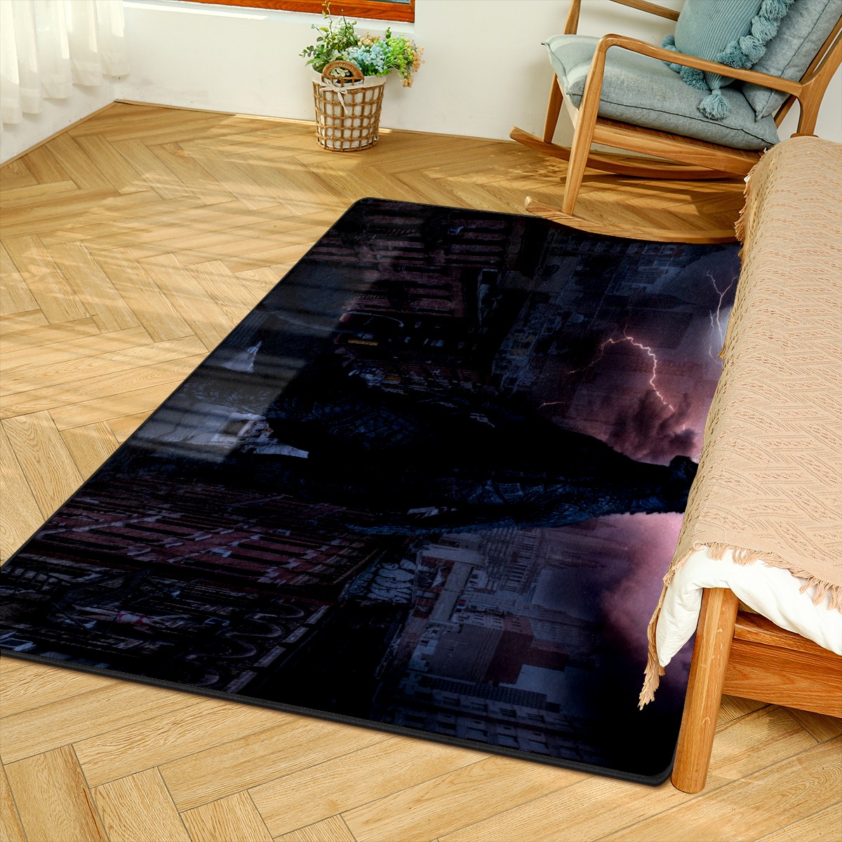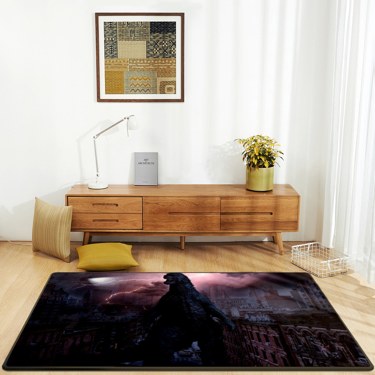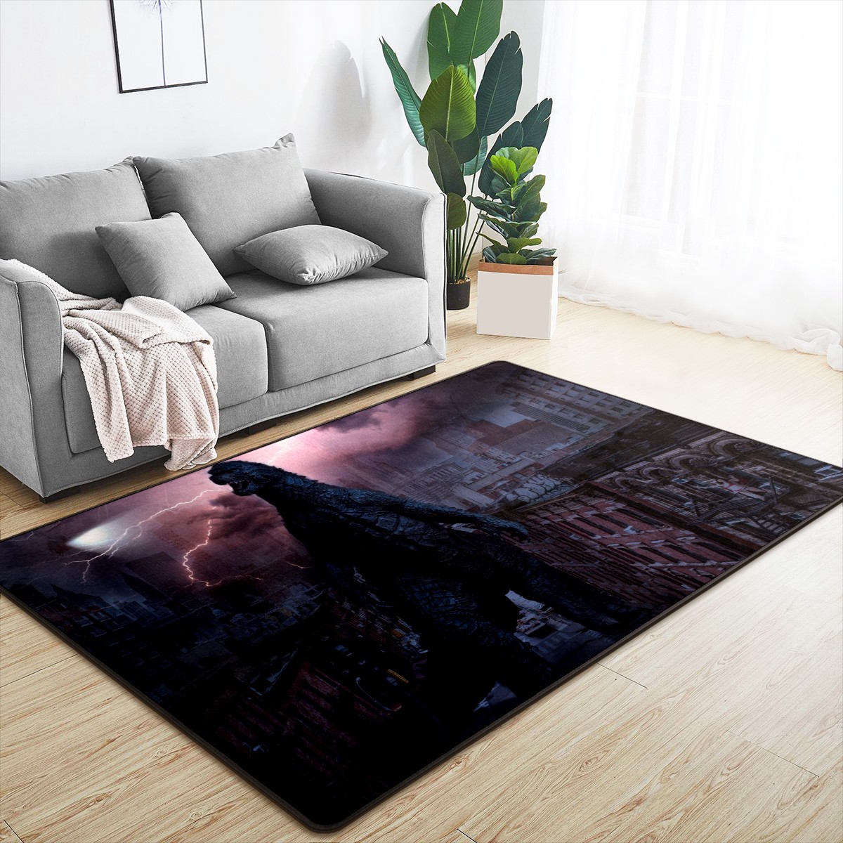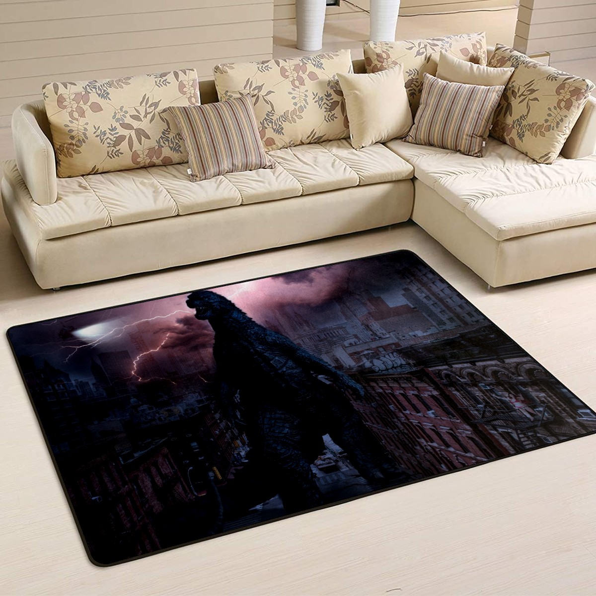 Modern Area Rug Godzilla Dinosaur Prehistoric Large Rug Floor Carpet Mat for Living Room Bedroom 60x39in