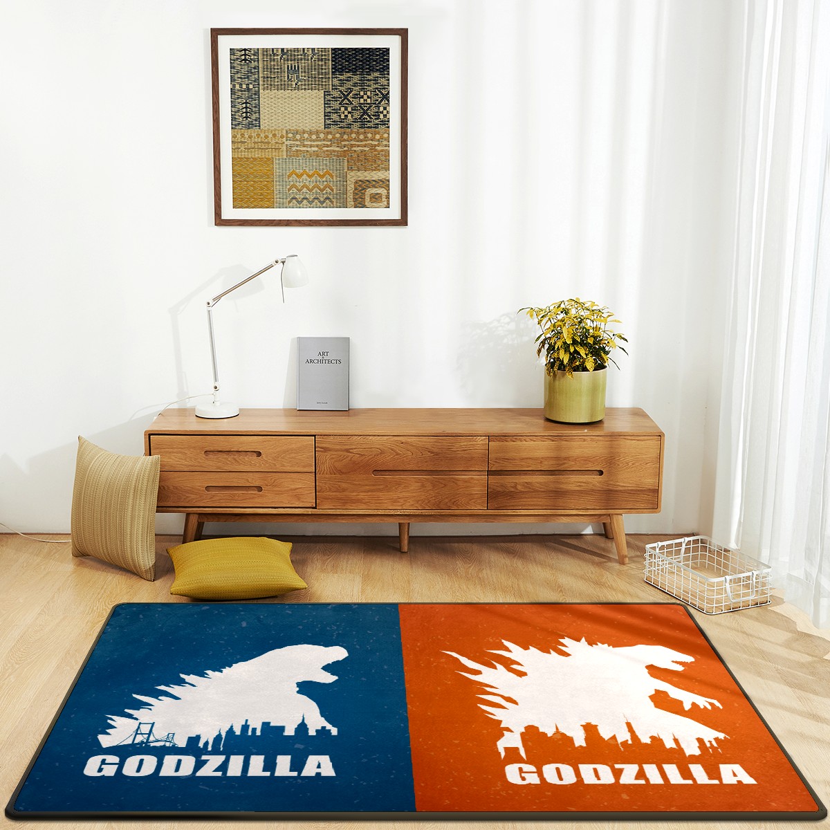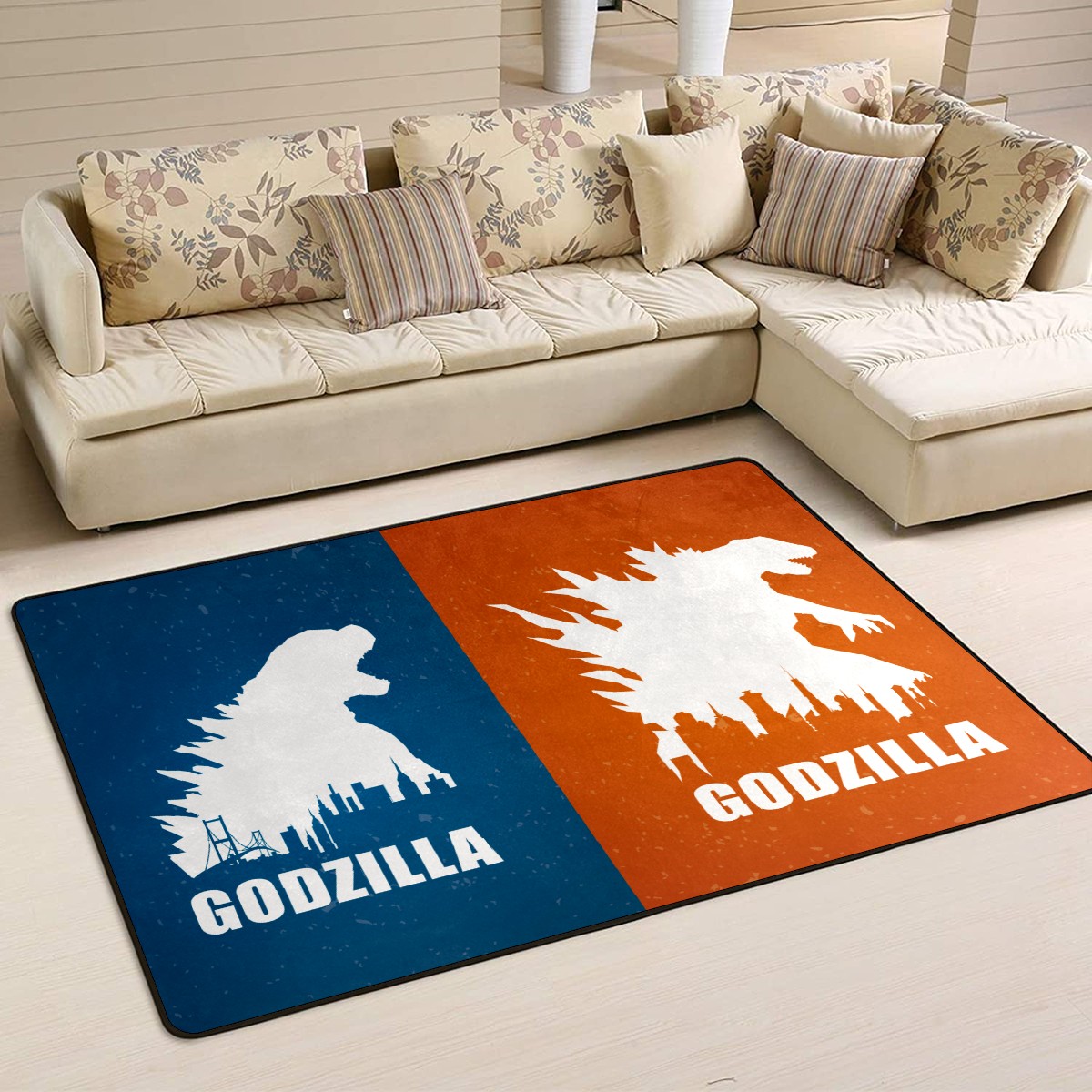 Modern Area Rug Godzilla Dinosaur Blue Orange Large Rug Floor Carpet Mat for Living Room Bedroom 60x39in