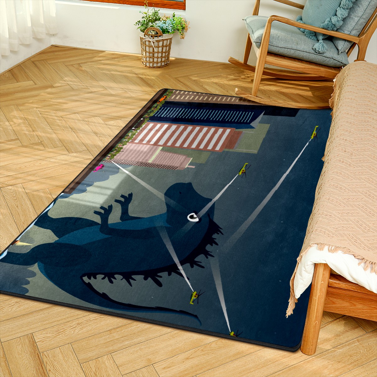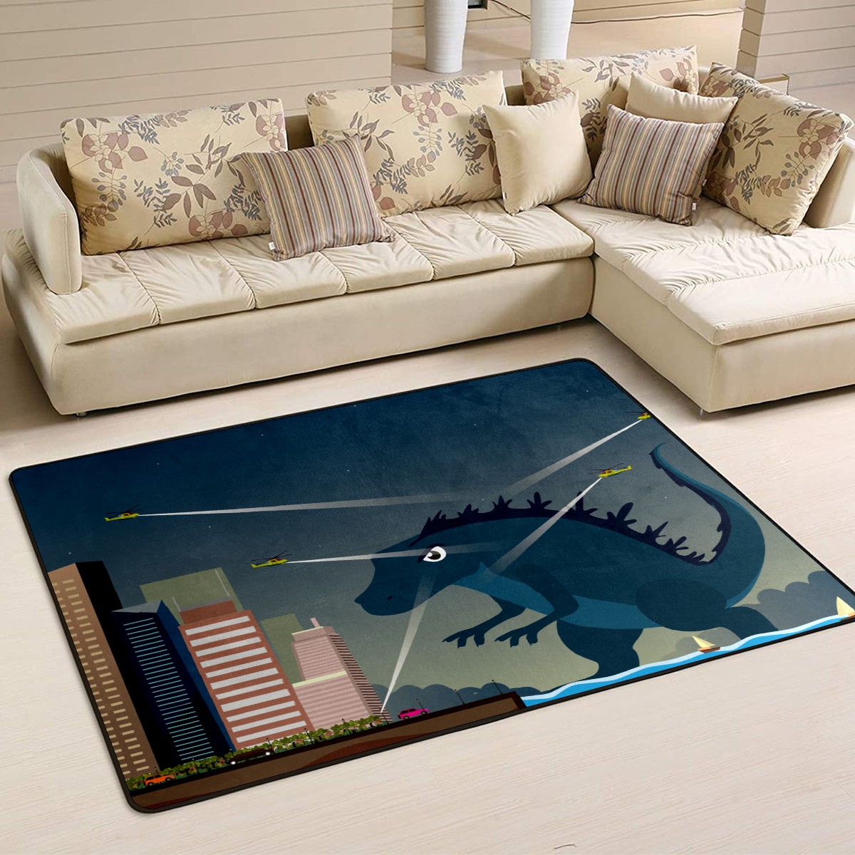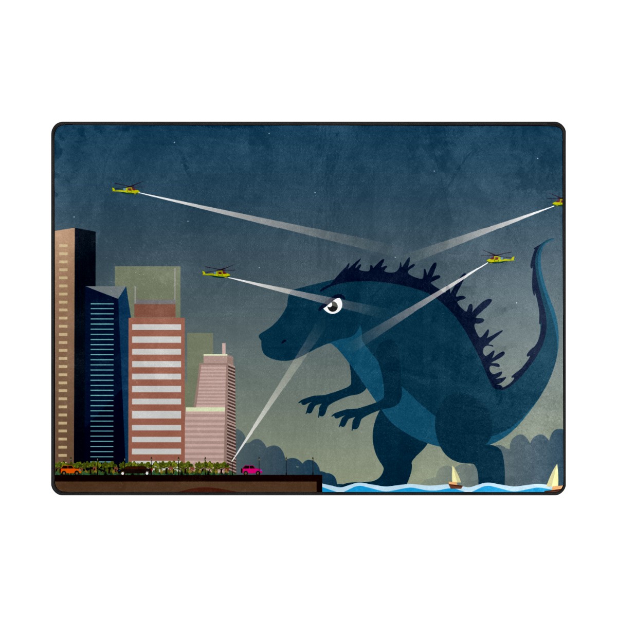 Modern Area Rug Cute Cartoon Godzilla Dinosaur Large Rug Floor Carpet Mat for Living Room Bedroom 60x39in