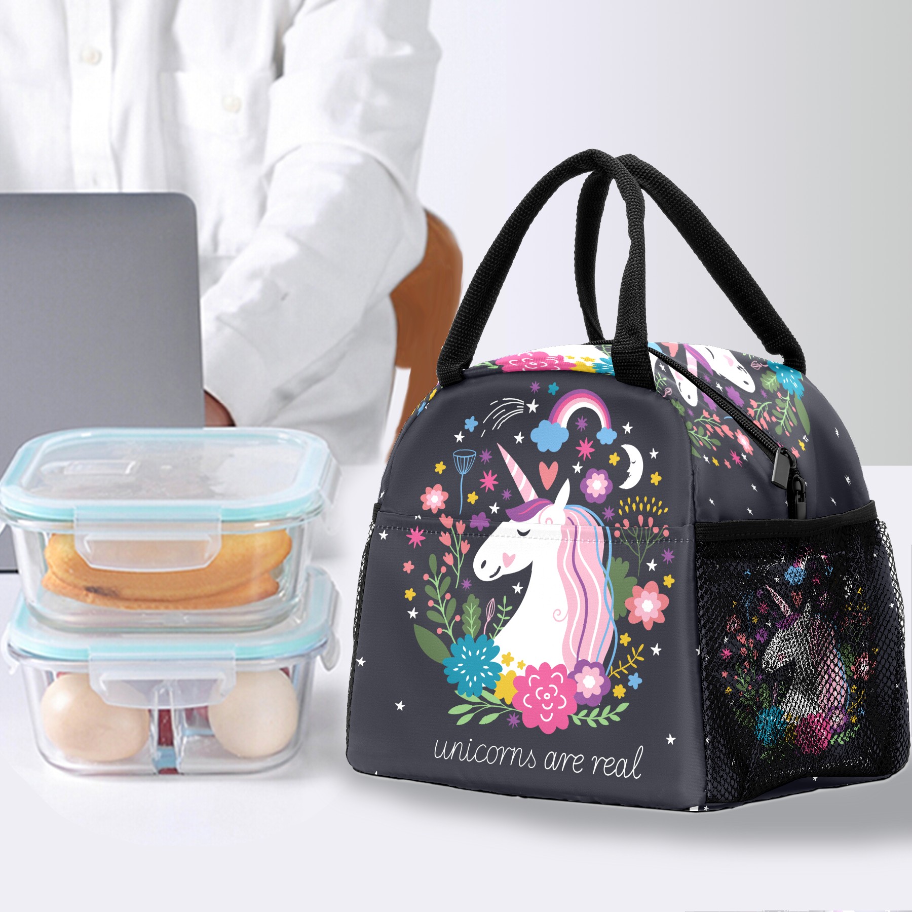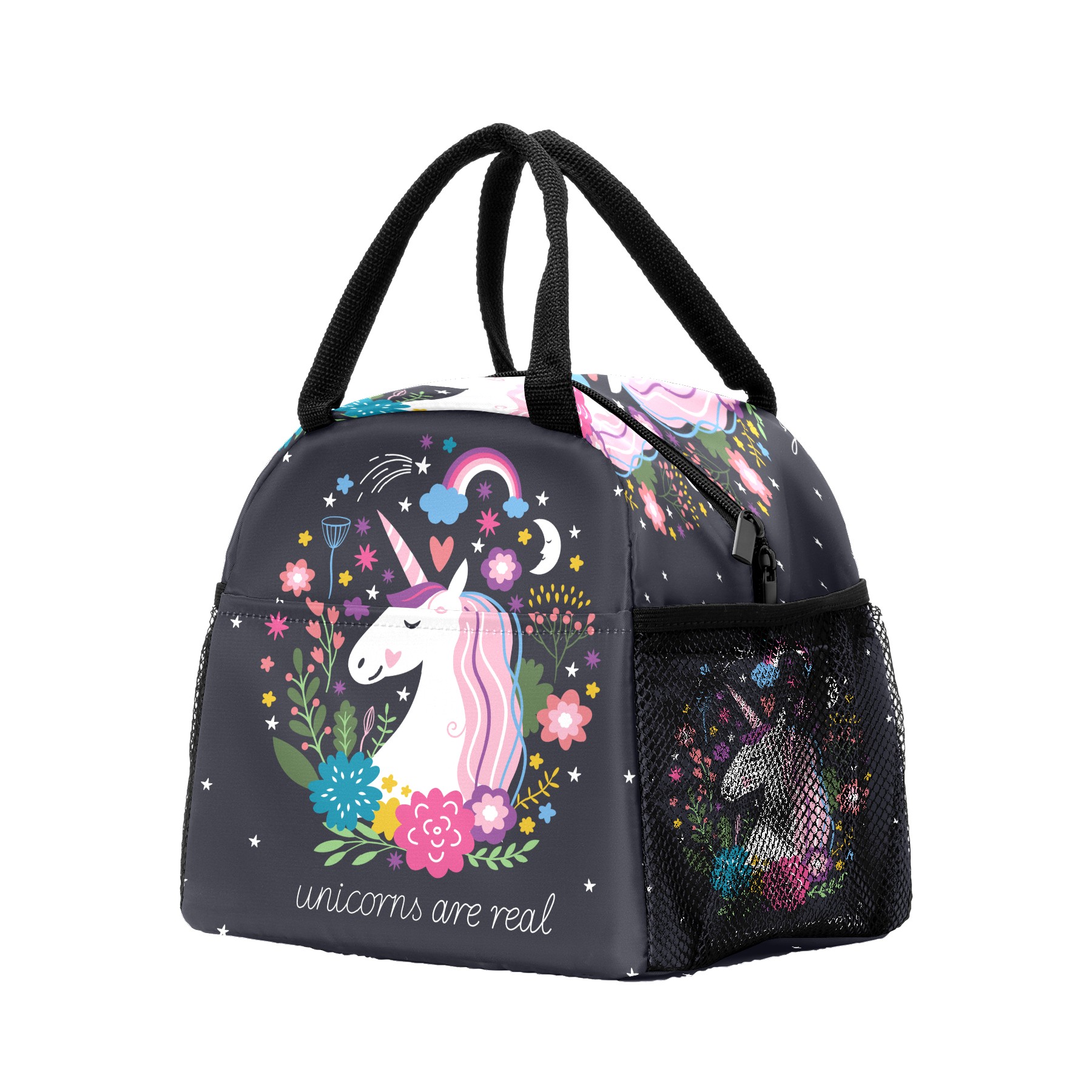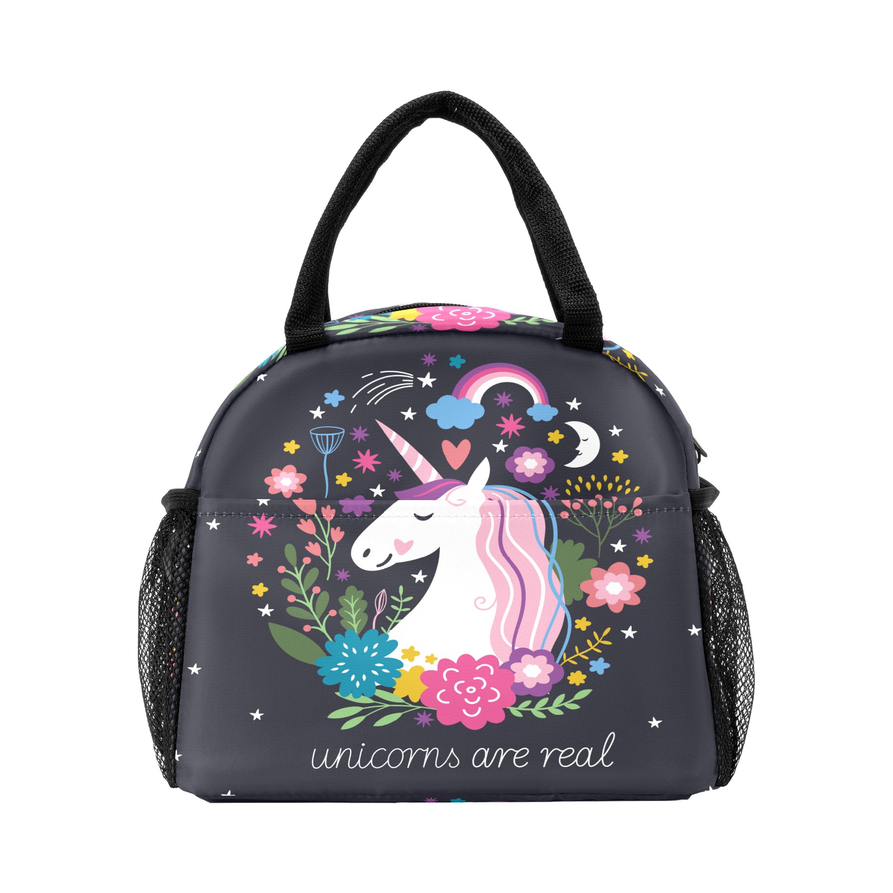 Lunch Bag for Women Men, Magic Unicorn Are Real Flower Moon Insulated Reusable Lunch Box Thermal Cooler Tote Bag for Work Picnic Hiking Travel Beach