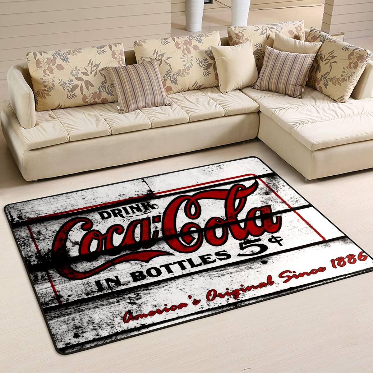 Modern Area Rug Retro Coca Cola Large Rug Floor Carpet Mat for Living Room Bedroom 60x39in